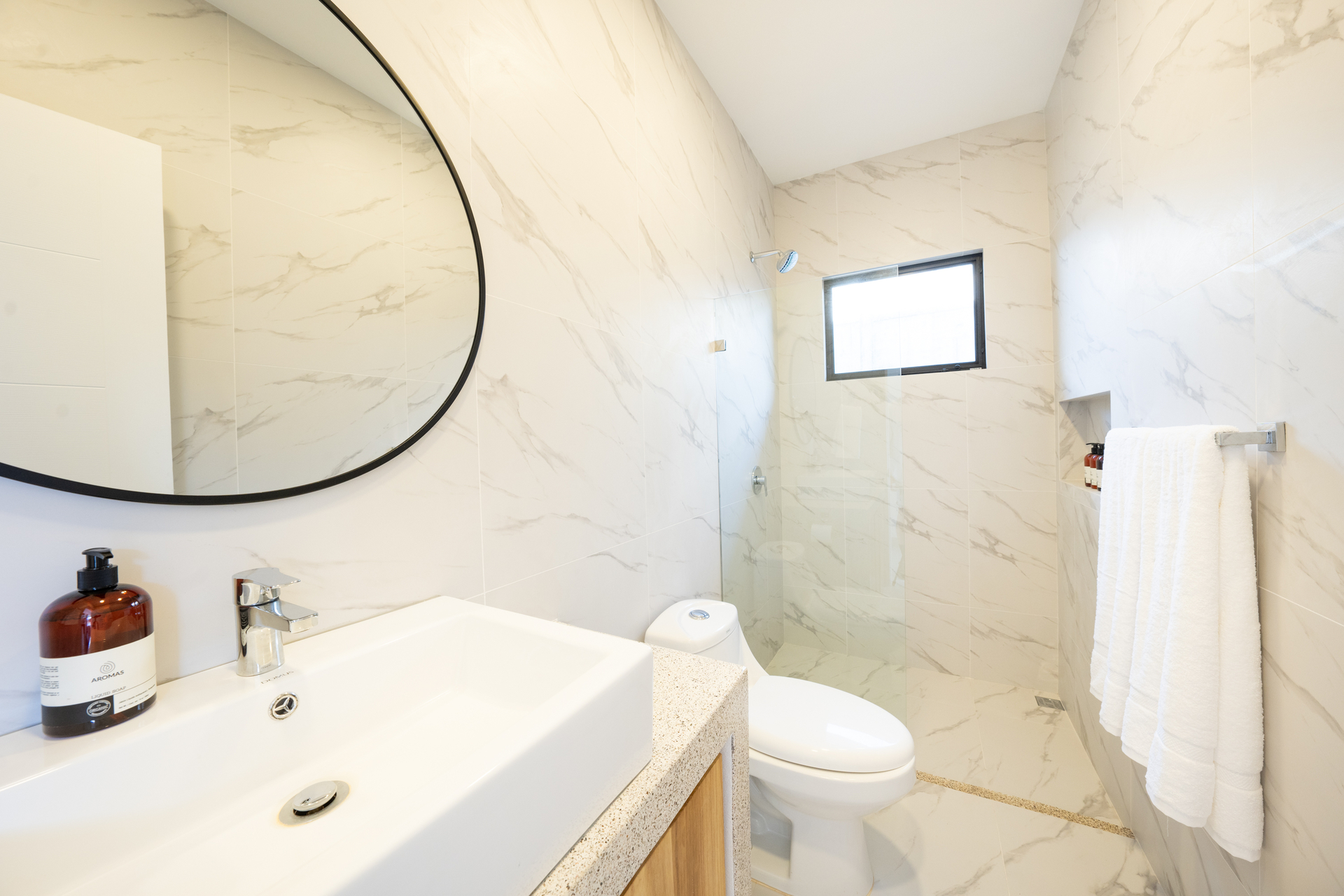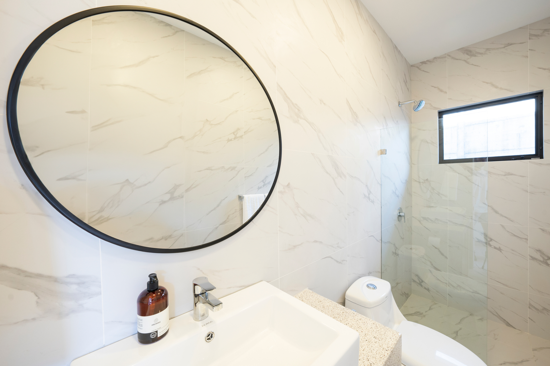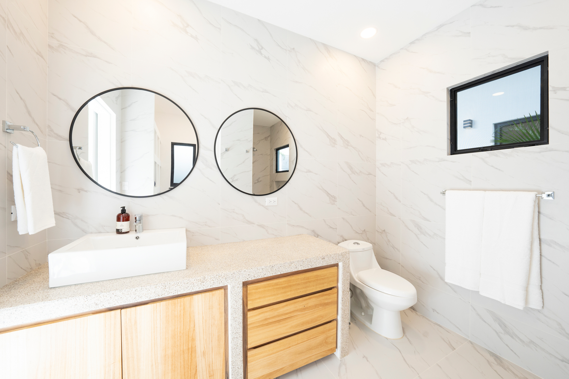 The home features a modern tropical design with open, airy spaces and high-quality finishes. The master suite offers a private balcony and walk-in closet, while the kitchen boasts quartz countertops and top-brand appliances. Elegant porcelain flooring, LED lighting, and energy-efficient mini-split A/C ensure year-round comfort.