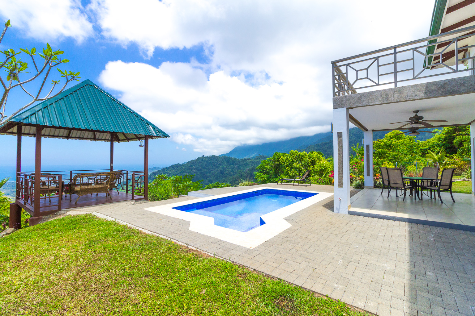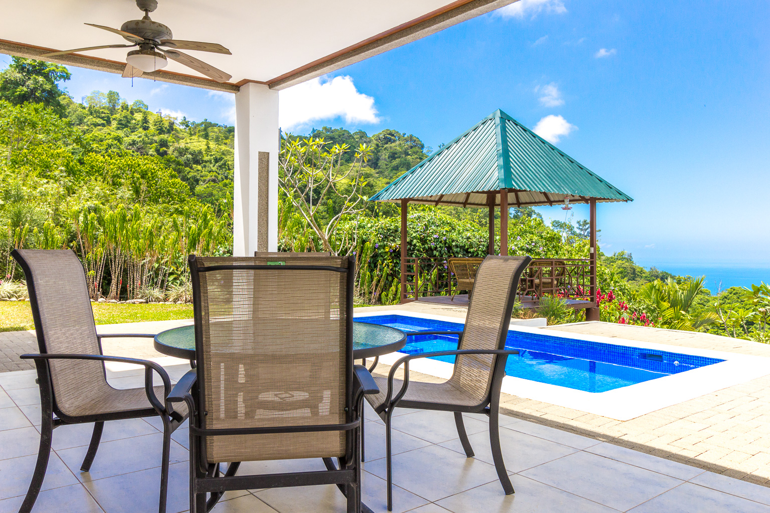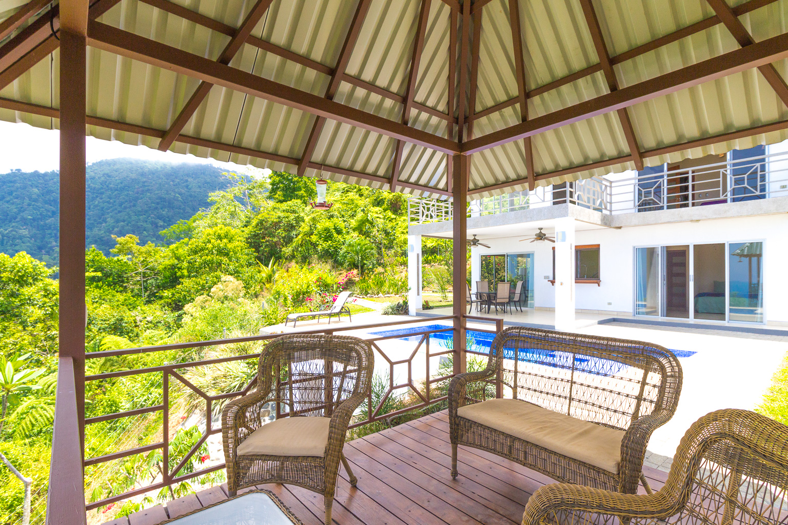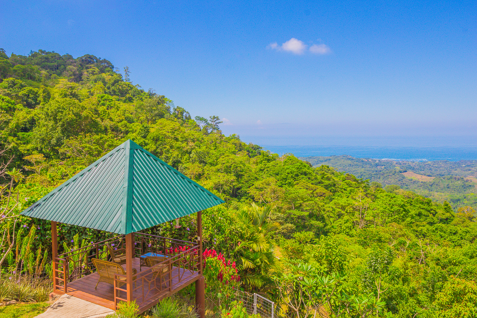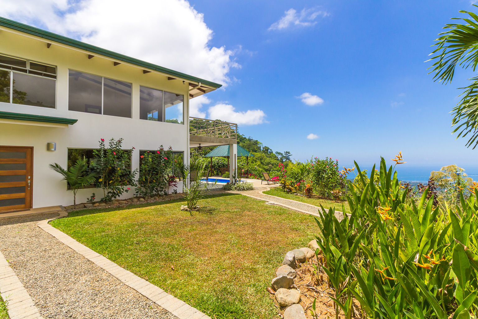 Imagine waking up, opening your eyes, and seeing the jungle valley below you, opening to expansive 180-degree views of the Pacific Ocean beyond. Or enjoying a glass of wine at sunset in the lovely gazebo, watching the sun melt into the ocean on the horizon. The 2,350-square-foot, 3-bedroom, 2-bathroom home is set up perfectly for entertaining with a modern open-concept design on the lower level. It also has a comfortable loft area upstairs where you can enjoy a movie on a night in, or simply turn and enjoy the ocean, valley, and mountain views from the floor-to-ceiling windows. The private, 2+ acre property is professionally landscaped, with beautiful plants, flowers, and fruit trees, and has a fenced yard for pets! There is also a garage for your 4x4 and extra storage.
