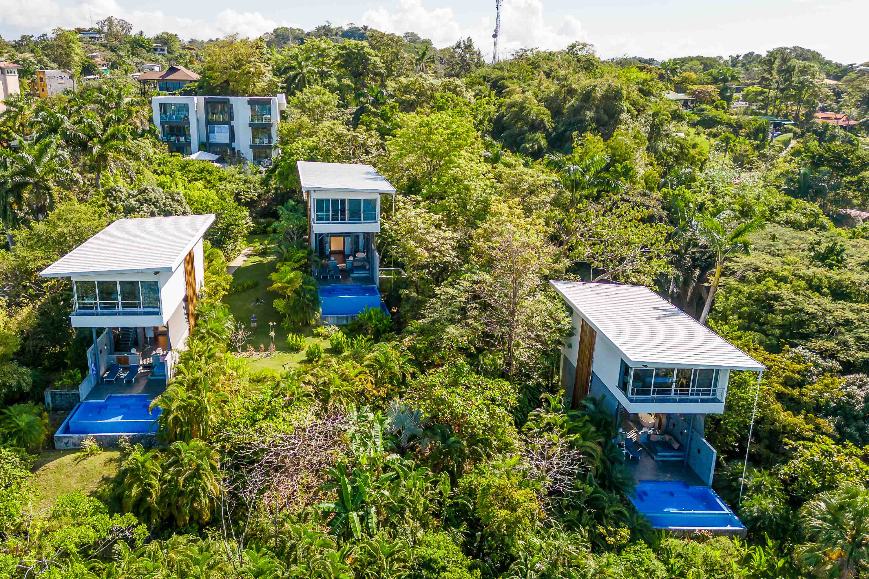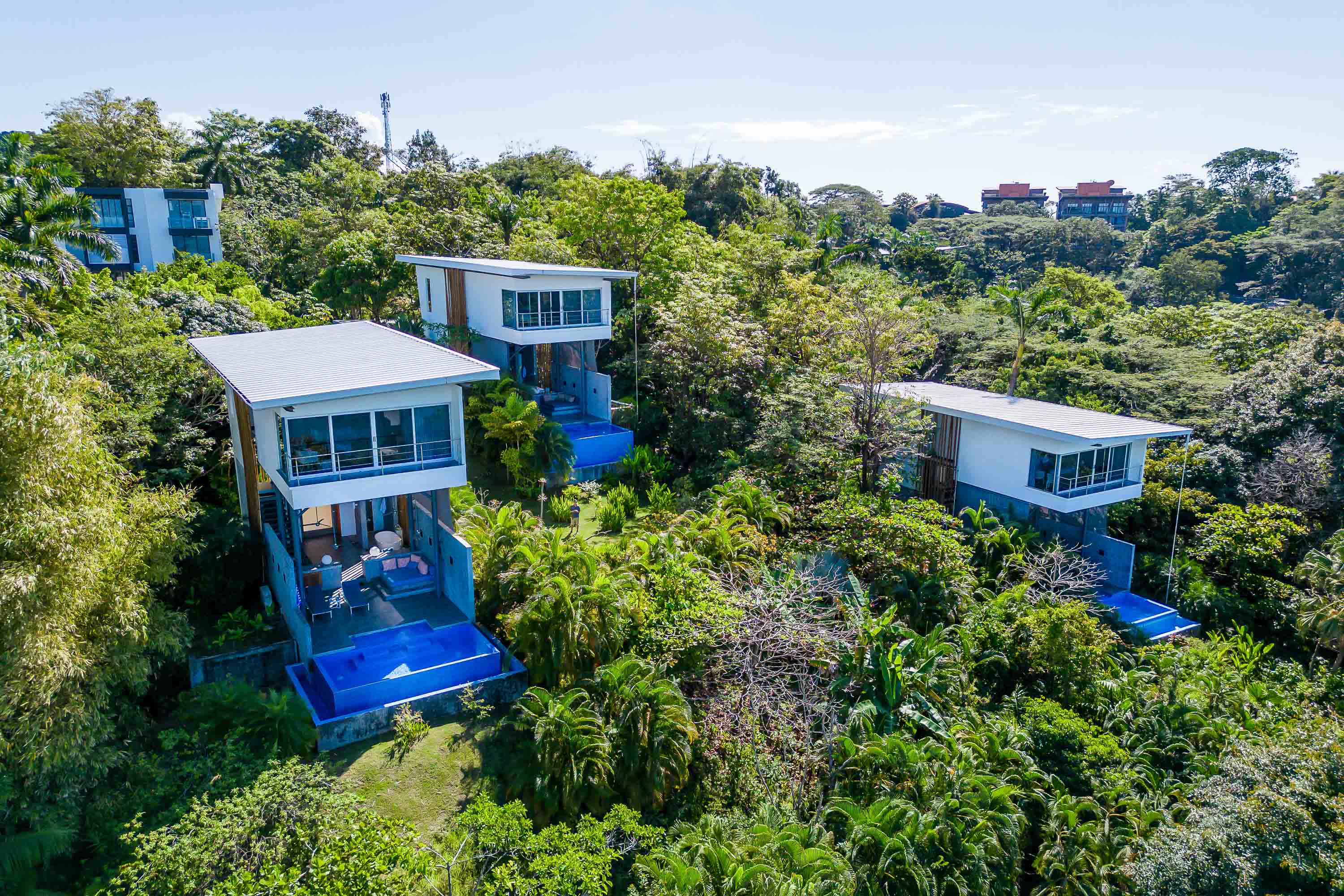 The Bamboo Villas are the most iconic, luxury villa rentals in all of Manuel Antonio, but are also much more. This complex of 3, individually titled, properties in the exclusive Tulemar Development makes for an investment opportunity unlike any other on Pacific Coast of Costa Rica. While there are a selection of more traditional 3-6 bedroom luxury homes and rentals, these one bedroom villas, are far and away, the sexiest villas and most lucrative rentals anywhere. The villas are focused on catering to couples who want to combine luxury, nature, romance and exclusivity. The evidence of their unique nature is the tremendous demand and rental history which they have procured, with annual occupancy rates which have surpassed 90% in the past years. These luxury villas represent some of the strongest ROI investments in the area but also offer a long term equity opportunity to own the most sought after property in the Manuel Antonio area for future development.