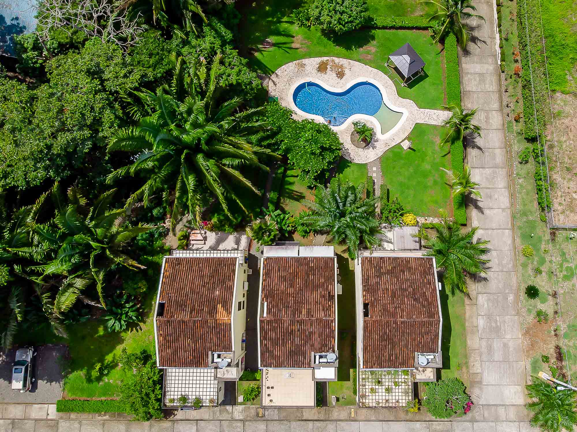 Lot #14 is located on the left side of the Casitas complex, in the newest section of Hacienda Pacifica. The townhouse itself boasts a ground floor with a vast kitchen and comfortable living and dining area. Both of these internal spaces spill onto a covered back terrace that overlooks the vibrant gardens. Upstairs, there are three bedrooms and two baths. Each guest bedroom has beautiful windows, and the master bedroom has its own ensuite bathroom and large outdoor sun deck. In addition to this, the property also comes with its own private carport area.
