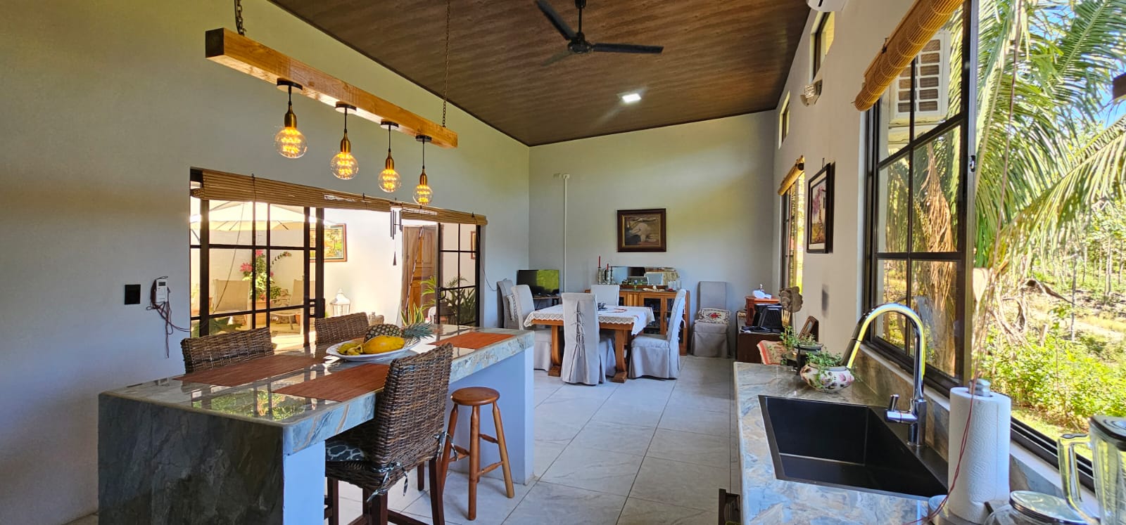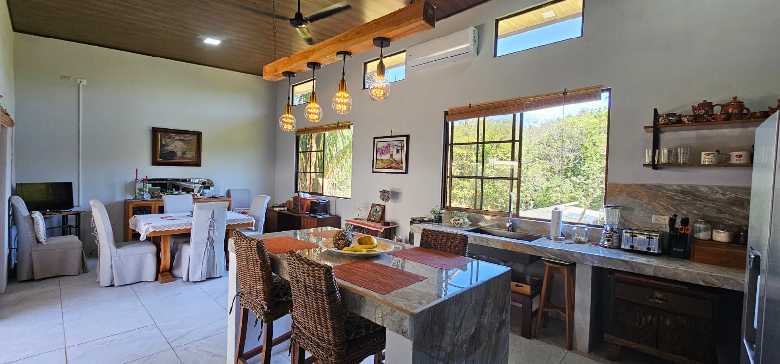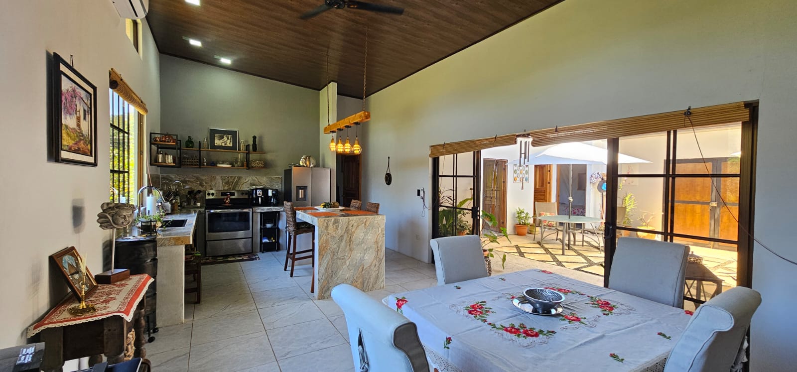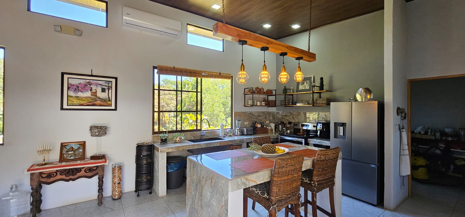 Located in the peaceful neighborhood of Santo Domingo, just a 10-minute drive from Samara Beach, this charming 3-bedroom, 2-bathroom Spanish-style home offers a perfect blend of comfort and practicality. Built with solid concrete construction and a strong foundation, this home is designed with cross-wind ventilation, allowing natural breezes to flow freely, keeping the interiors cool and inviting.