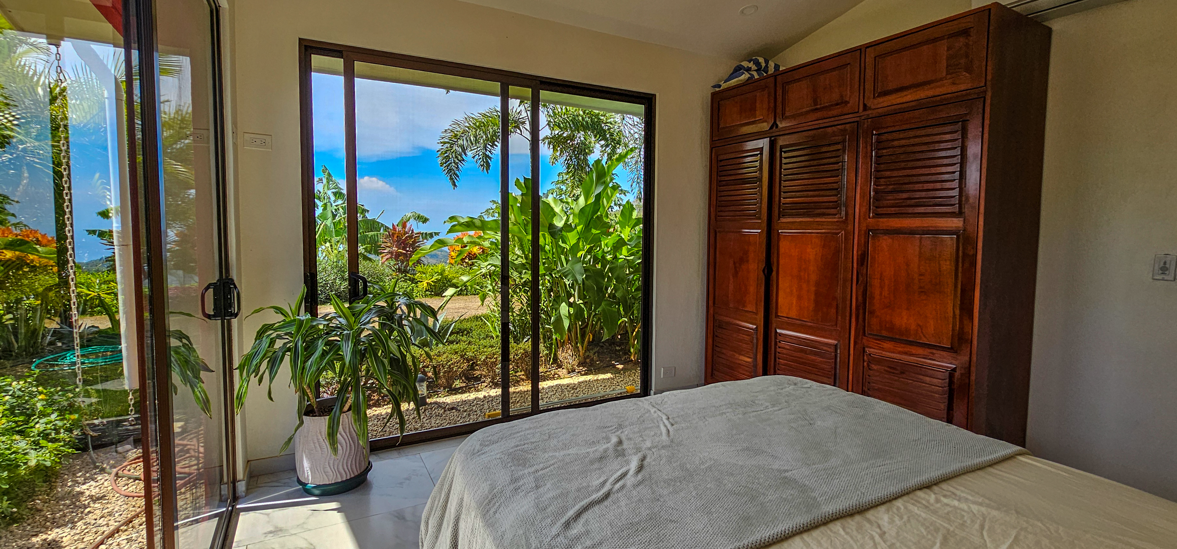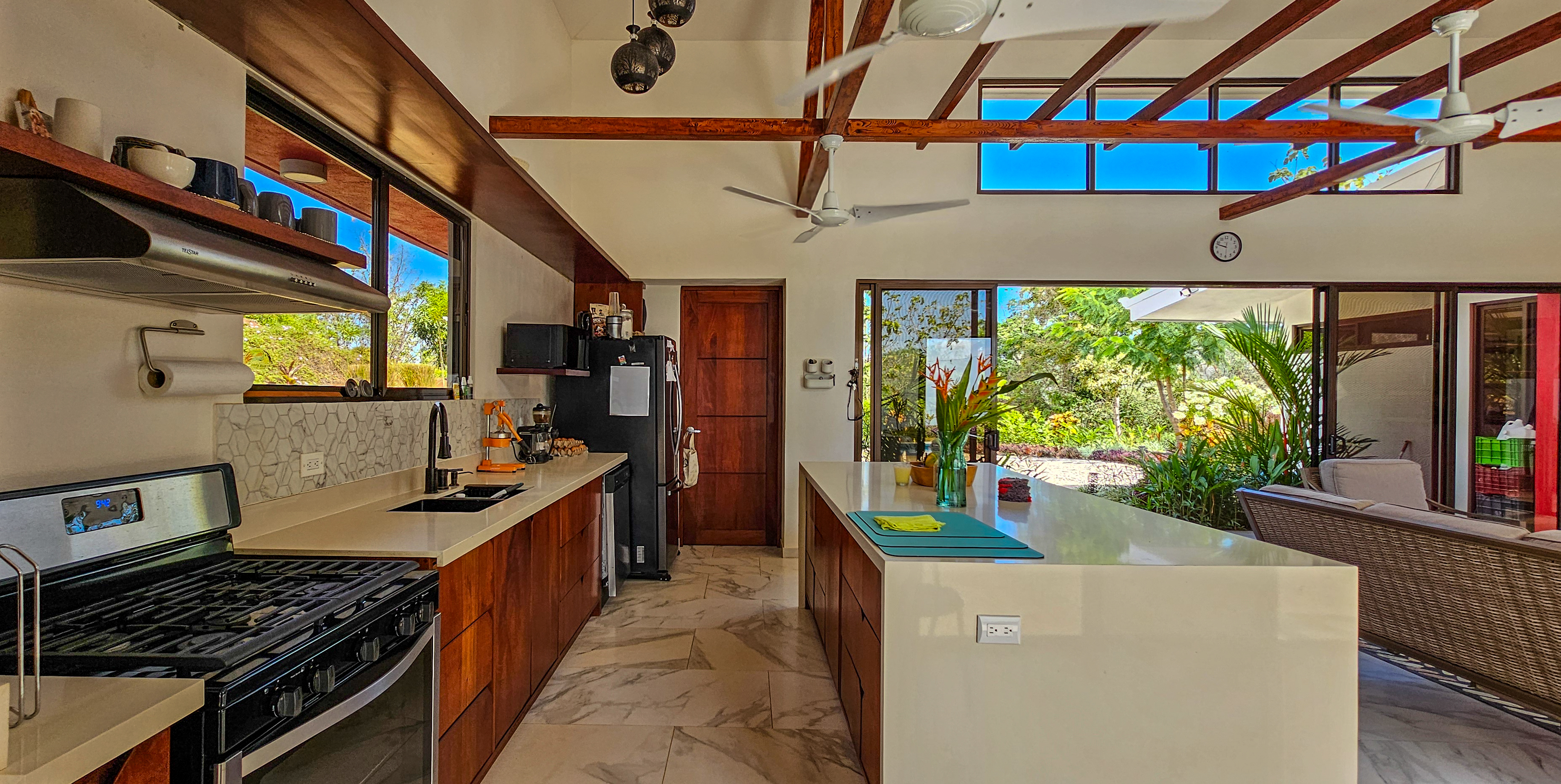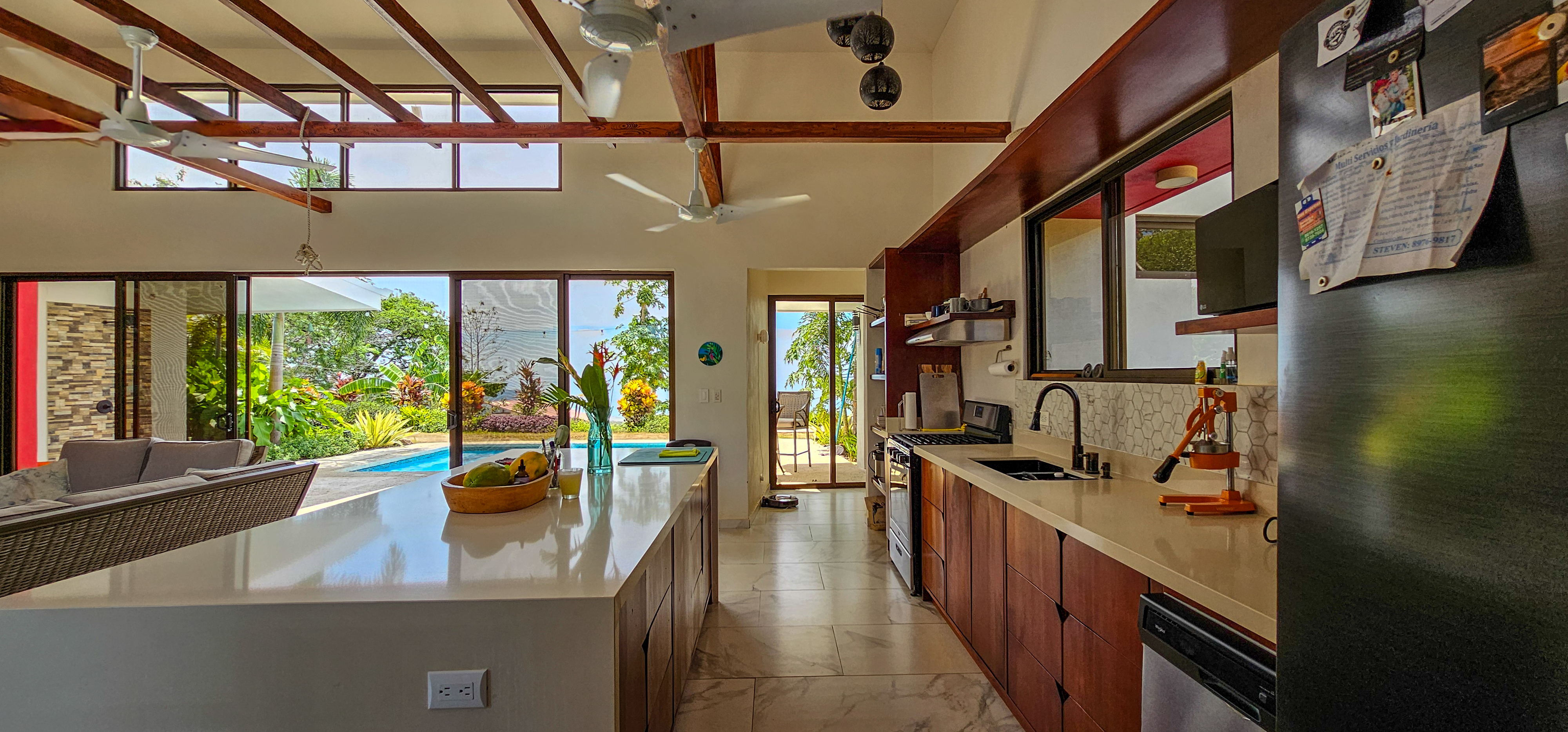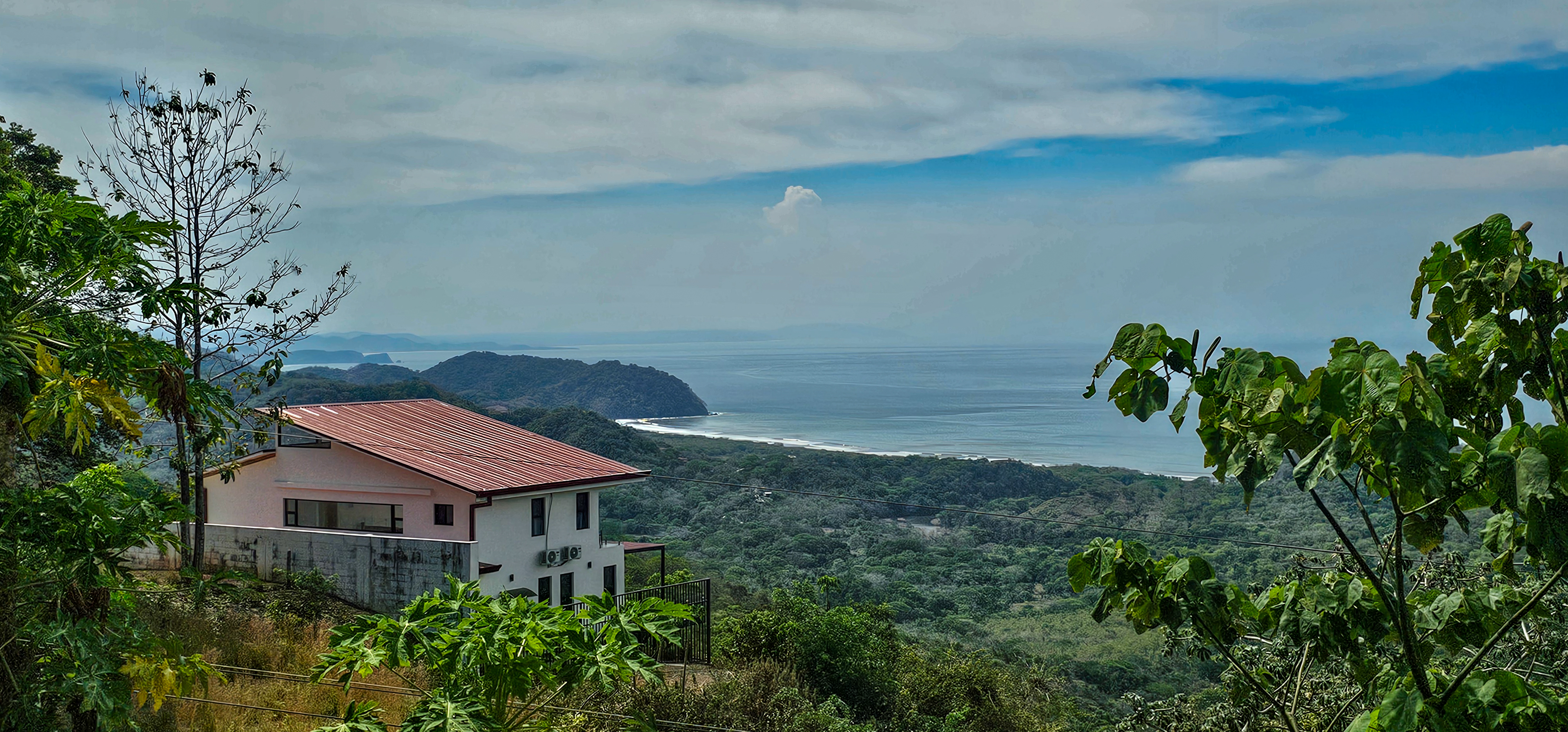 Nestled on a mountainside with spectacular ocean views toward the Nicoya Peninsula, this beautiful 3-bedroom, 2-bath modern home offers a perfect balance of style, comfort, and location. Wake up each morning to stunning sunrises over the ocean and enjoy refreshing cross breezes flowing up from the valley, keeping the home naturally cool and inviting.