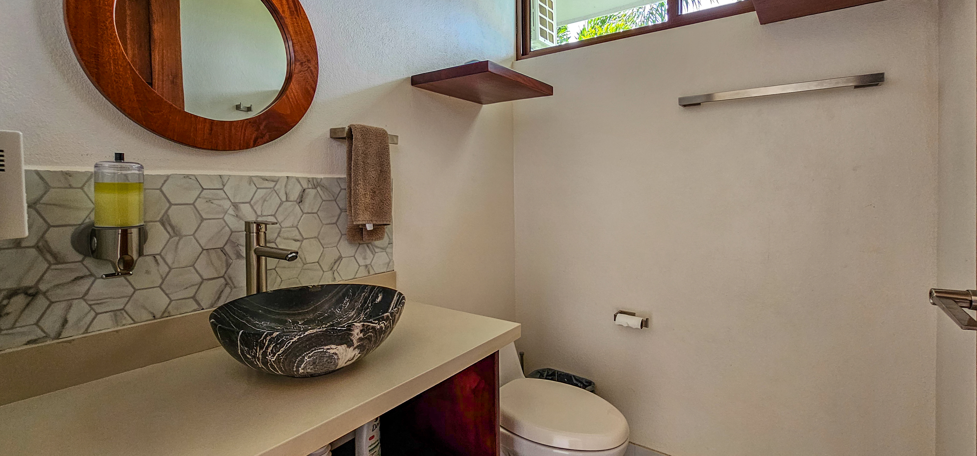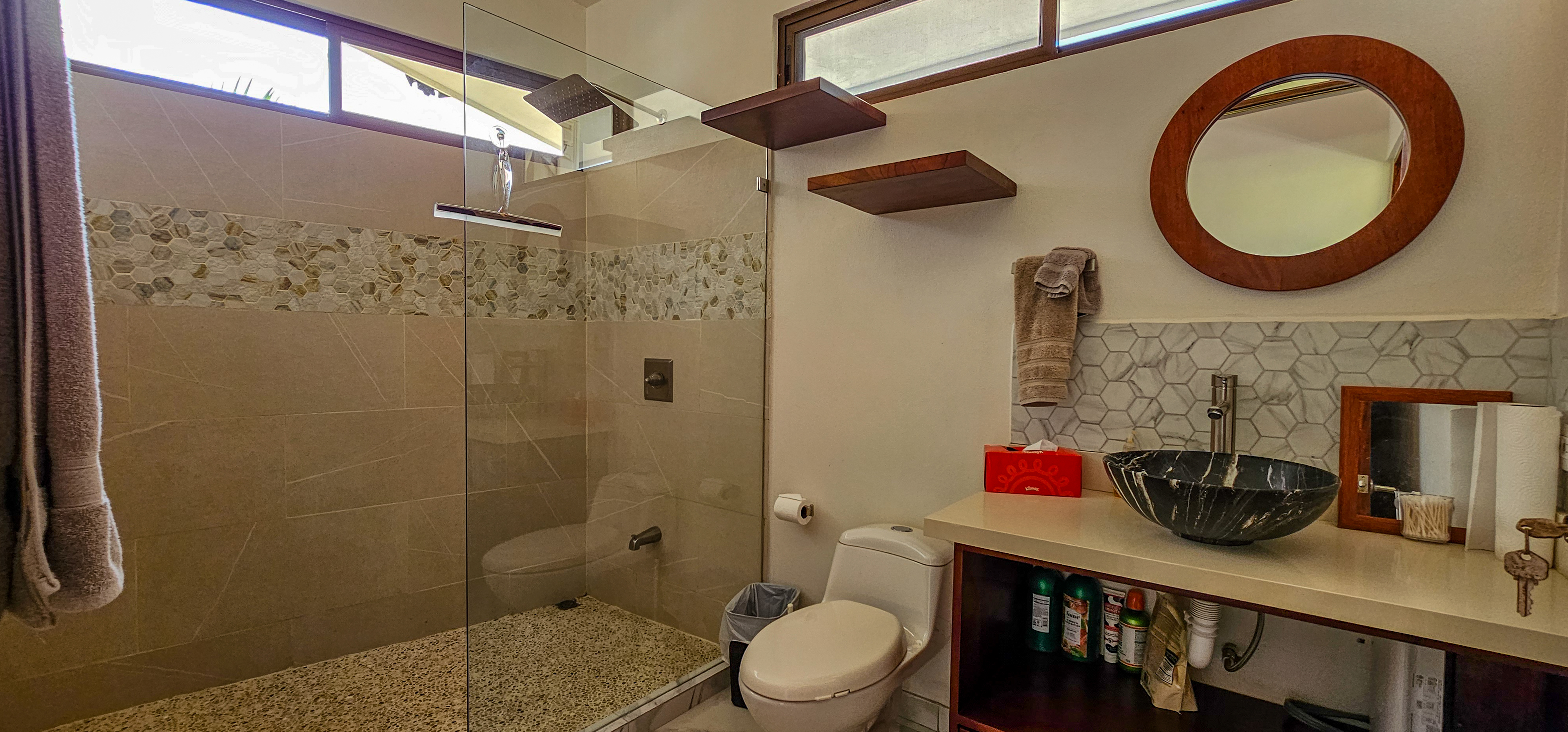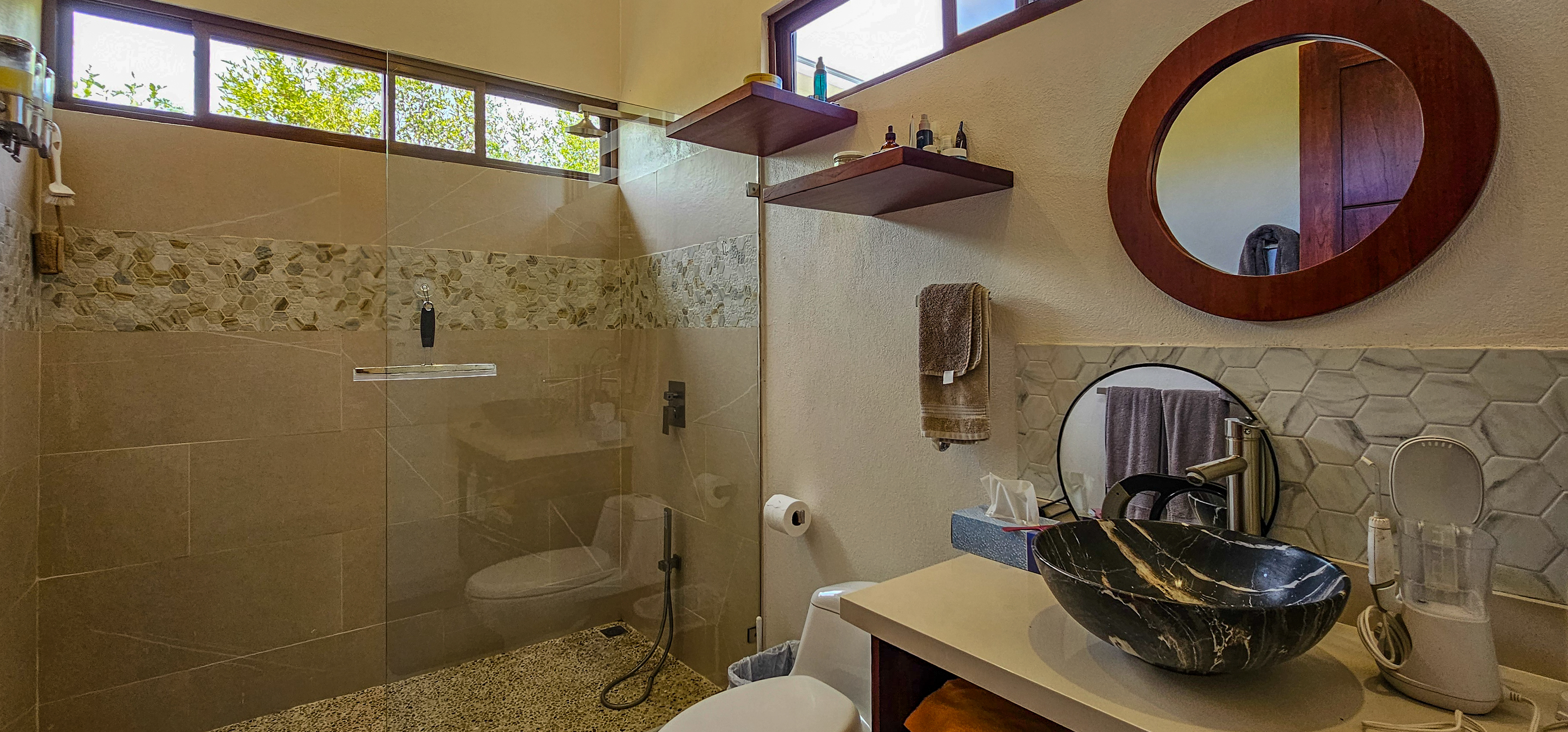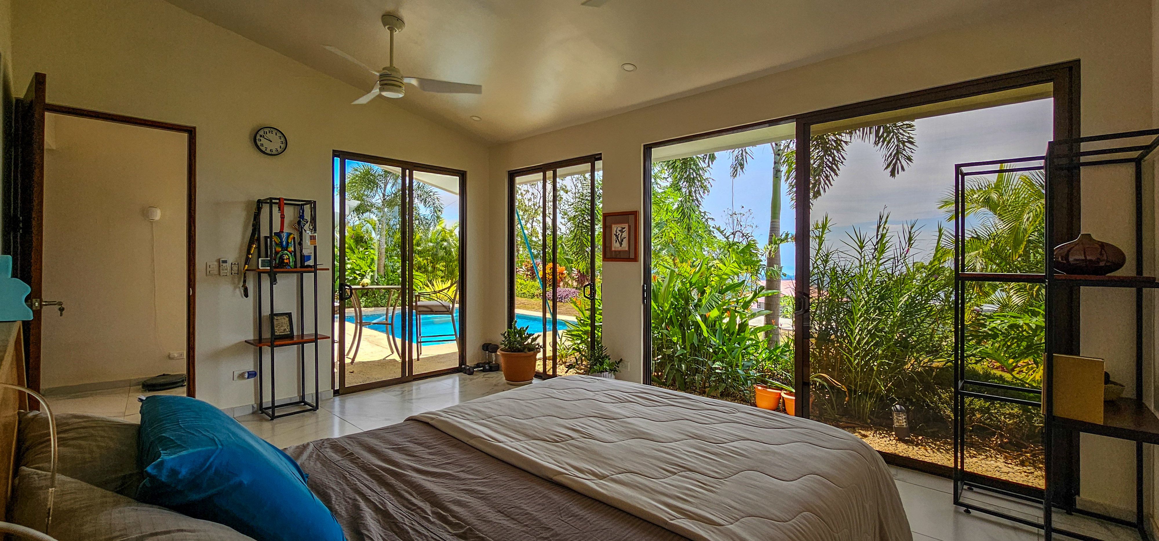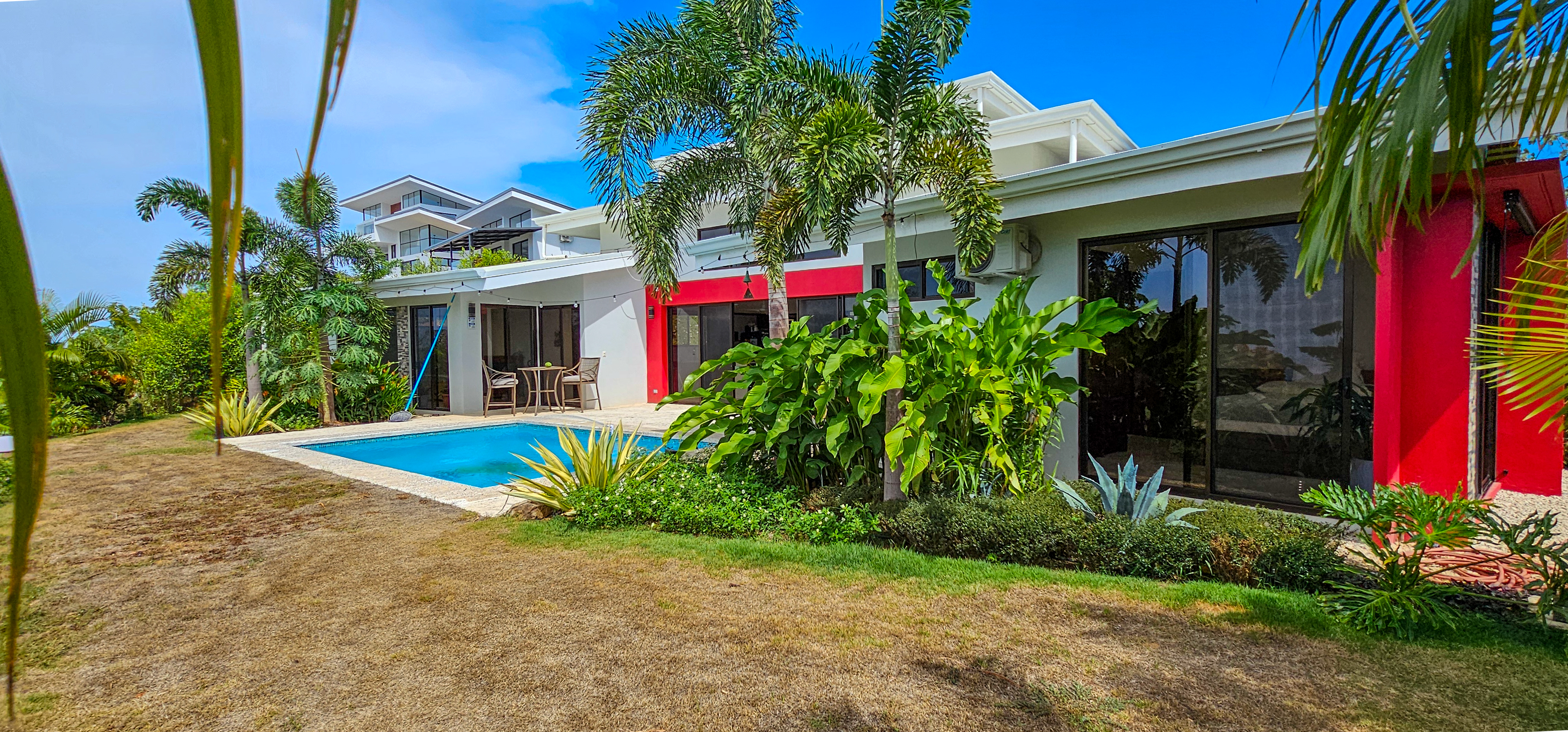 Nestled on a mountainside with spectacular ocean views toward the Nicoya Peninsula, this beautiful 3-bedroom, 2-bath modern home offers a perfect balance of style, comfort, and location. Wake up each morning to stunning sunrises over the ocean and enjoy refreshing cross breezes flowing up from the valley, keeping the home naturally cool and inviting.