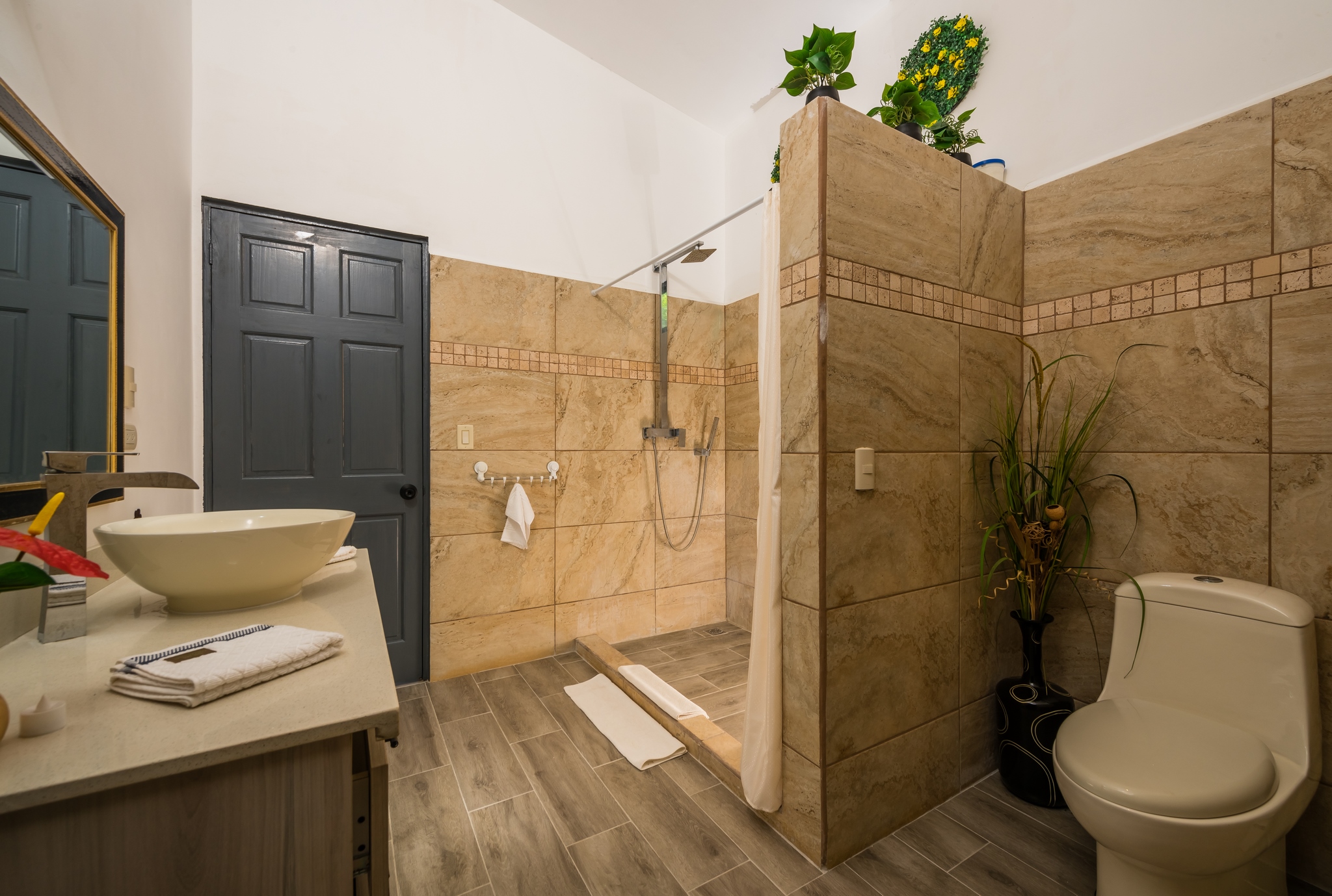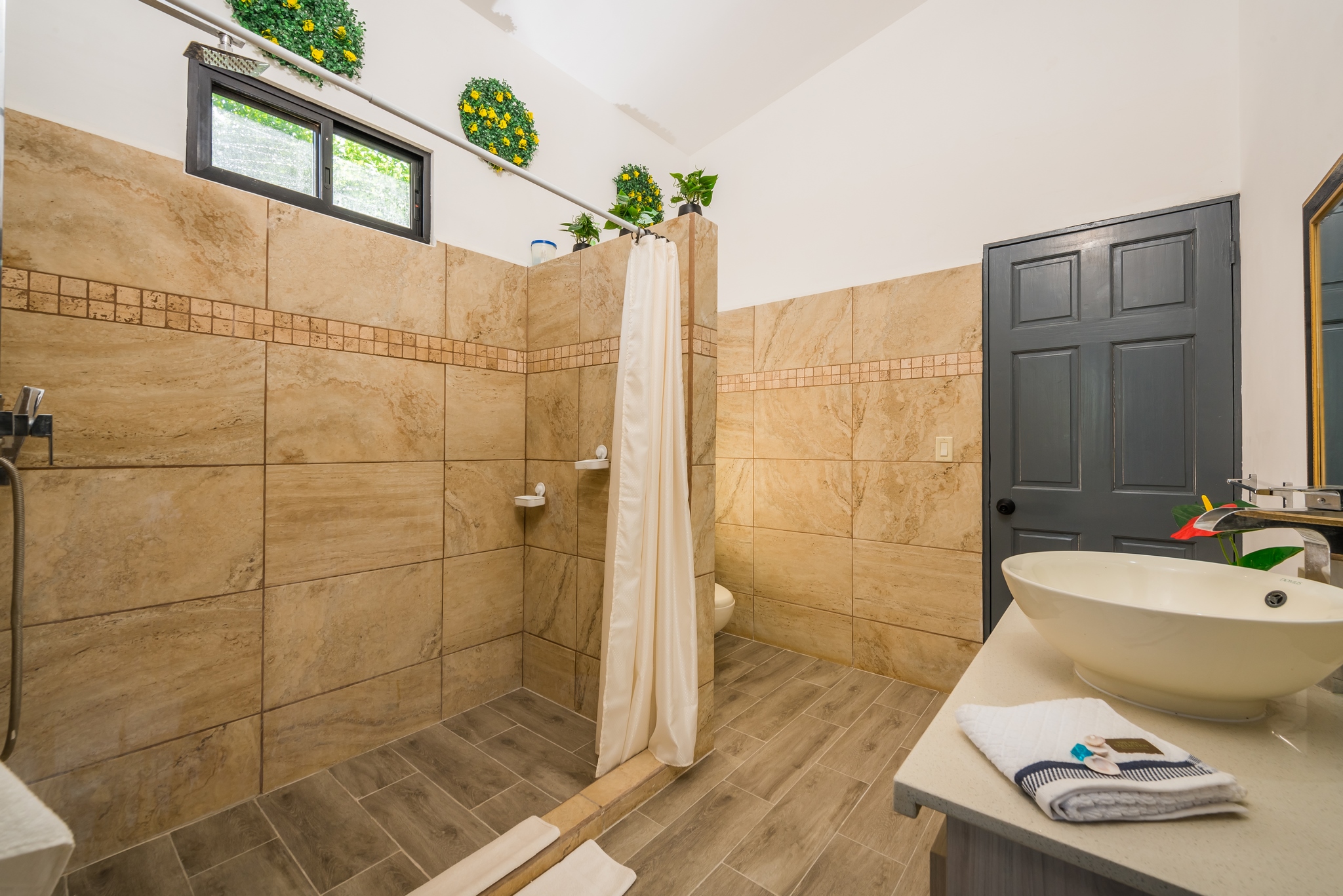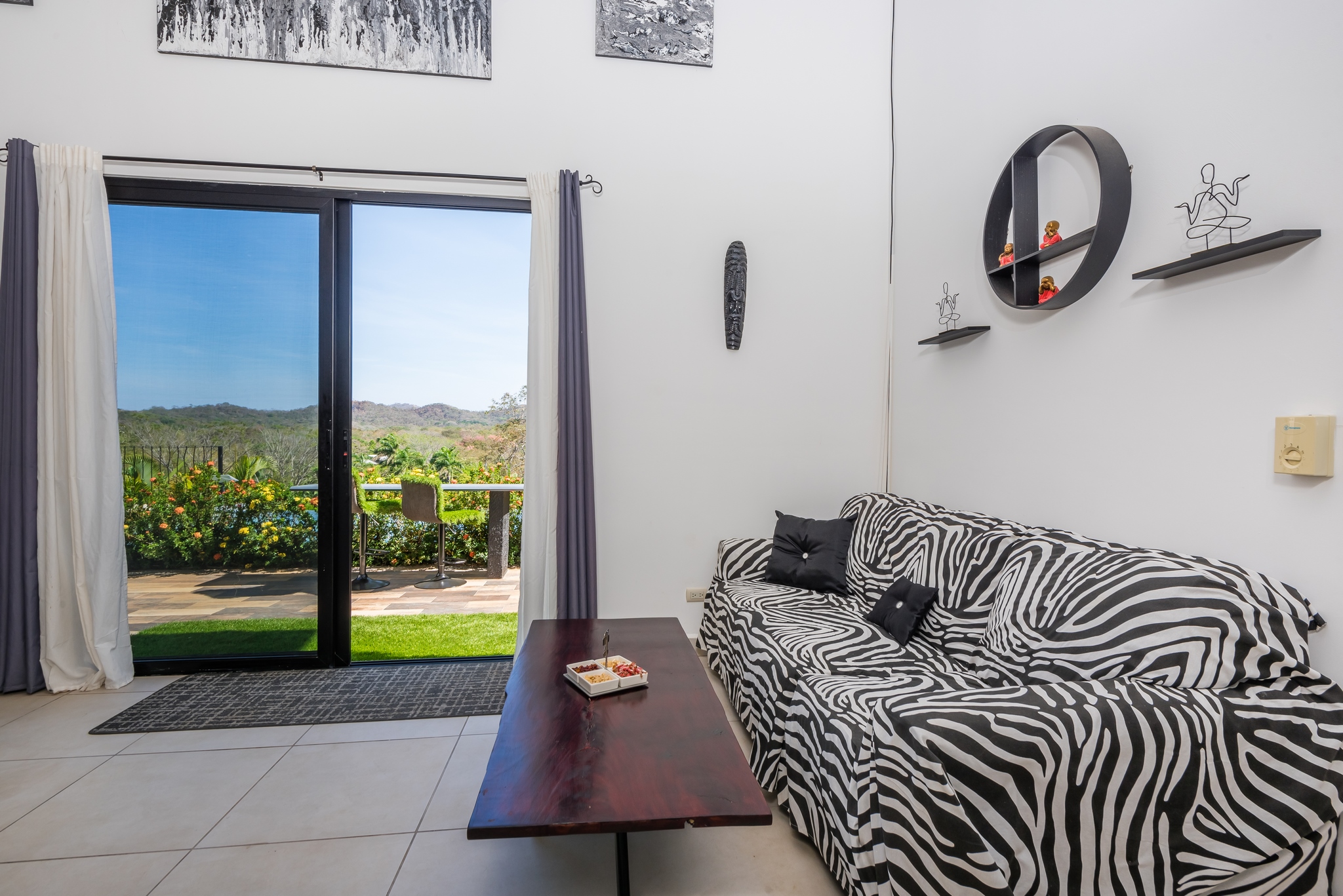 Set on a 5,057 m² lot in the Río Santos area near Tamarindo, this home is located within a private gated community offering privacy and natural surroundings.
