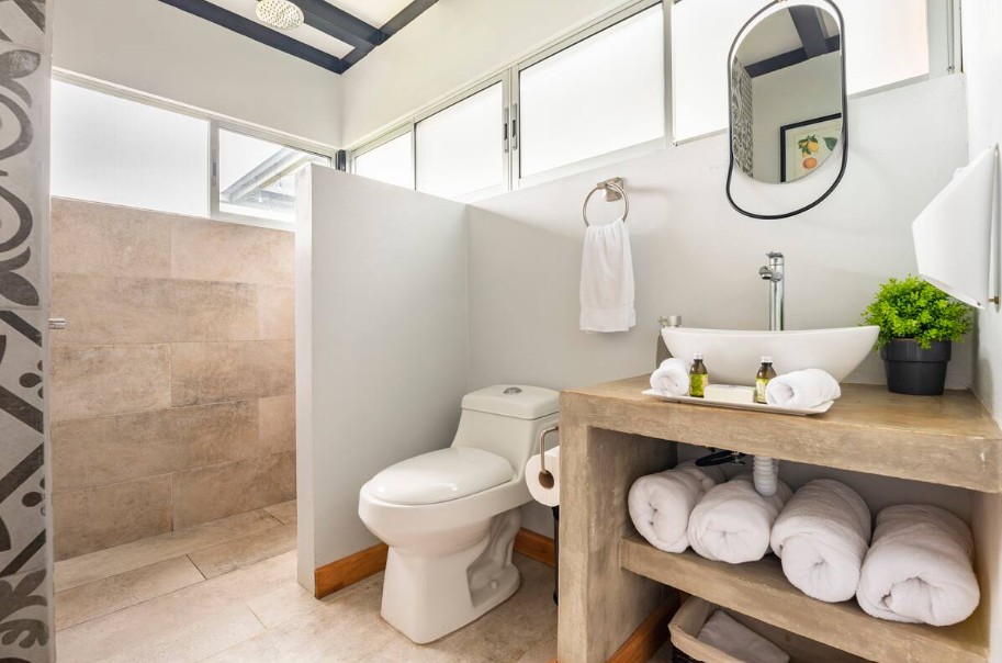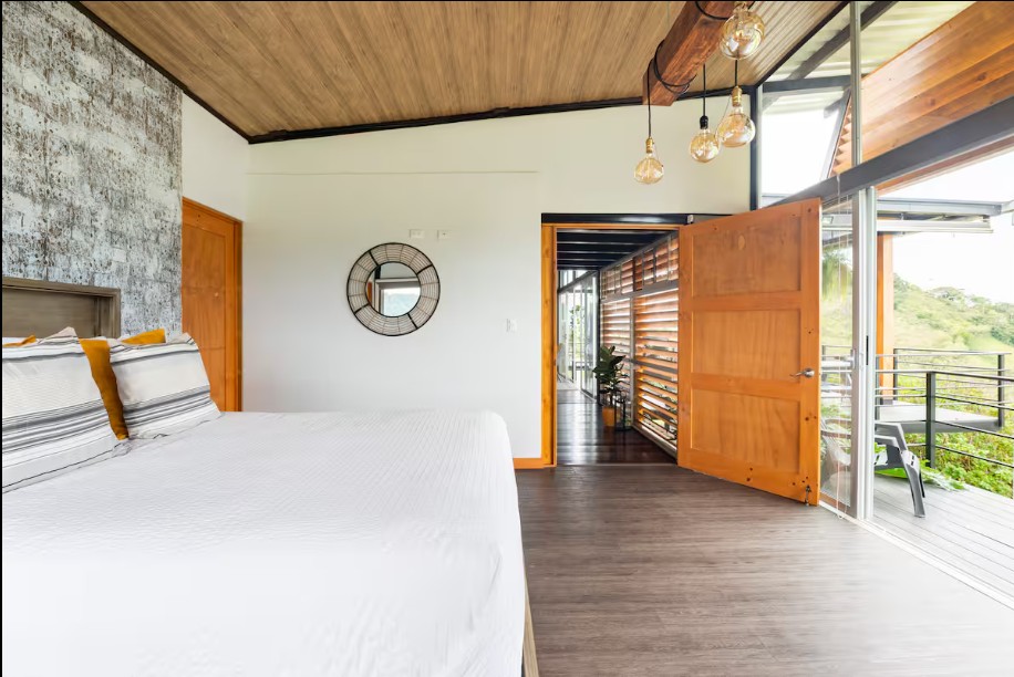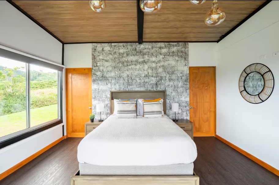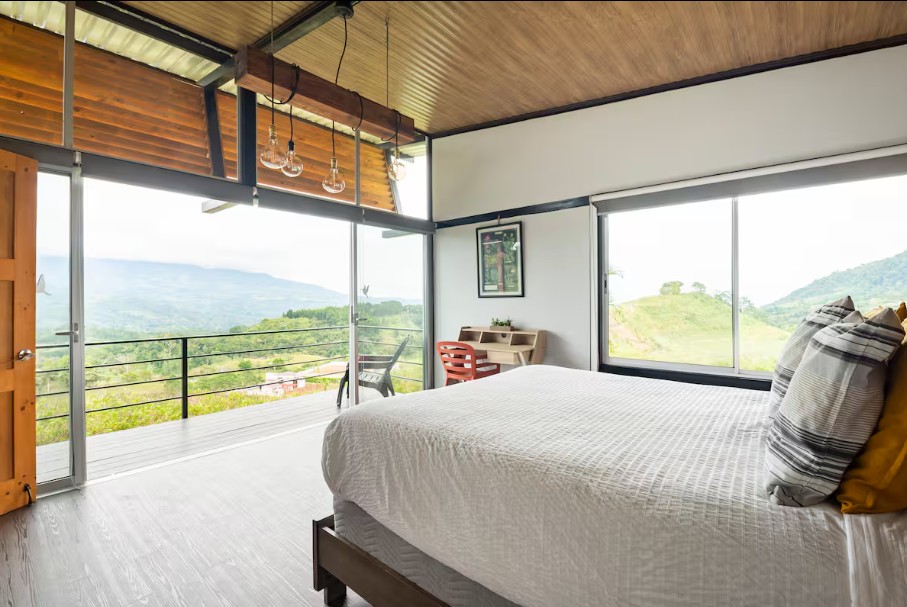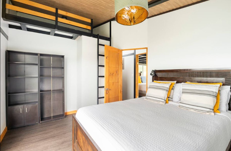 - Third Bedroom: Queen bed, loft with a single mattress, and a private deck overlooking Turrialba scenery.
