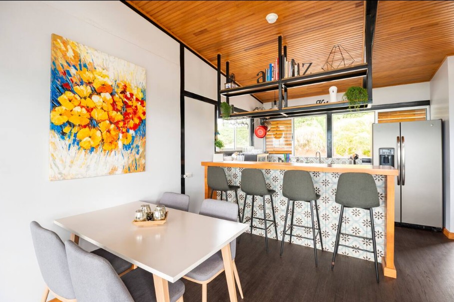 Nestled in a serene coffee plantation in Turrialba, Costa Rica, this fully furnished 3-bedroom, 2.5-bathroom modern home is for sale at $319,000 USD. Spanning a 5,000 m² lot with a 165 m² construction area, this property offers breathtaking 180-degree views of the Turrialba Valley, showcasing the majestic Turrialba and Irazú Volcanoes and downtown Turrialba. Ideal for those seeking sustainable living, tranquility, and proximity to nature, this chic retreat combines comfort and stunning design.