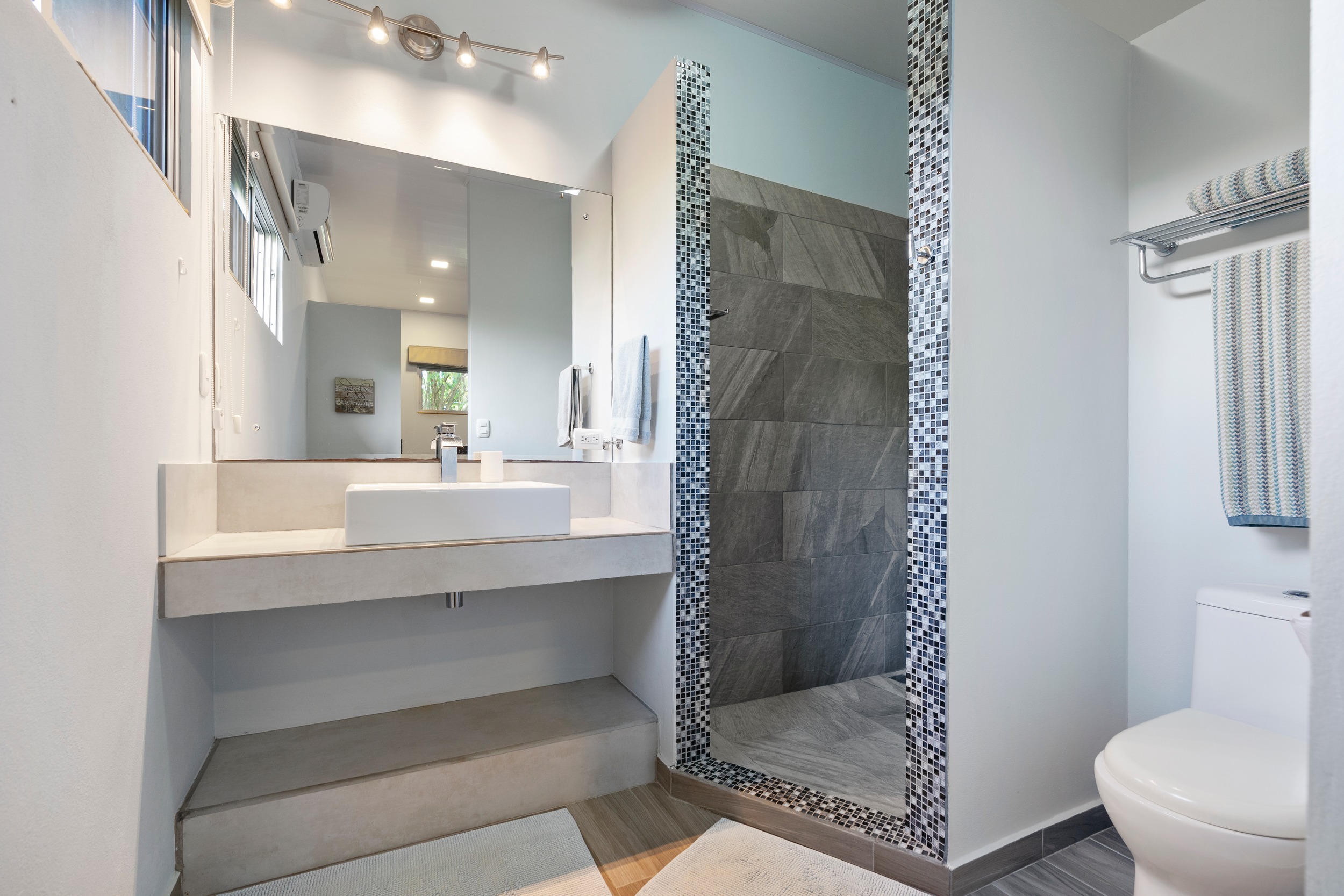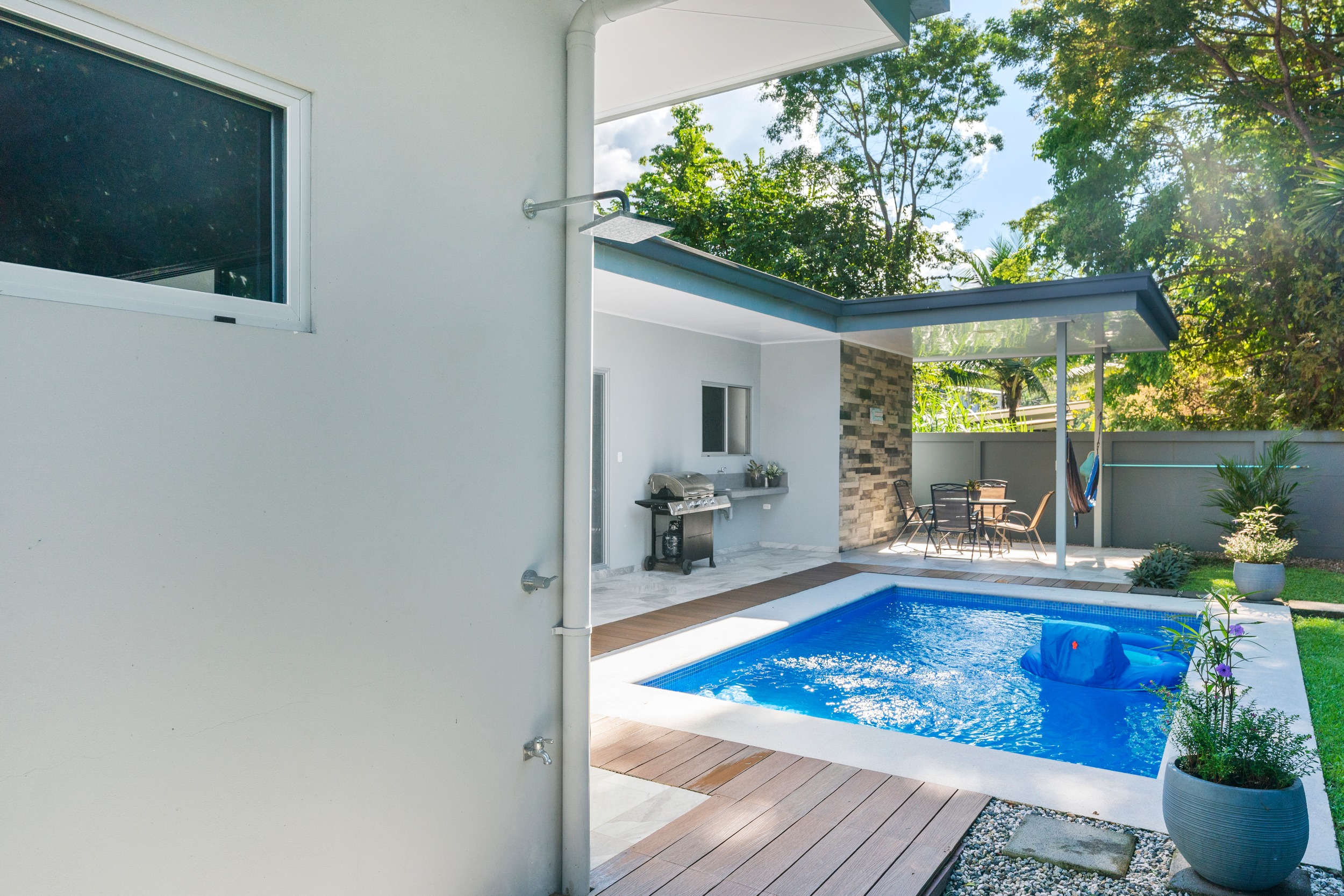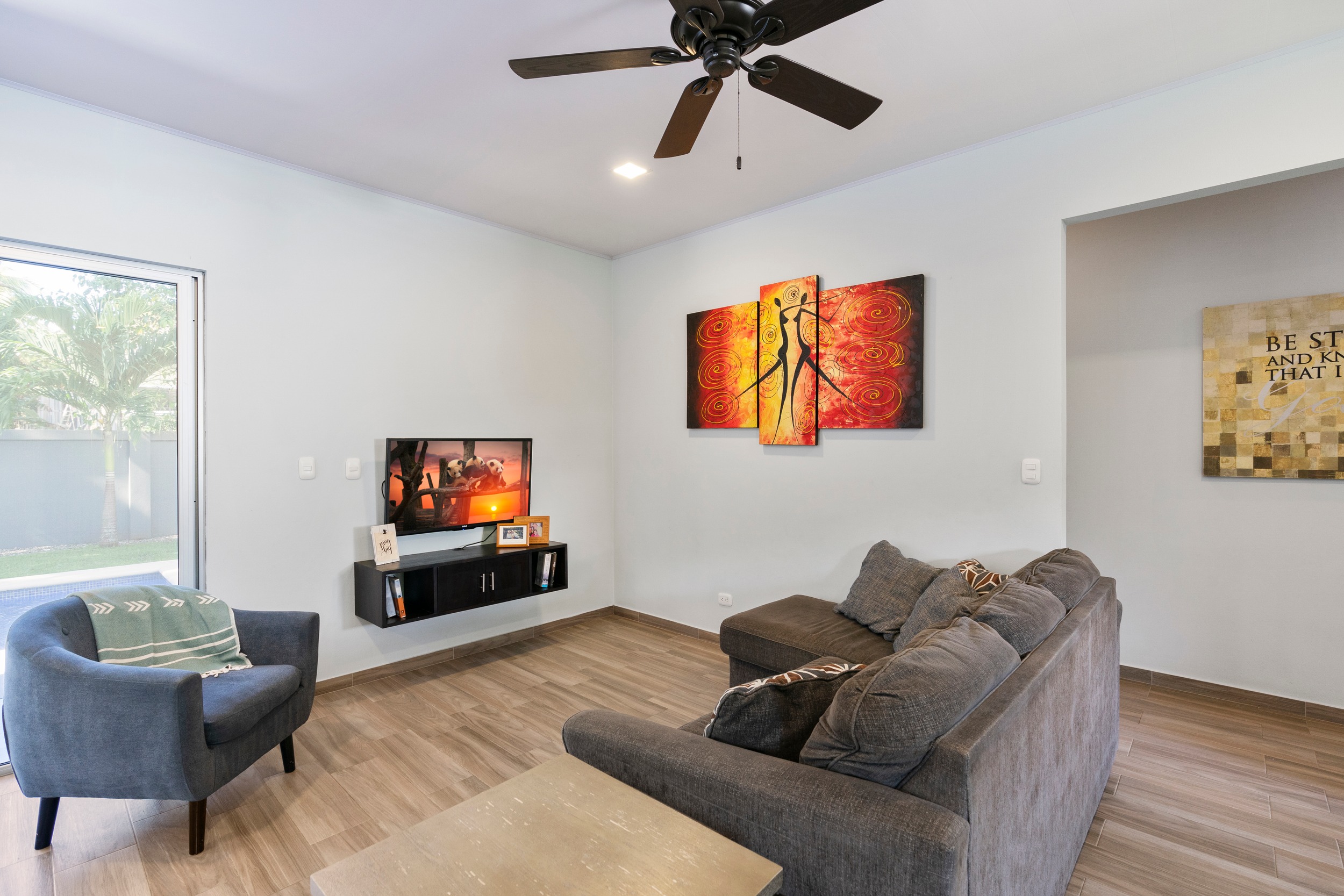 Straight out the sliding glass doors is the pool area with a nice sized pool and covered rancho for outdoor dining and BBQ/entertaining. To the right is the 3 bedrooms and 2 bathrooms. Two of the guest rooms share a full bath in the hallway and the master bedroom has its own spacious on - suite bathroom. All 3 bedrooms have split unit A/C units. To the left is a full - size laundry room and direct access to the 2 car carport. Also off the garage is a HUGE storage bodega for tools and beach chairs, surf boards and toys. Great location for a short term Airbnb or long - term monthly rental. Also the perfect full - time residence for easy day to day living only minutes to all your activities and shopping, yet on a nice residential street with other nice homes as neighboring properties.