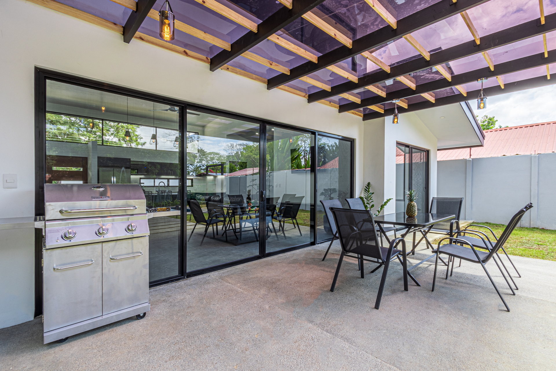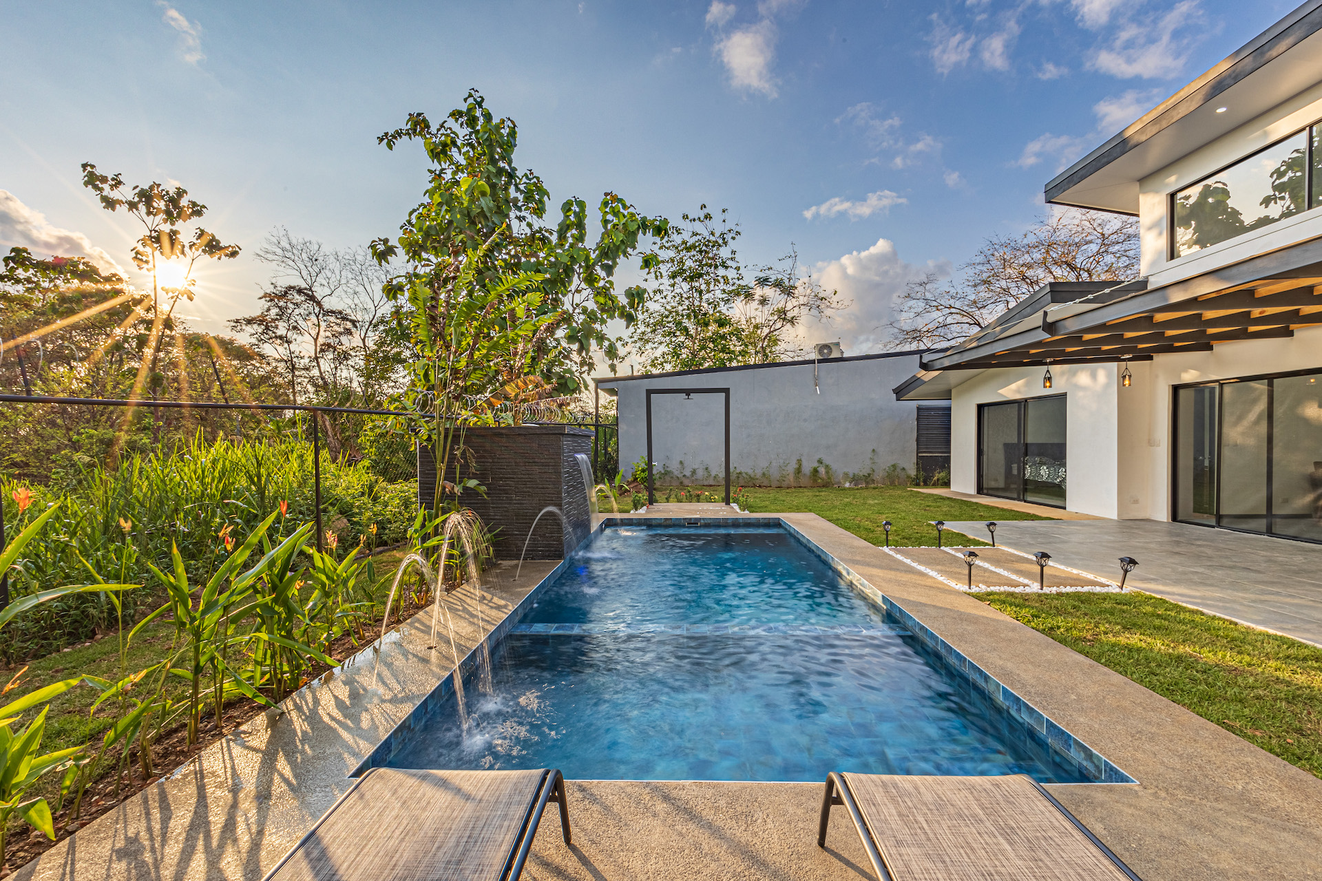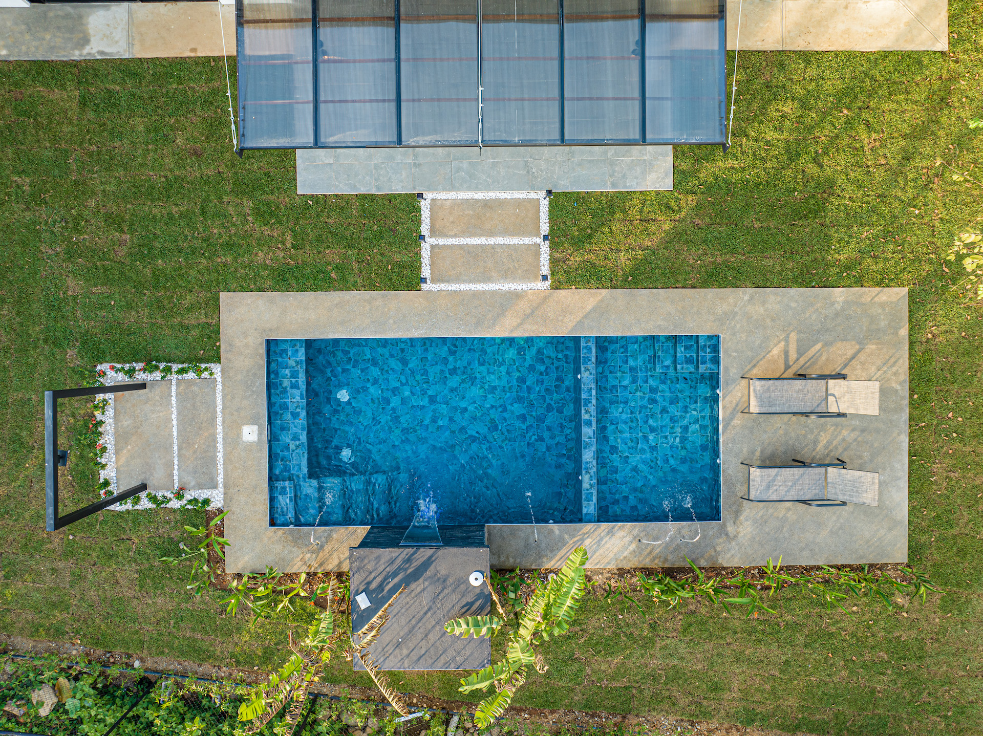 Two of the bedrooms and the living room open to the terrace and pool area. This will be the most fun and private area of the house for you to create great memories with friends and family surrounded by tropical gardens.