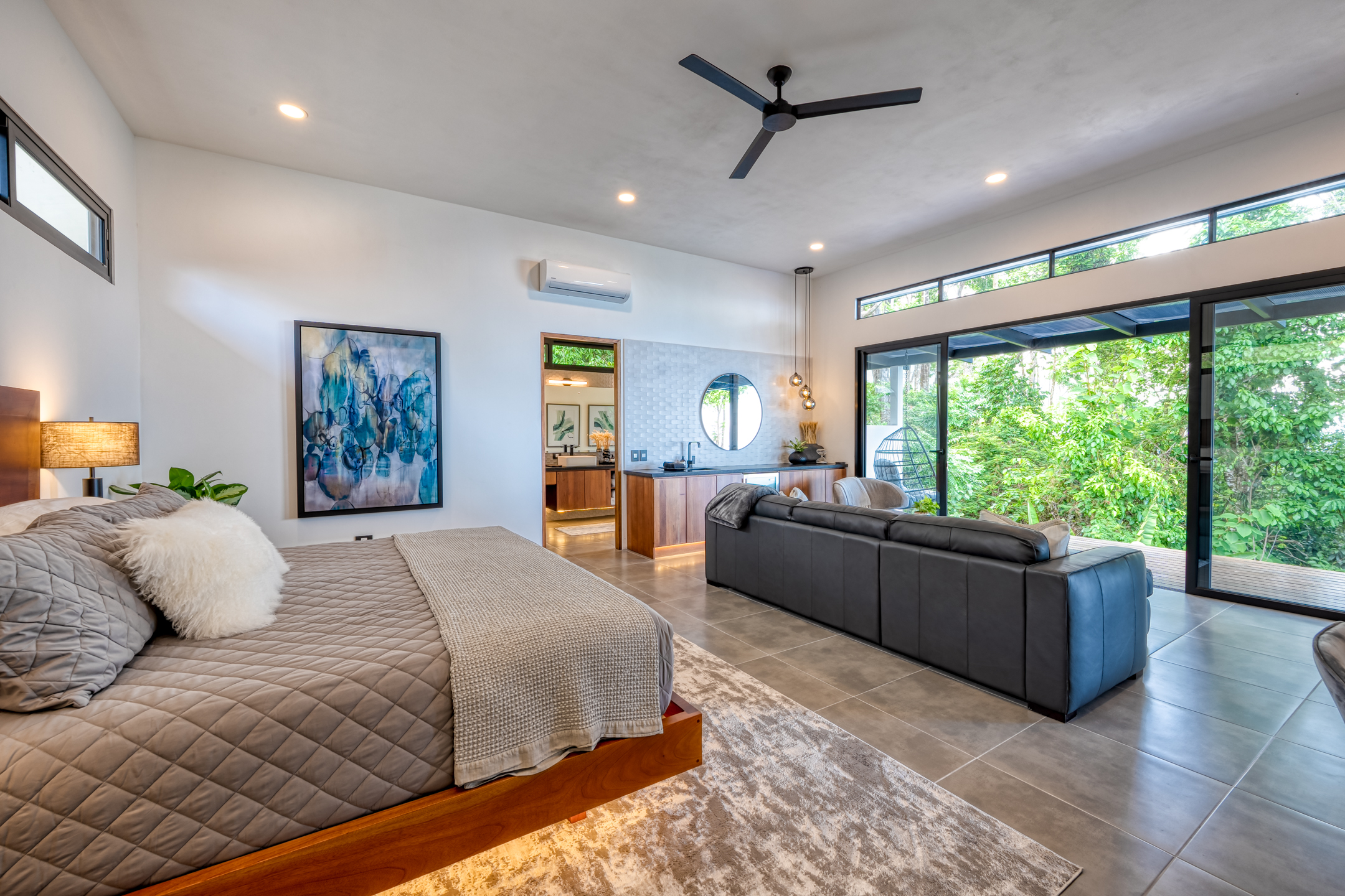 You can enjoy the symphony of sounds and wildlife from the surrounding rainforest, including tropical birds, white face monkeys, and howler monkeys. With numerous fruit trees and pineapple plants including a creek running on the property’s border make for a serene natural environment.