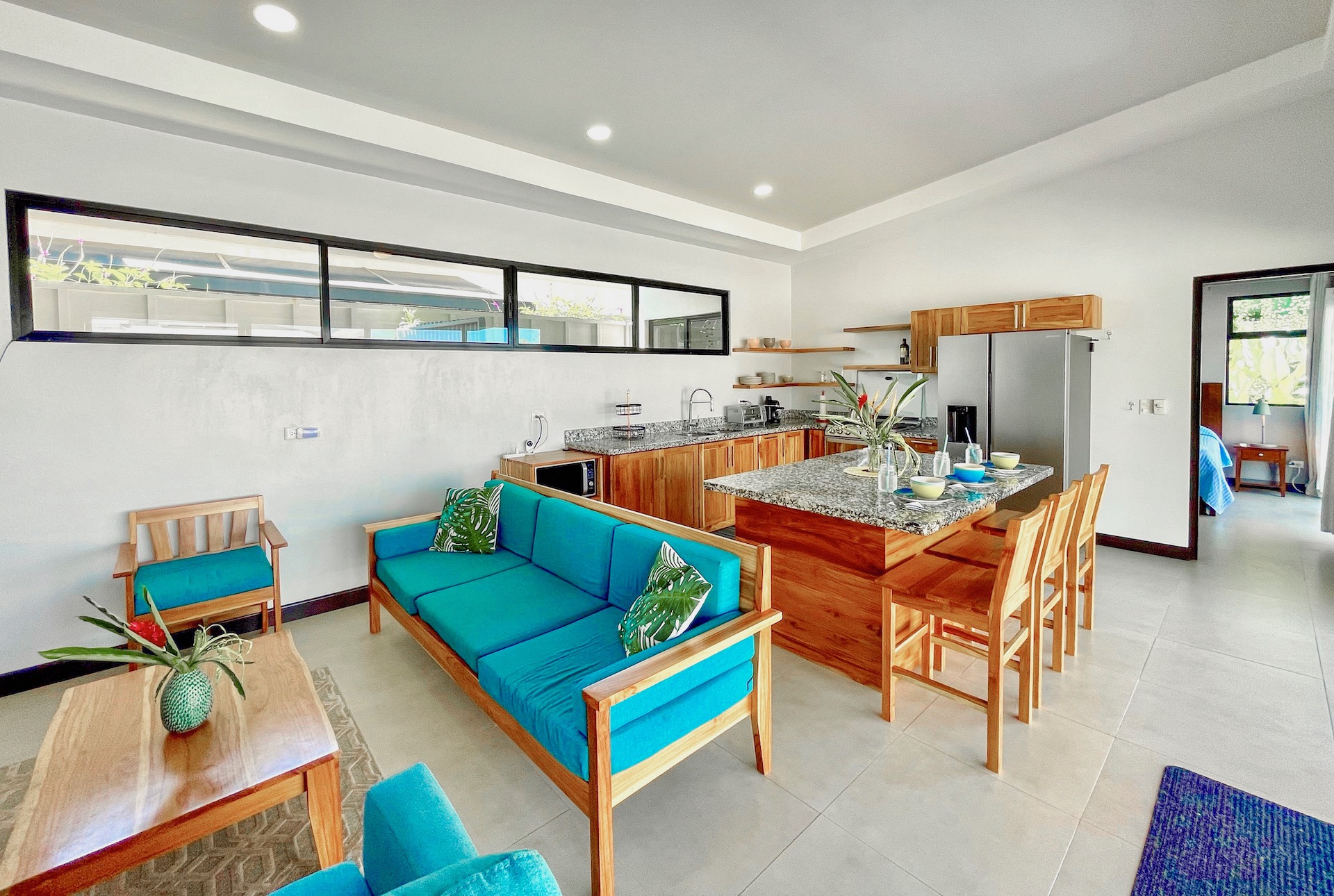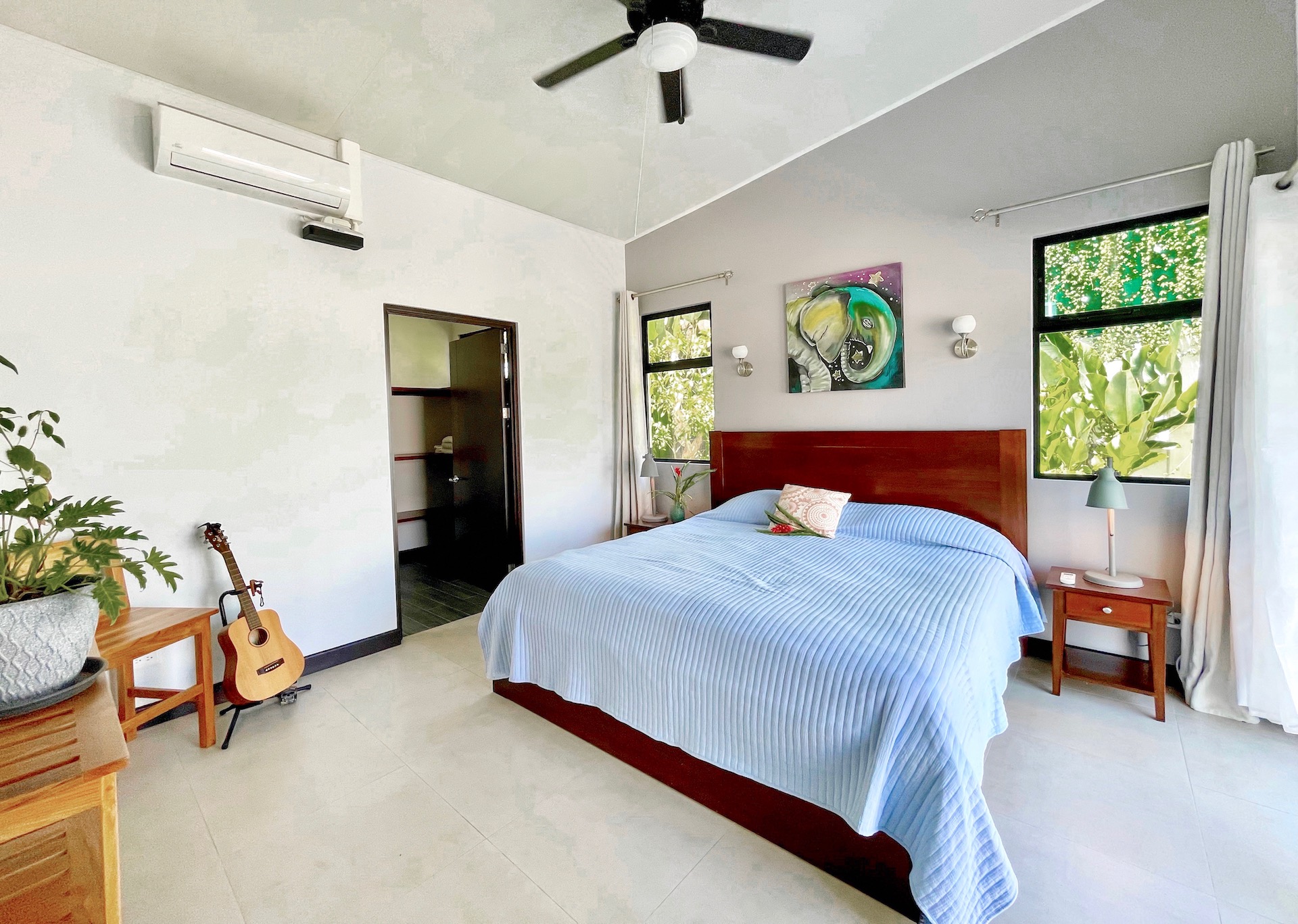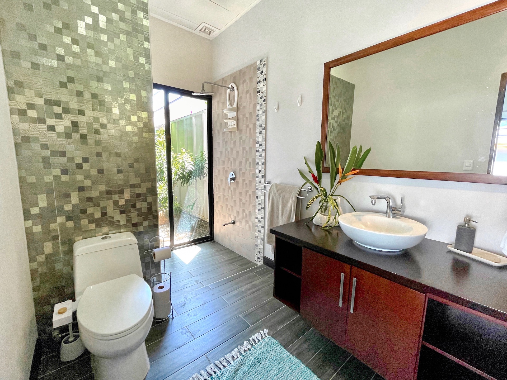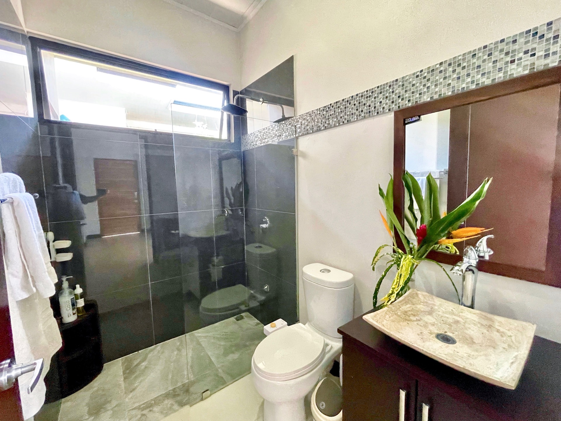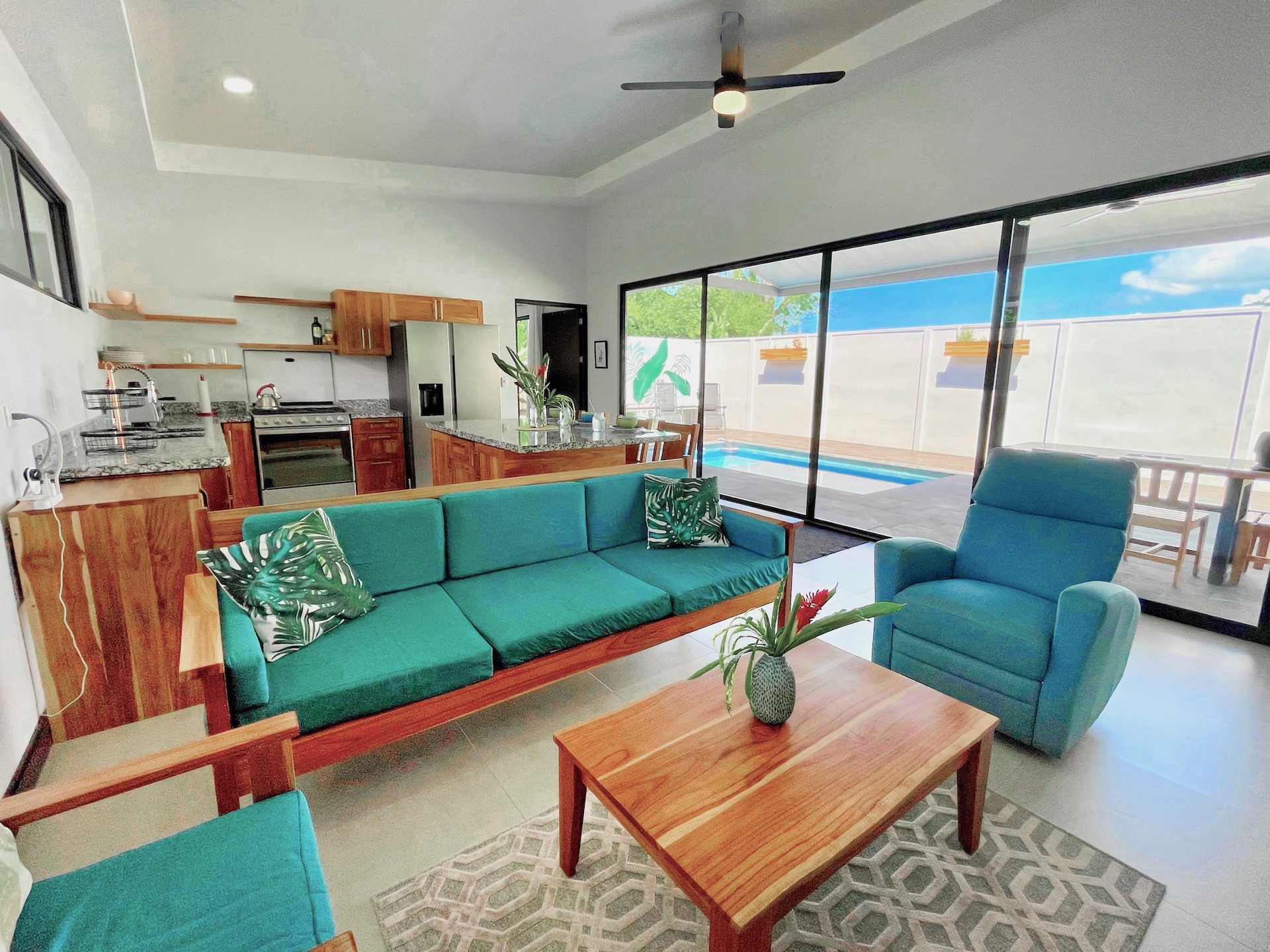This beautifully constructed modern 3 bedroom, 2 full bath gated home with a pool is found on a private dead-end street just minutes from beaches and the Uvita river. Walking distance to all services in Uvita, including grocery stores, banks, farmer’s markets, schools, cafes, bakeries, and more! The property is connected to ASADA water, borders the public roads, and has fiber optic internet. Plenty of space indoors and outdoors for entertaining with large sliding doors that open from the living room and master bedroom to the pool terrace. Perfect for a family or rental!