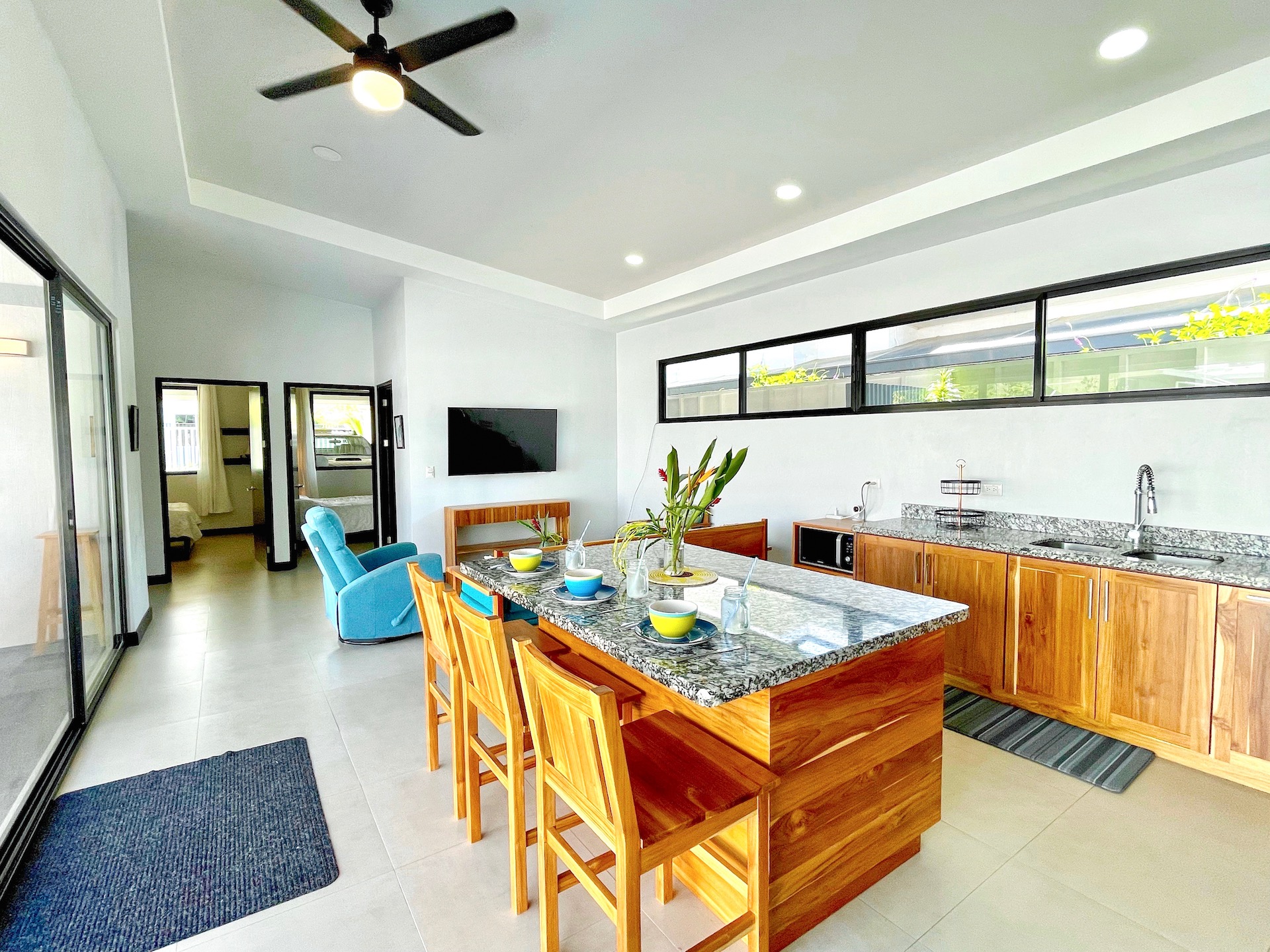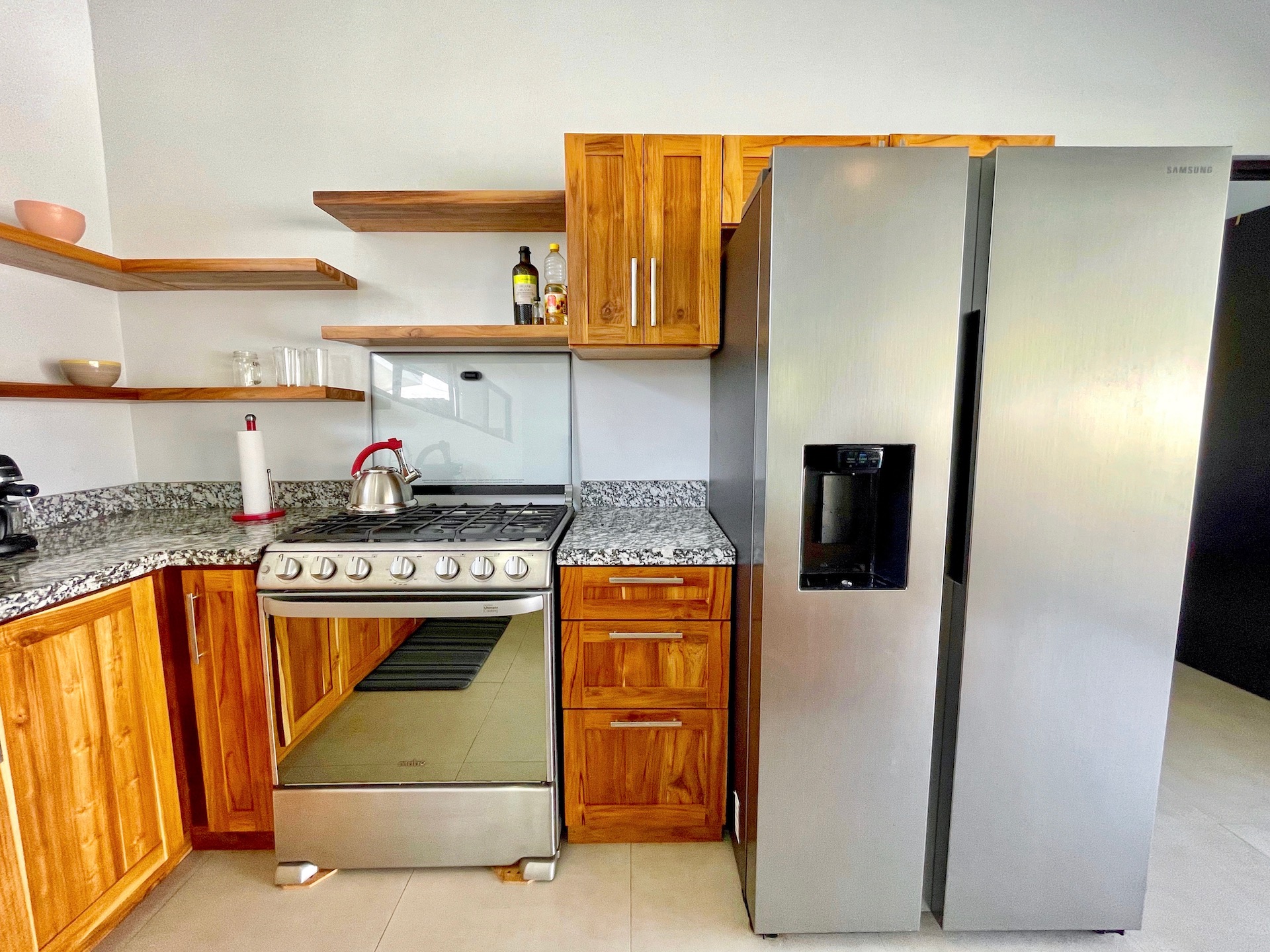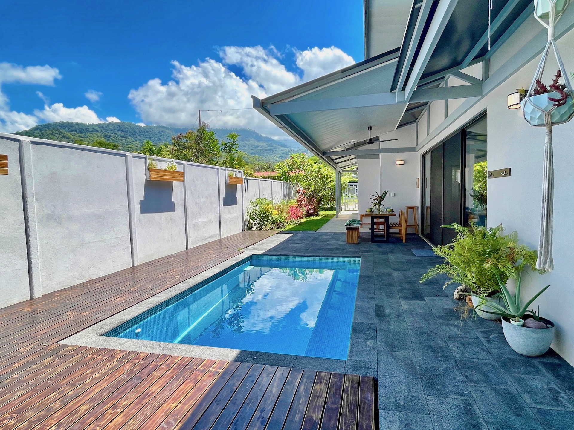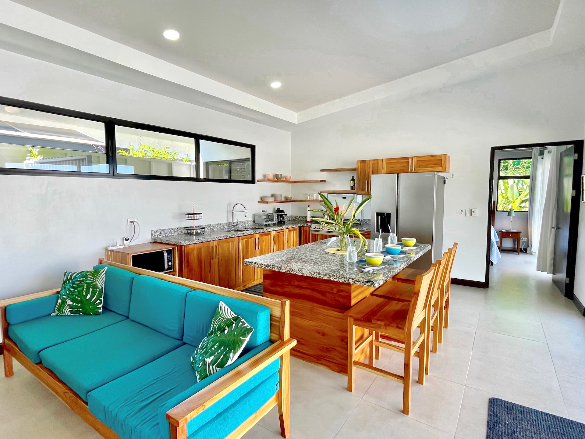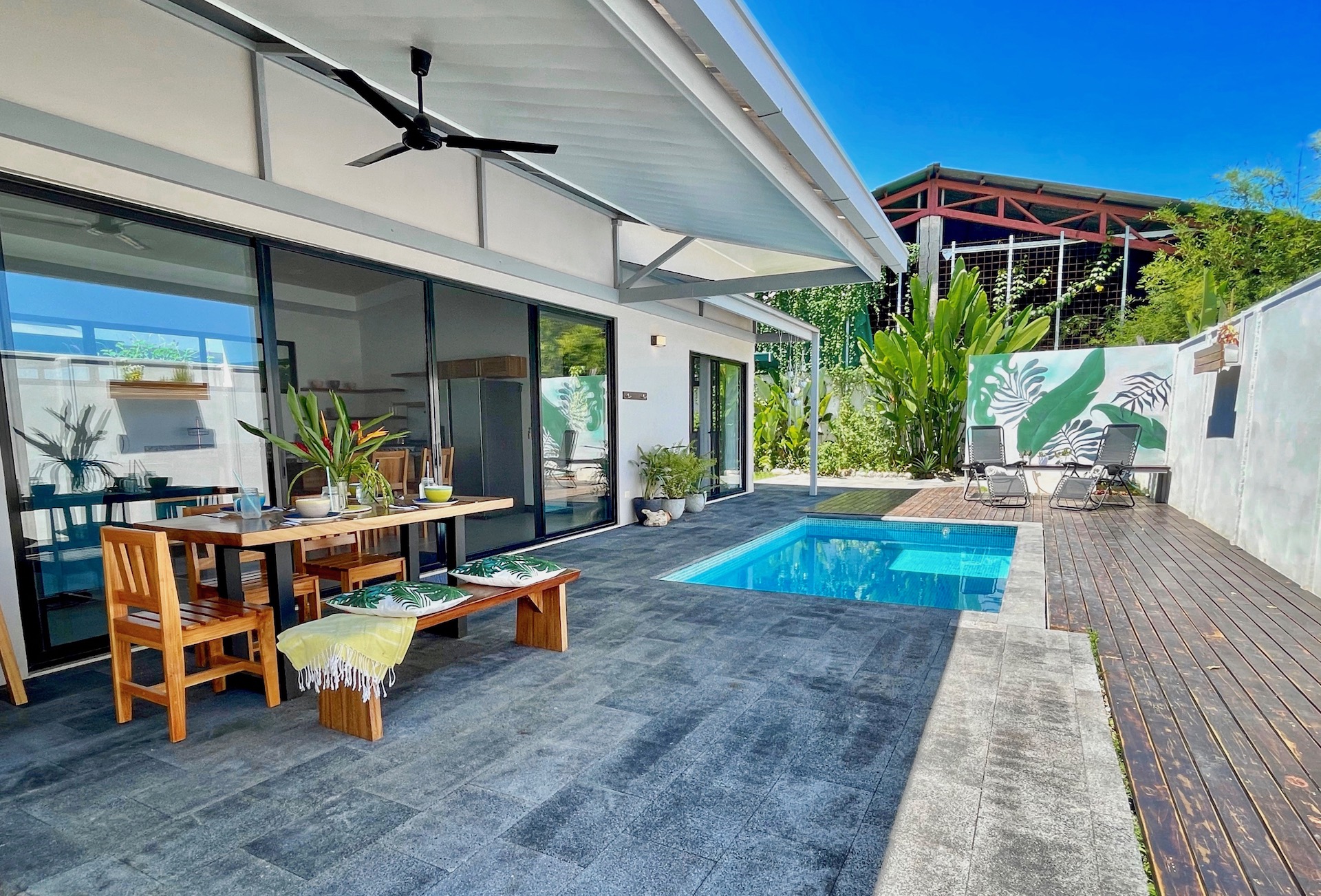 This beautifully constructed modern 3 bedroom, 2 full bath gated home with a pool is found on a private dead-end street just minutes from beaches and the Uvita river. Walking distance to all services in Uvita, including grocery stores, banks, farmer’s markets, schools, cafes, bakeries, and more! The property is connected to ASADA water, borders the public roads, and has fiber optic internet. Plenty of space indoors and outdoors for entertaining with large sliding doors that open from the living room and master bedroom to the pool terrace. Perfect for a family or rental!