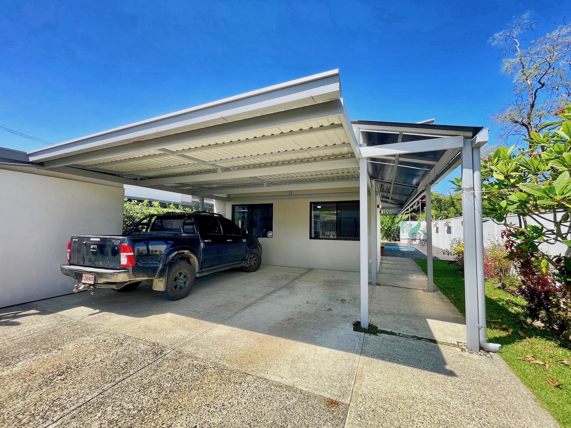 Extended covered parking area for 2 vehicles with keyless gated entry