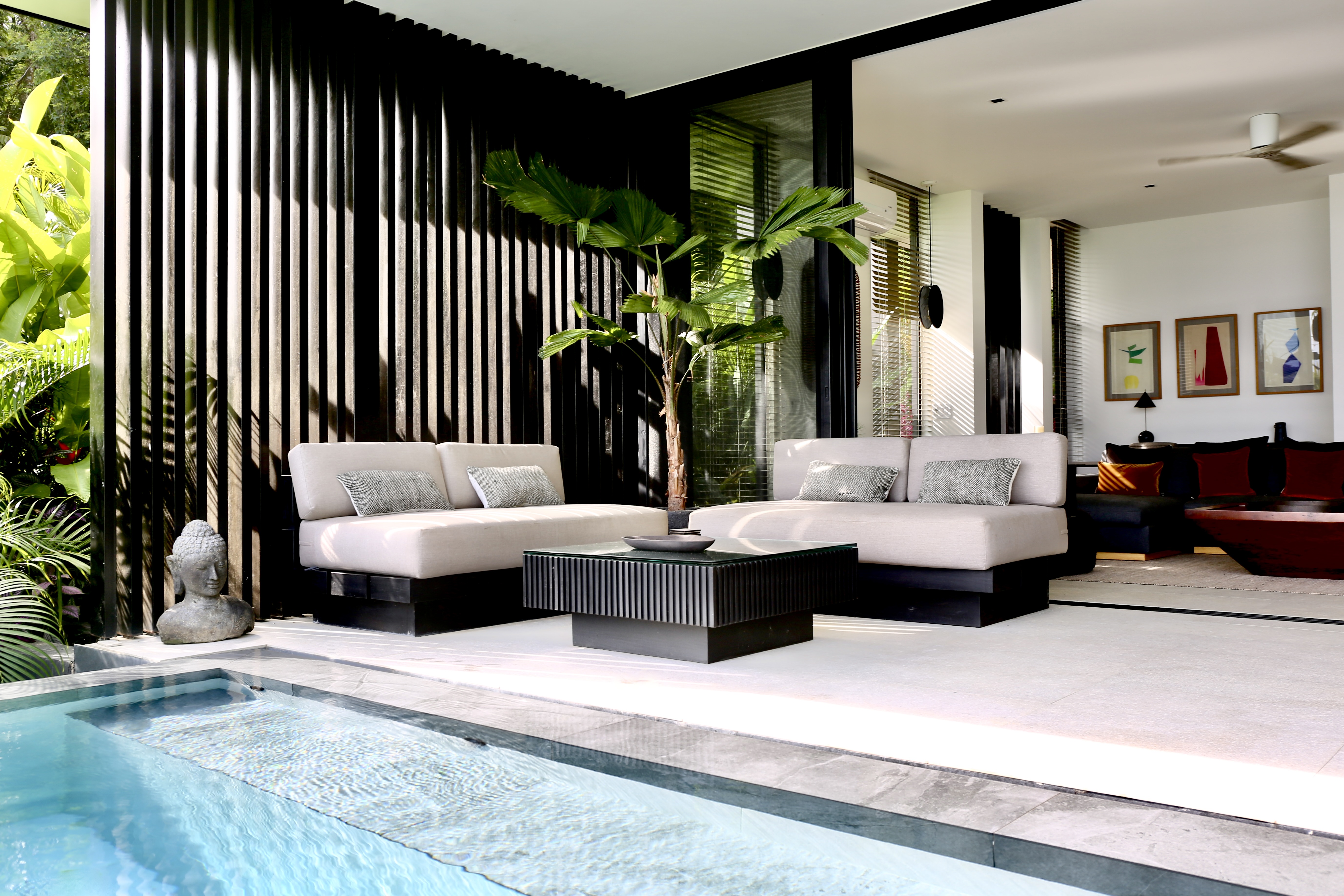 VILLA 1 offers a more intimate yet equally luxurious retreat across 287 square meters (3,089 square feet). It boasts a grand primary suite, a cozy yet modern living and dining area, and a high-end kitchen designed for entertaining. The villa also includes a private pool, an open-air shower, a separate laundry and storage area, and a dedicated yoga deck nestled in nature—perfect for peaceful reflection and wellness.