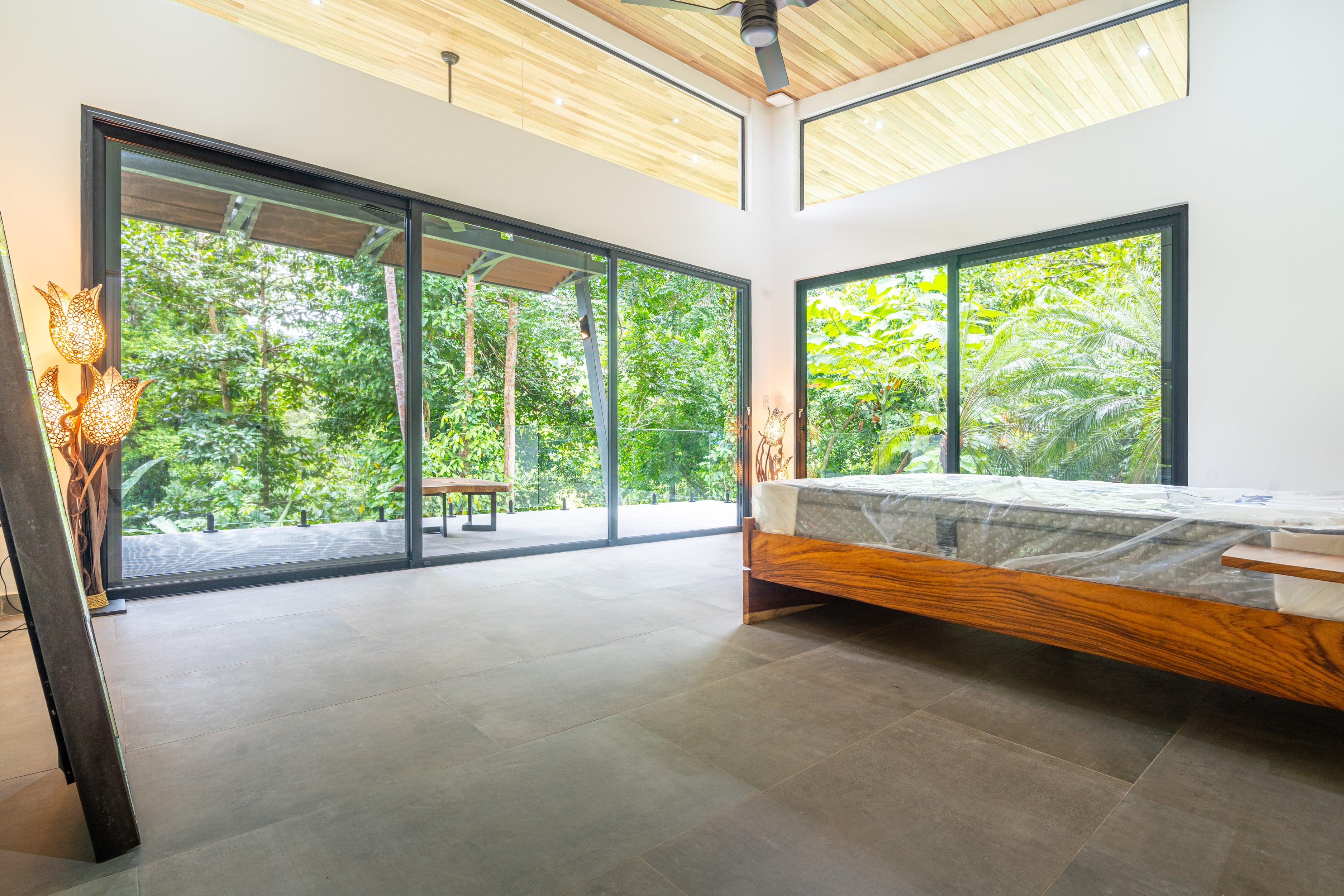 The ensuite bathroom boasts the largest walk-in shower in the region, complete with dual rainforest shower heads and multiple body jets, encased in glass that opens directly onto a stunning stone bathtub and a wraparound deck overlooking the jungle canopy. This ensuite also boasts the most incredible custom-made granite sink which is backlit for elegance and dramatic effect. The outdoor shower could come directly out of Architectural Digest! This room also includes a safe room, suitable for a movie set.