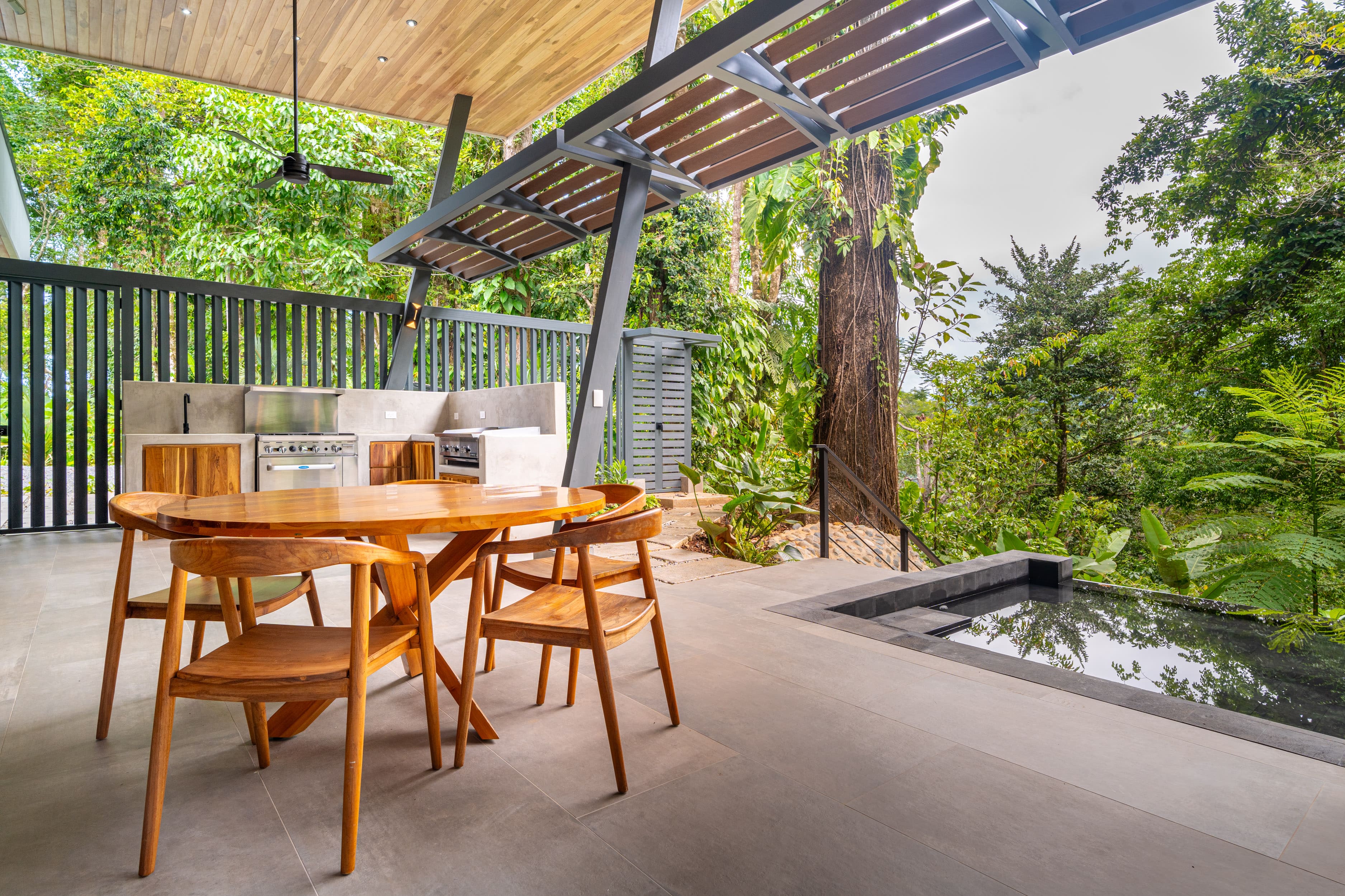 Step outside and discover your own private luxury jungle spa. The outdoor living area is expansive and impeccably designed: