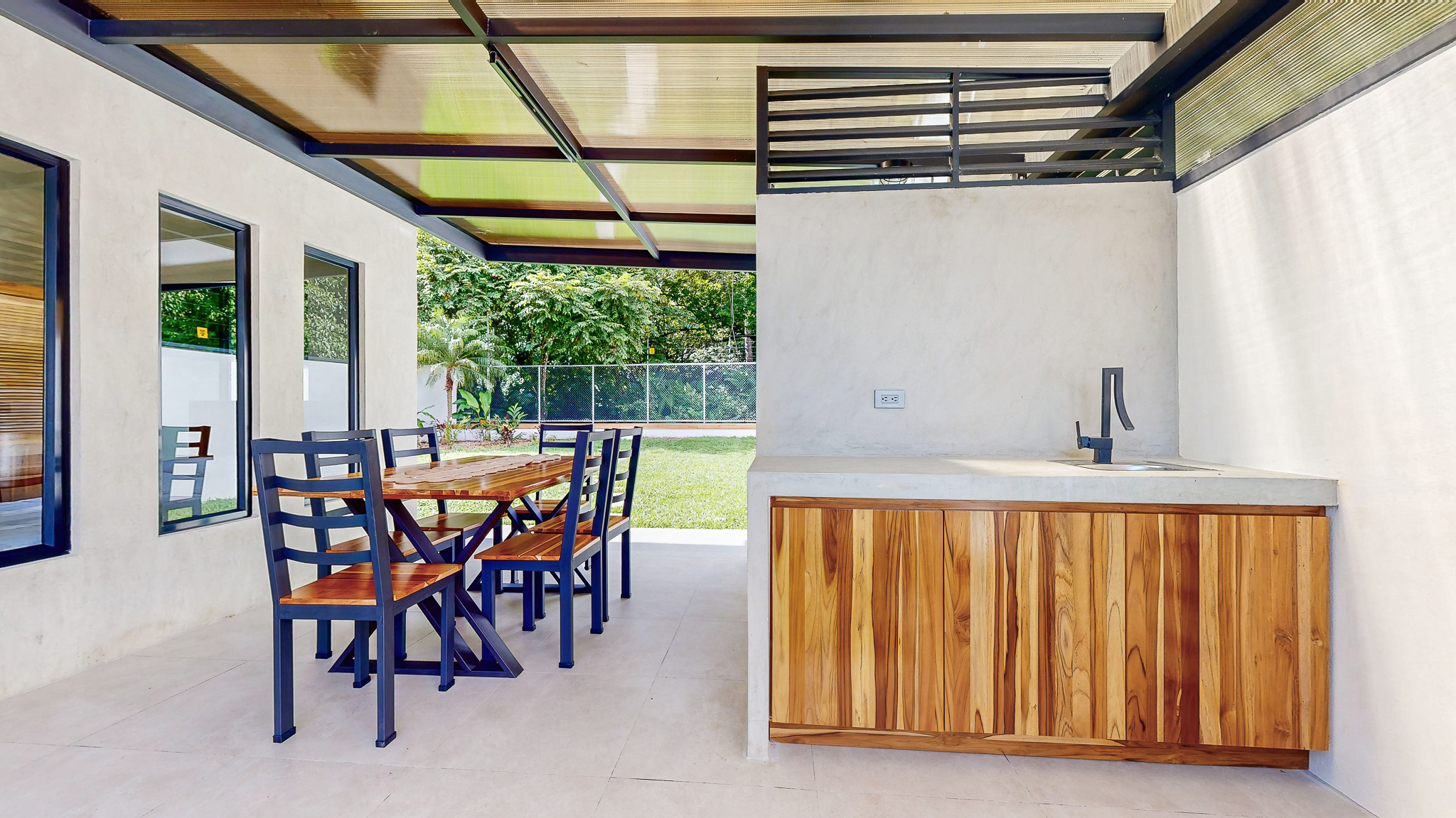 Discover this stunning home in Uvita, Costa Rica, a tropical paradise that attracts those seeking a serene and refined lifestyle. Upon arrival, you will be greeted by a covered garage with space for two vehicles, next to a spacious covered terrace that features an outdoor barbecue area and a charming pool, perfect for cooling off on warm tropical days. Located in the cultural heart of Uvita, this property is surrounded by a vibrant mix of restaurants, cafes and bars, both local and international, each with a unique and welcoming atmosphere.