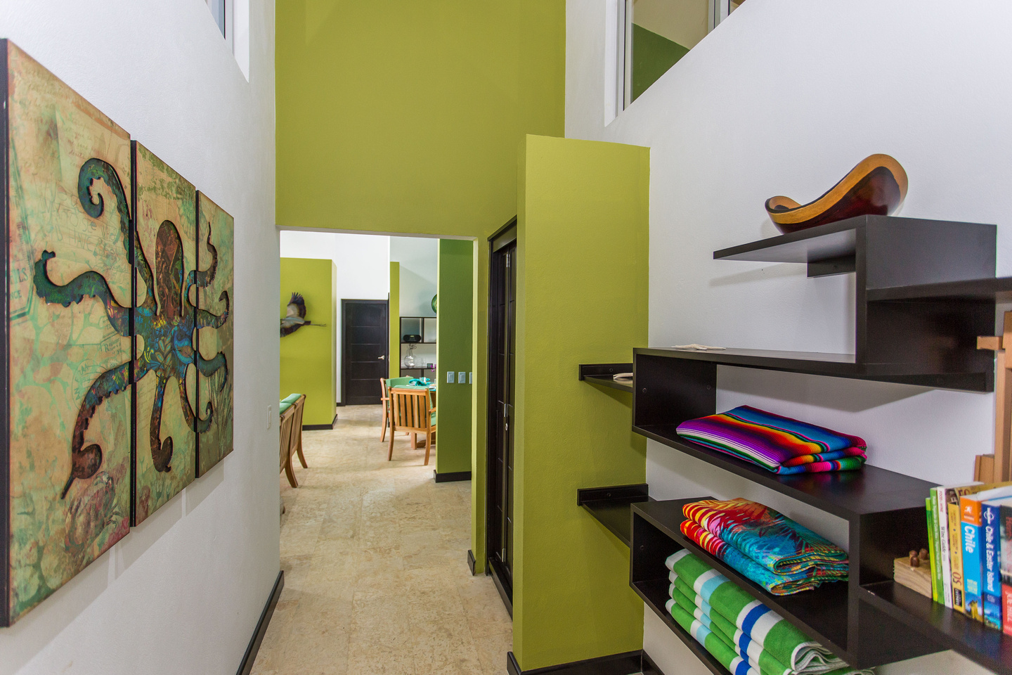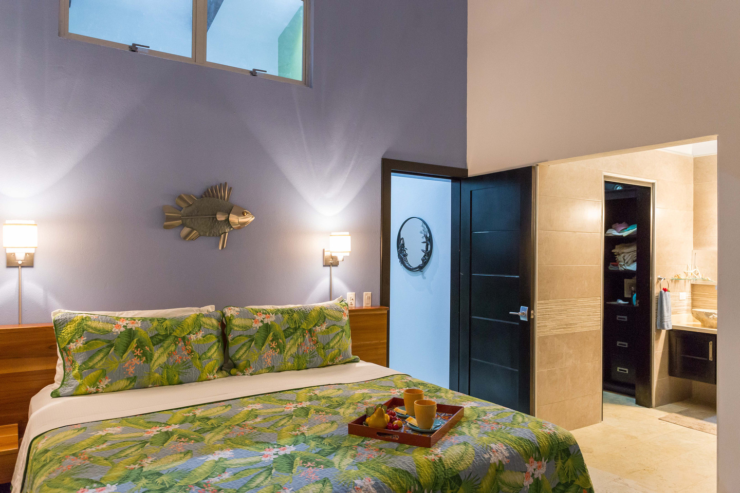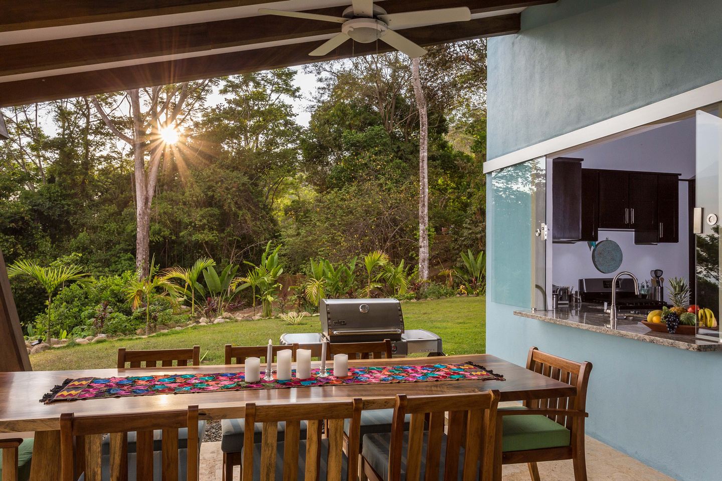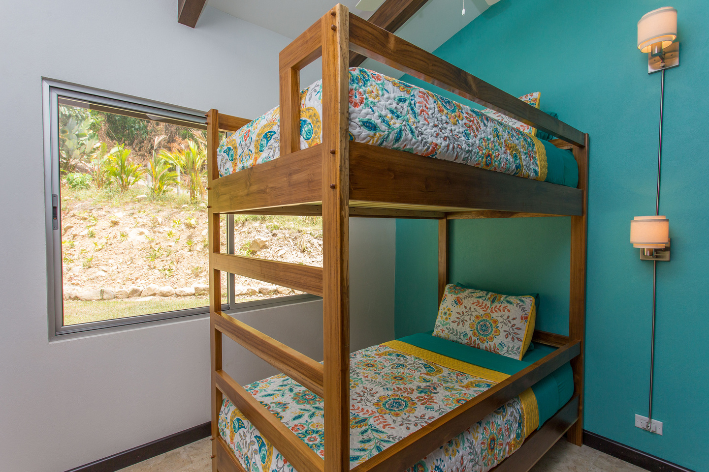 The 2,300 sq. ft. home features a streamline modern design overlooking the jungle, ocean and an small pick of the Whale's Tail. The kitchen and living area features an open floor plan, with sliding glass doors into the pool side terrace. The kitchen is finished with marble counter tops hardwood cabinetry. The single plane roof design allows for natural airflow, keeping the main living area a comfortable temperature without the day. A bib terrace looking down to the infinity edge pool will keep you cool all day. The infinity edge pool faces the ocean and the forest where one will see a variety of wildlife such as Howler monkeys, Capuchin monkeys, Scarlet Macaws, green parrots, and much more!