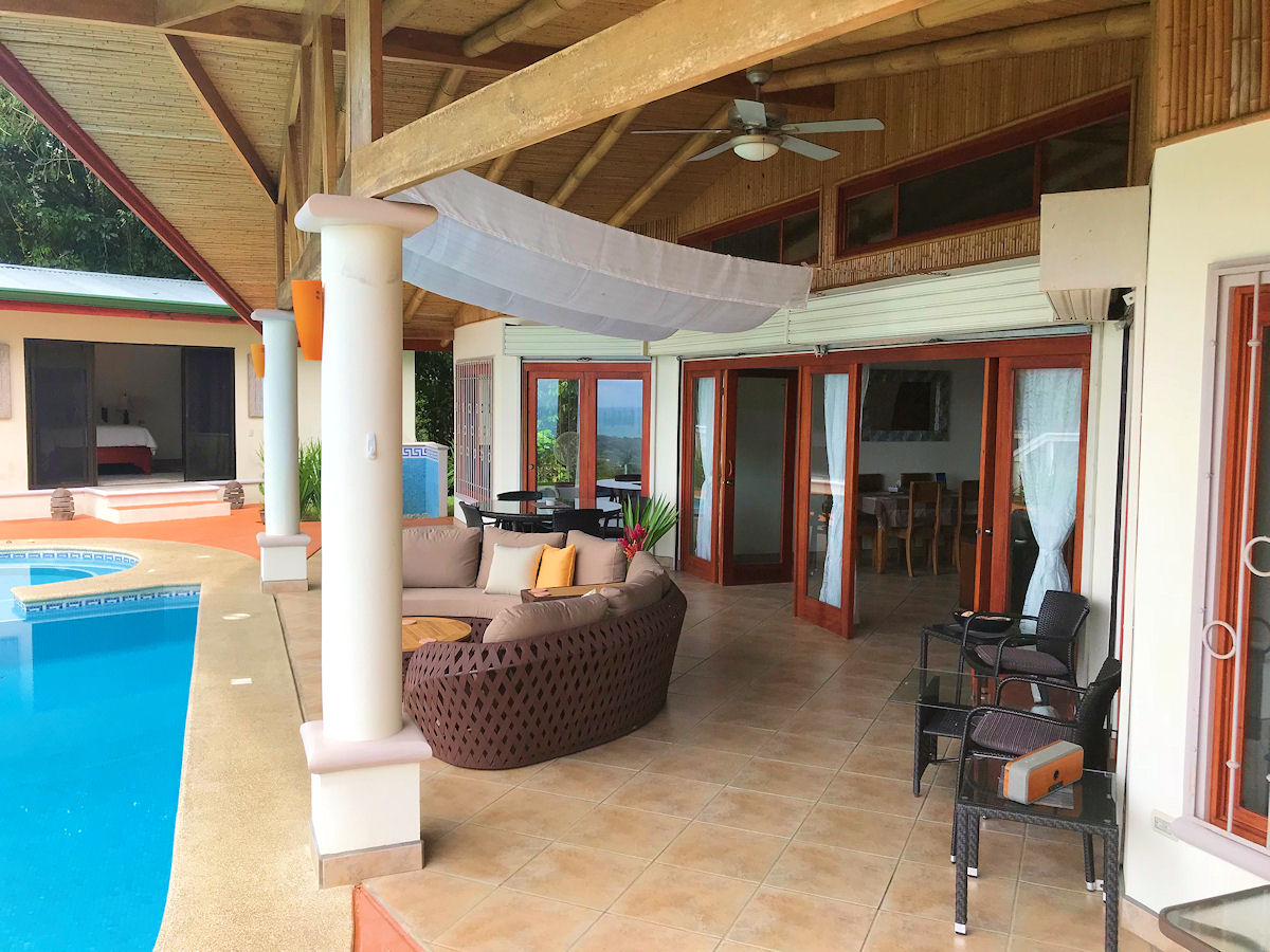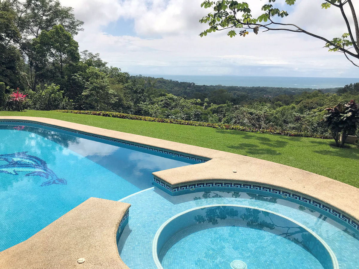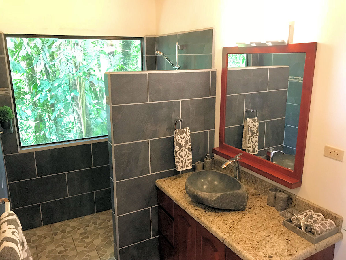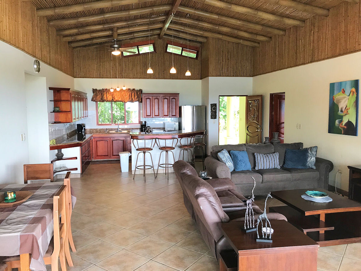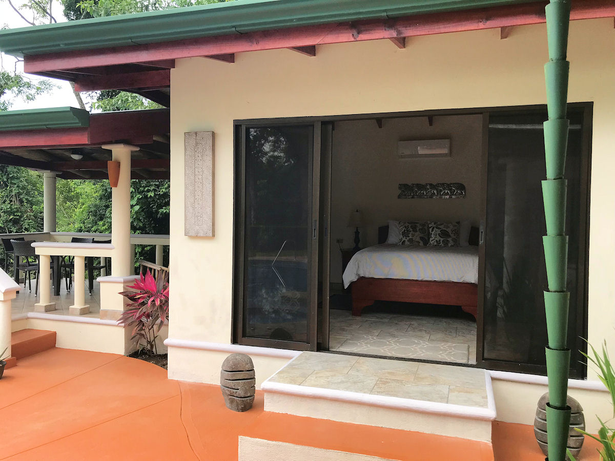 Relaxing on the outdoor terrace you over look the large lap size pool and jacuzzi tub with message jets (does not get hot). Beyond the pool you can gaze out to the Pacific Ocean and famous Whale’s Tail formation while surrounded by lush vegetation and wild life. The entire property and pool area are frequented consistently by Howler Monkeys and White-Face Monkeys, as well as, Sloths, Toucans, Parrots, and more!