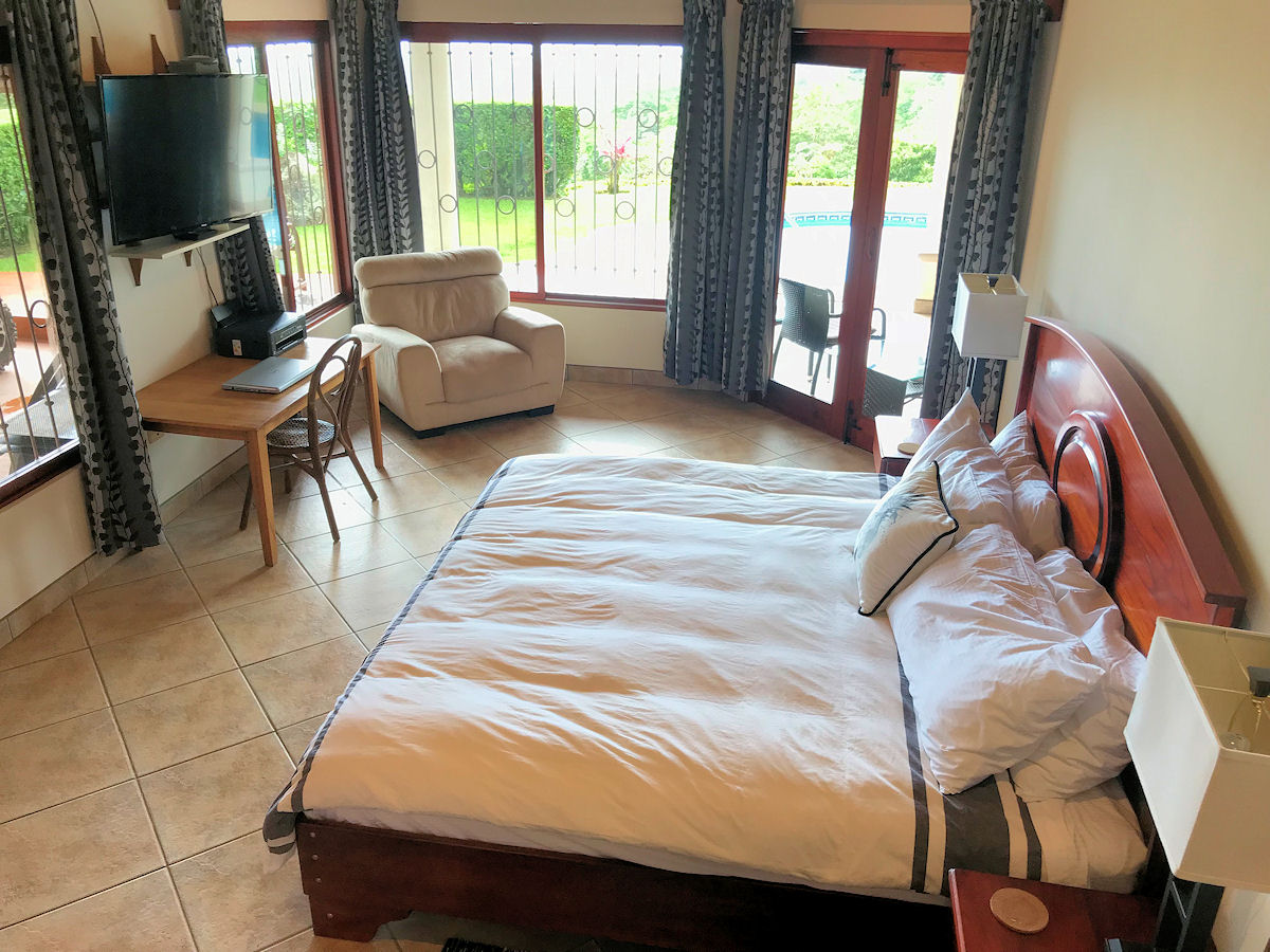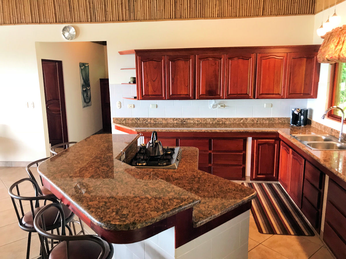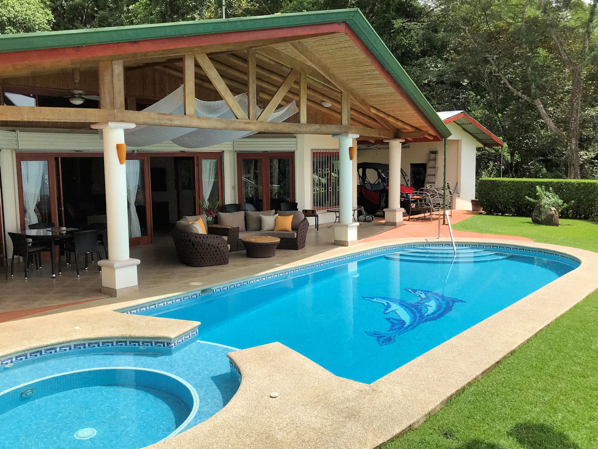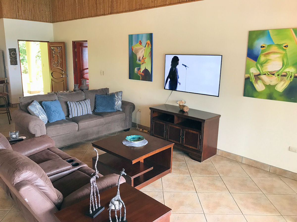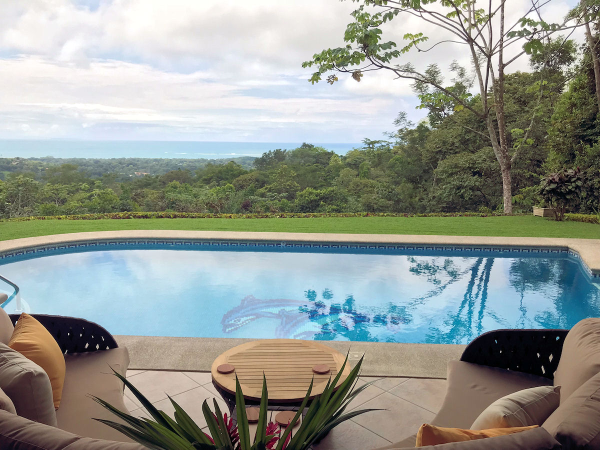 Relaxing on the outdoor terrace you over look the large lap size pool and jacuzzi tub with message jets (does not get hot). Beyond the pool you can gaze out to the Pacific Ocean and famous Whale’s Tail formation while surrounded by lush vegetation and wild life. The entire property and pool area are frequented consistently by Howler Monkeys and White-Face Monkeys, as well as, Sloths, Toucans, Parrots, and more!