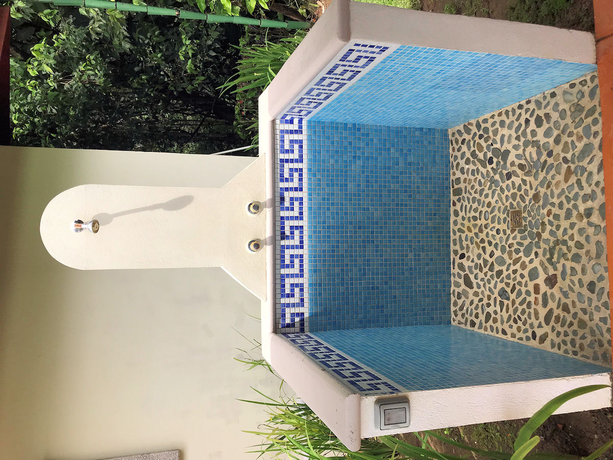 The guest bungalow with its own covered terrace is next to the pool and offers an ample bedroom and full bathroom. There is also an outdoor shower near the pool deck for rinsing off from the beach. Your guests will enjoy their privacy in style; the only issue is they may never leave!