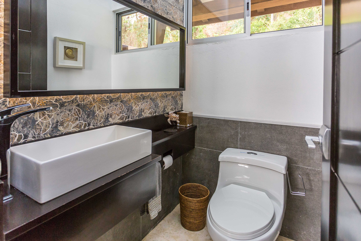 Experience the jaw-dropping Pacific ocean view from this beautiful home with sleek modern lines. Treat yourself to this home with high-end furnishings including: coralina floors throughout, stone vessels in bathrooms, custom made furniture, stainless steel appliances, and high-quality sliding glass doors. Enjoy the ample outdoor living space and Infinity pool. Bask in this nature lover's paradise with the many species of birds, and howler monkeys, who make regular appearances in the tropical forest and flowering garden. Casa Toji is good for the soul.