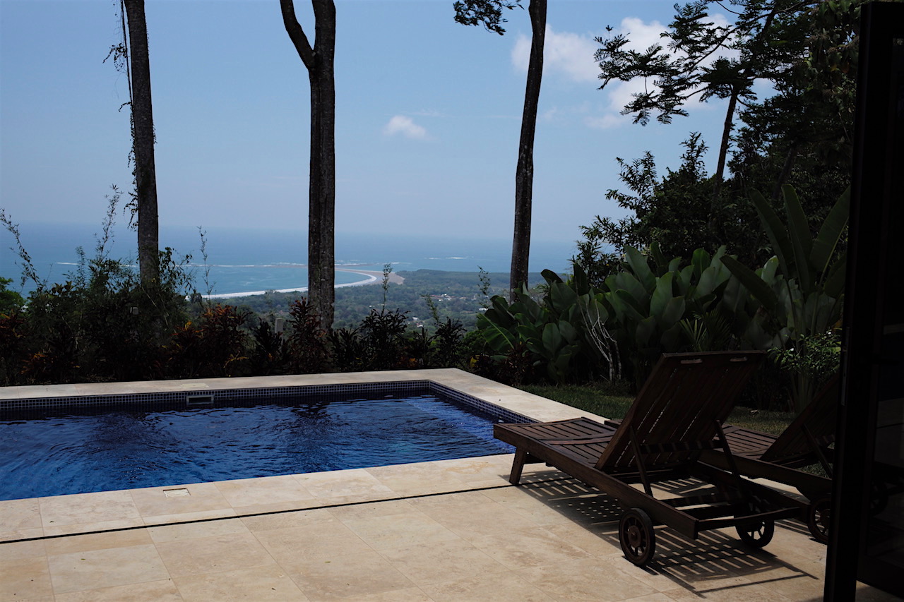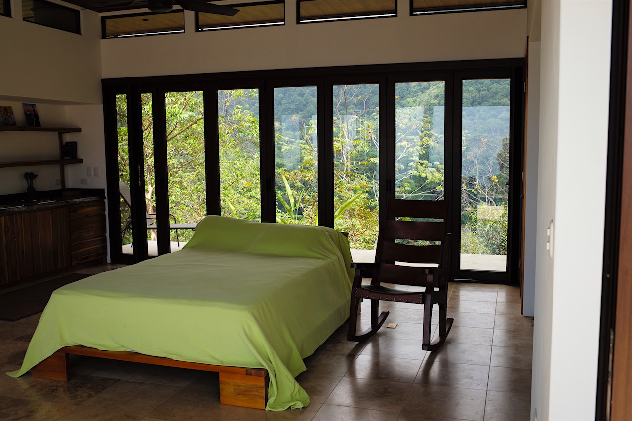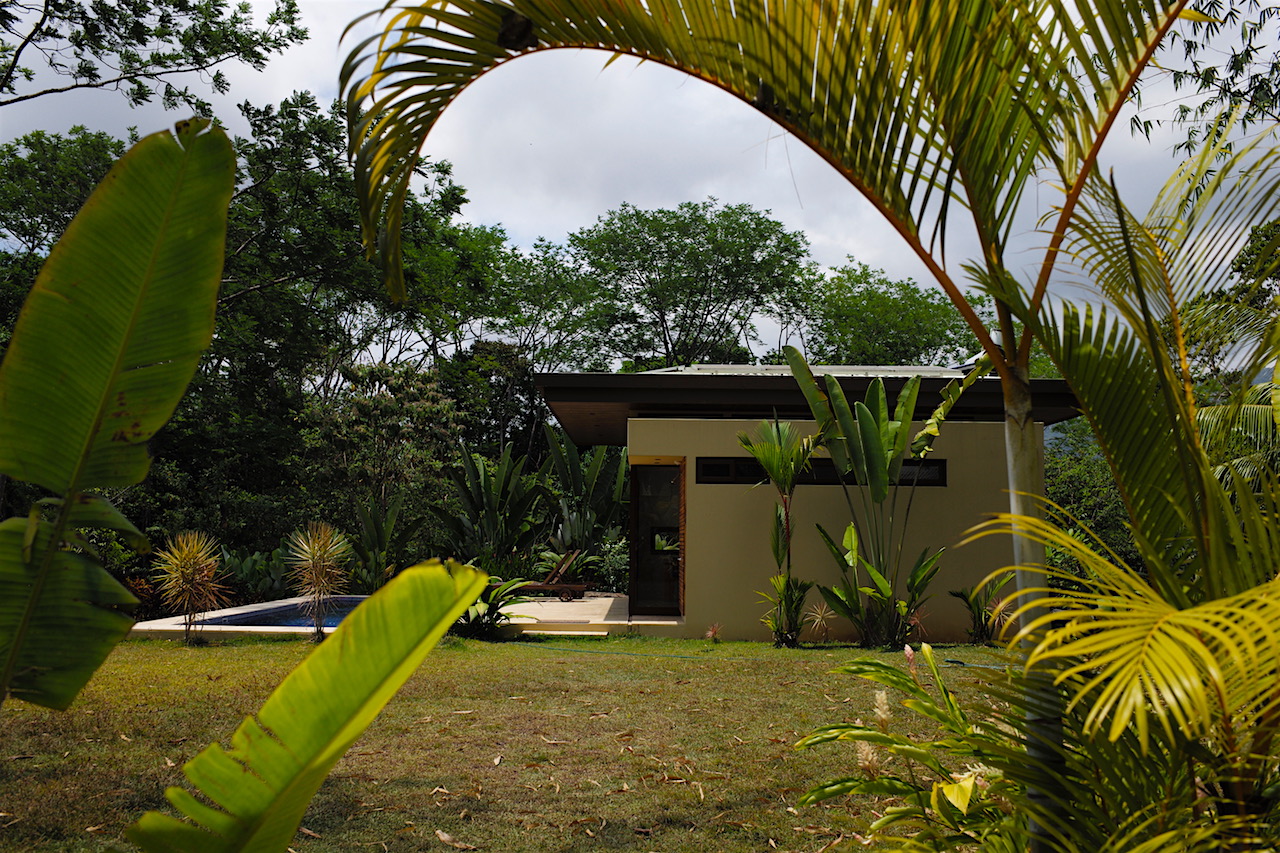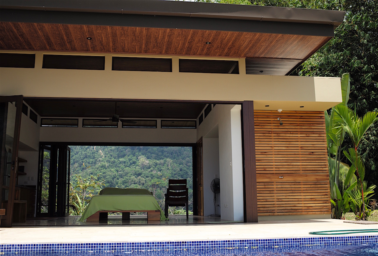 The property is 1.5 Ha continuous from the LaUnion road to the Ballena River below. At the top of the property on a flat knoll sits the newly constructed single bedroom casita and pool. The design features accordion windows at both front and back walls allowing the home open into a covered breezeway. The home maximizes comfort levels and fully incorporating inside/outside living with accordion screening for blocking insects attracted by the lights at night time. From the bed located in the center of the room you having dramatic sunsets over the Whales Tale and each morning watch the sunrise over the mountain peaks from behind the casita. The deluxe casita has a full bath and kitchenette and an outdoor shower for the pool. Around the casita you will find plenty of space to expand and create a larger primary residence or family home The existing casita would be an ideal master suite while adding a structure with a full size kitchen and family room and if desired additional bed/baths.