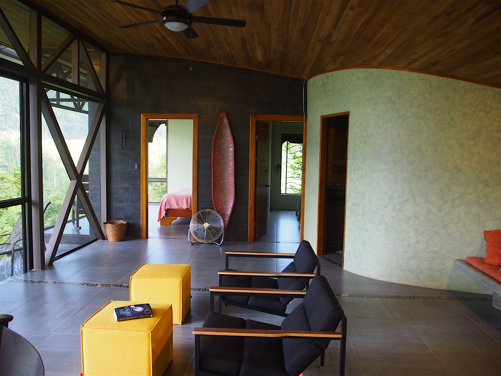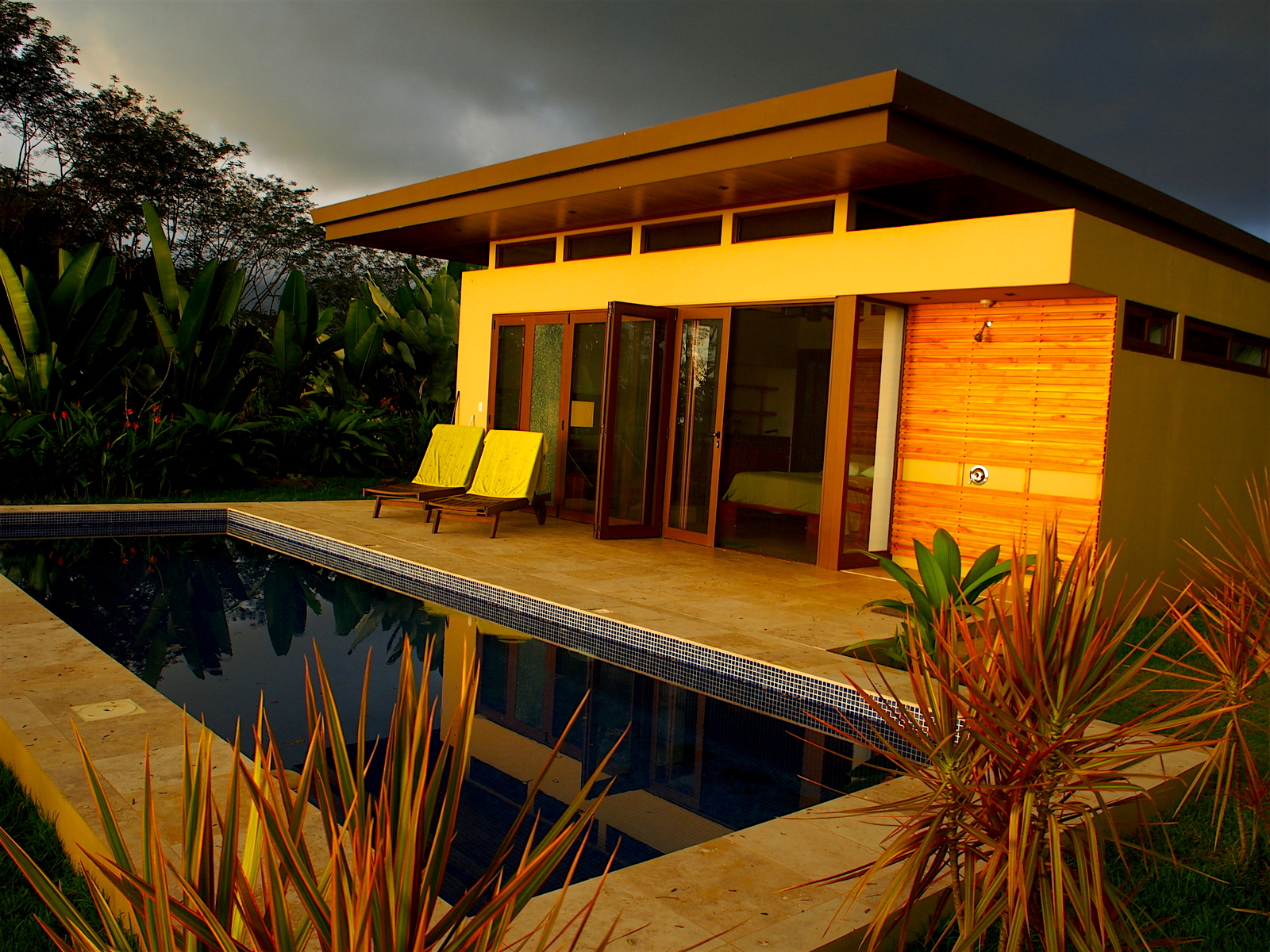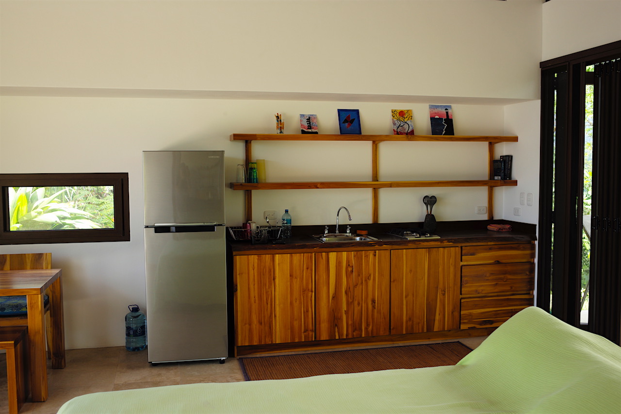 The property is 1.5 Ha continuous from the LaUnion road to the Ballena River below. At the top of the property on a flat knoll sits the newly constructed single bedroom casita and pool. The design features accordion windows at both front and back walls allowing the home open into a covered breezeway. The home maximizes comfort levels and fully incorporating inside/outside living with accordion screening for blocking insects attracted by the lights at night time. From the bed located in the center of the room you having dramatic sunsets over the Whales Tale and each morning watch the sunrise over the mountain peaks from behind the casita. The deluxe casita has a full bath and kitchenette and an outdoor shower for the pool. Around the casita you will find plenty of space to expand and create a larger primary residence or family home The existing casita would be an ideal master suite while adding a structure with a full size kitchen and family room and if desired additional bed/baths.