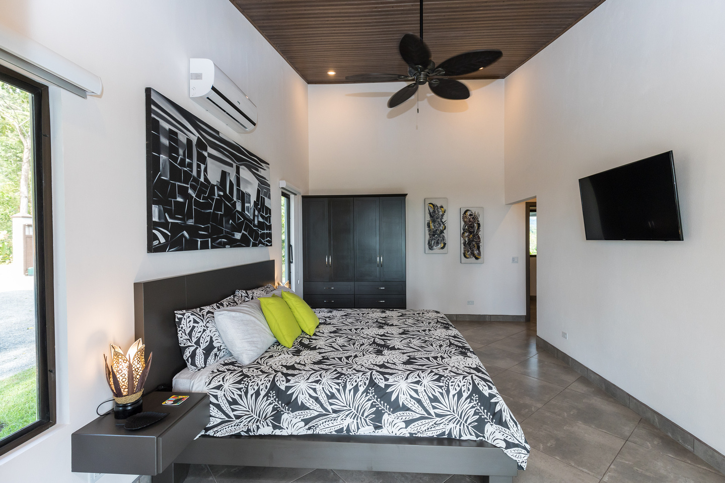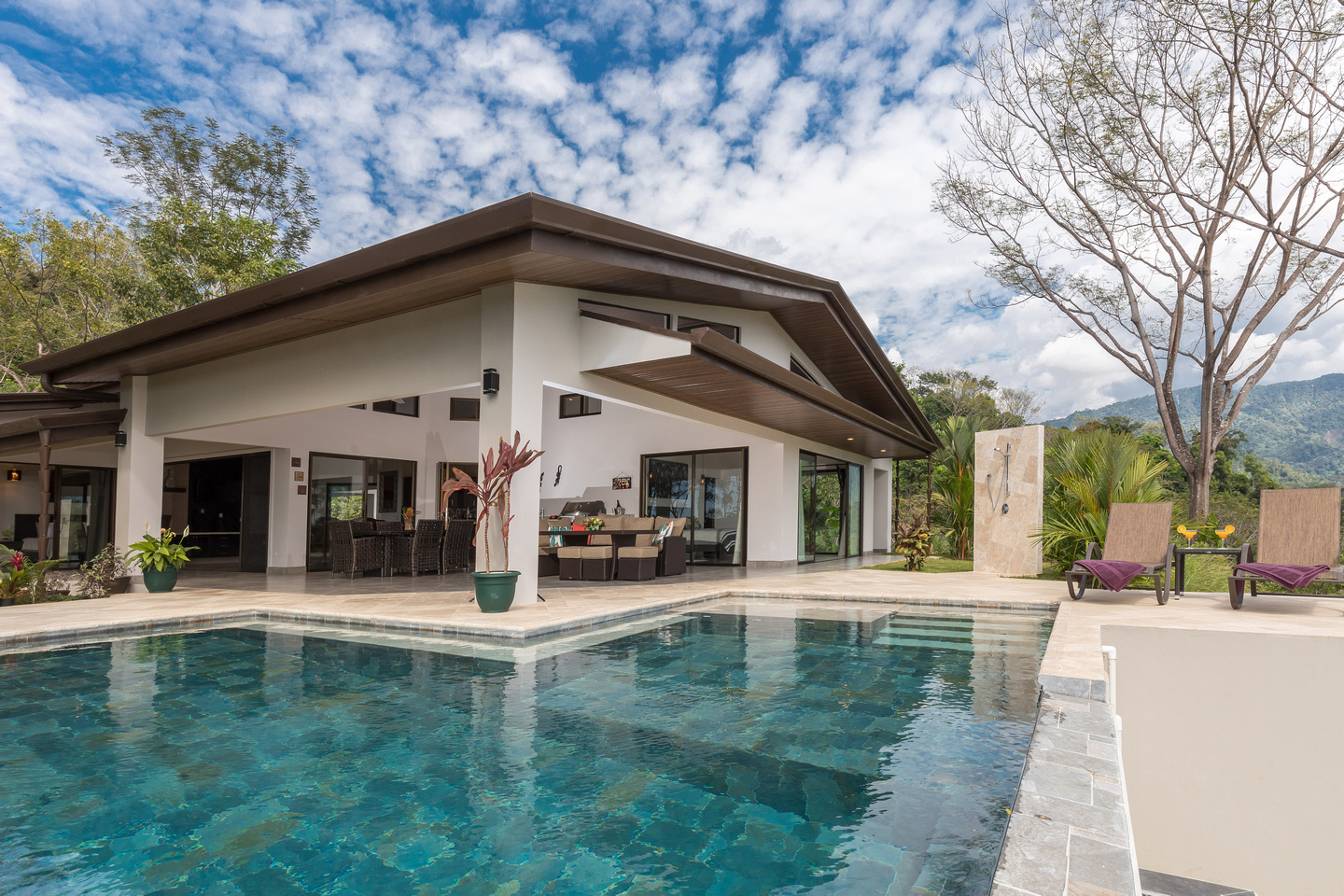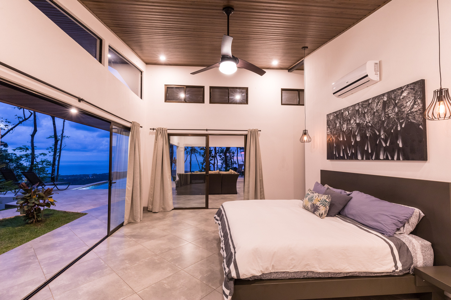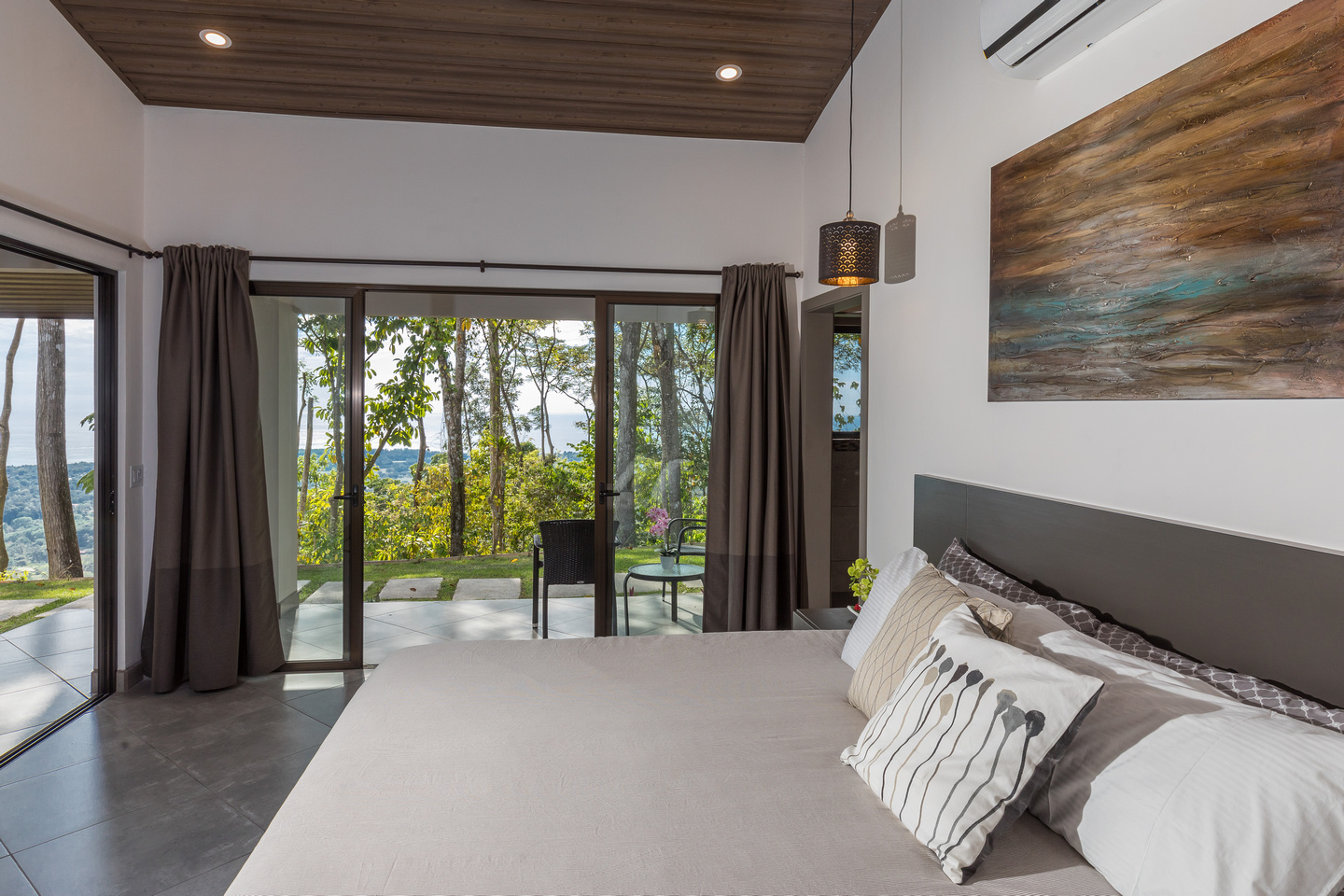 The third bedroom we’ll call the “master-master” and it is one of the most unique bedrooms in the Costa Ballena. Views from both sides of the room with direct access out to the pool deck and views towards the famous Whale’s Tail. And on the other side incredible mountain views that can also be enjoyed from a dual outdoor shower off the oversized master bathroom with its own walk-in closet.