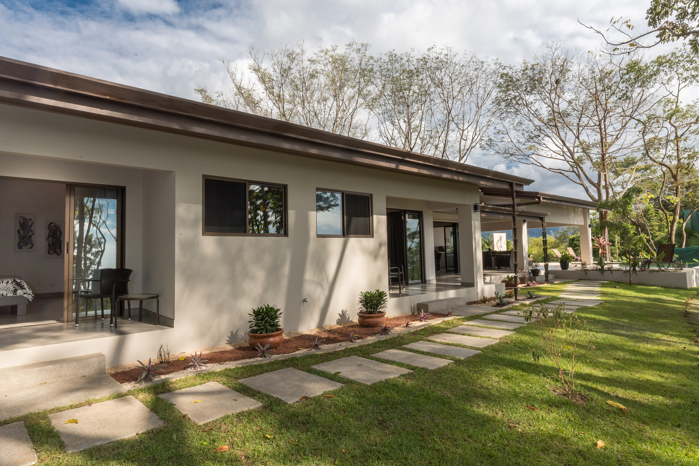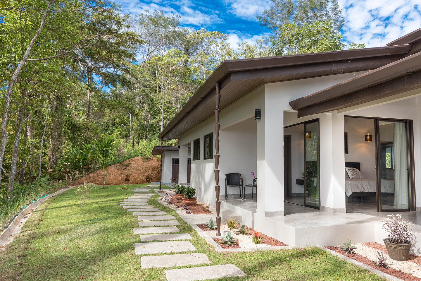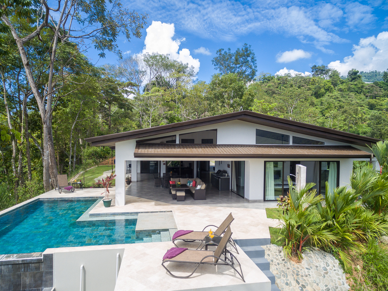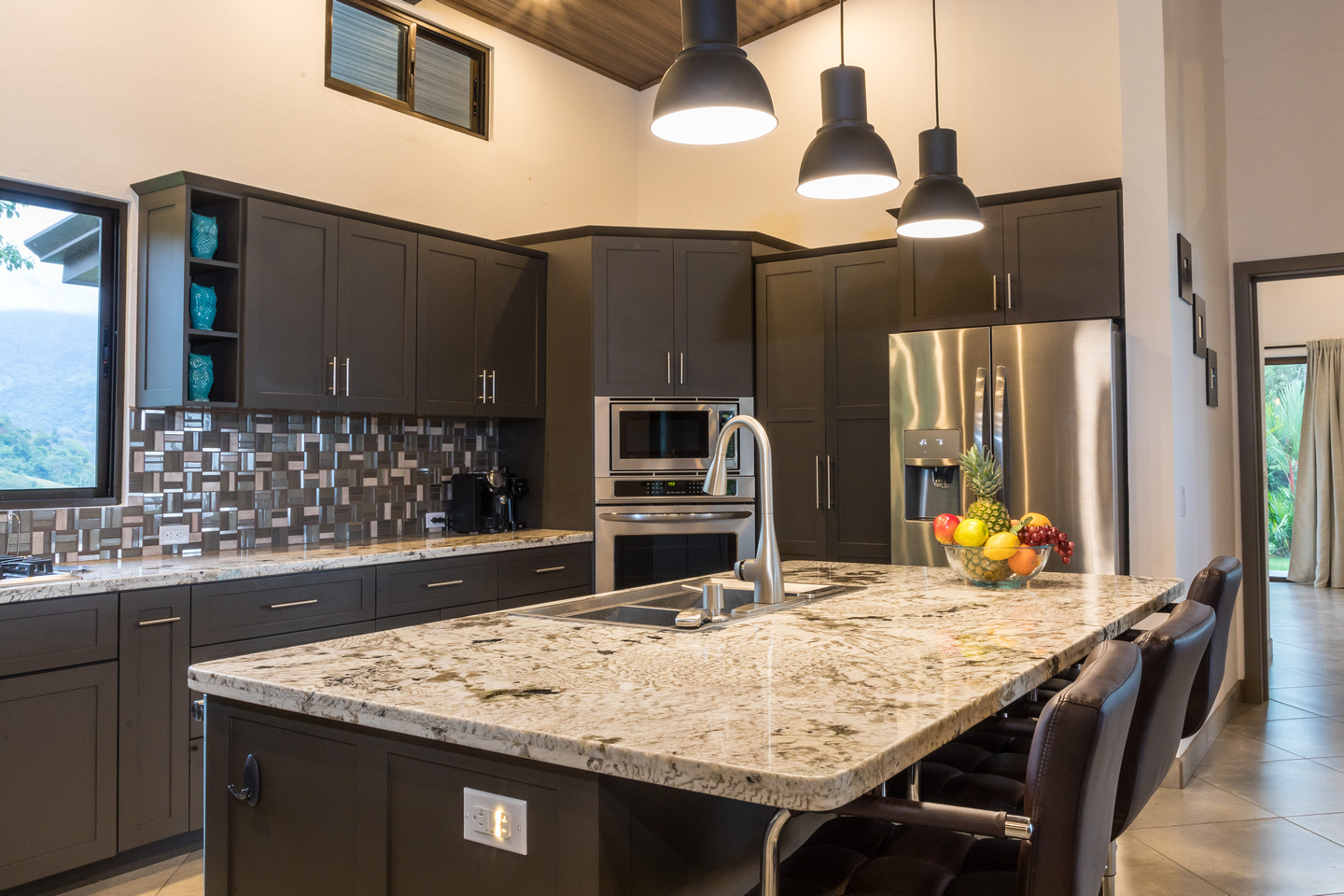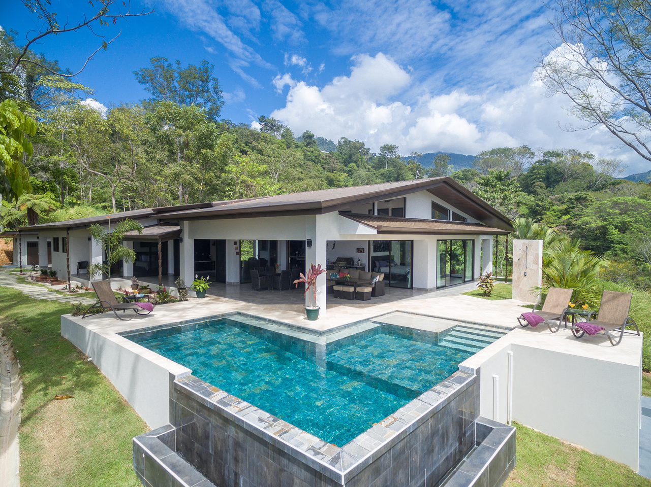 The third bedroom we’ll call the “master-master” and it is one of the most unique bedrooms in the Costa Ballena. Views from both sides of the room with direct access out to the pool deck and views towards the famous Whale’s Tail. And on the other side incredible mountain views that can also be enjoyed from a dual outdoor shower off the oversized master bathroom with its own walk-in closet.