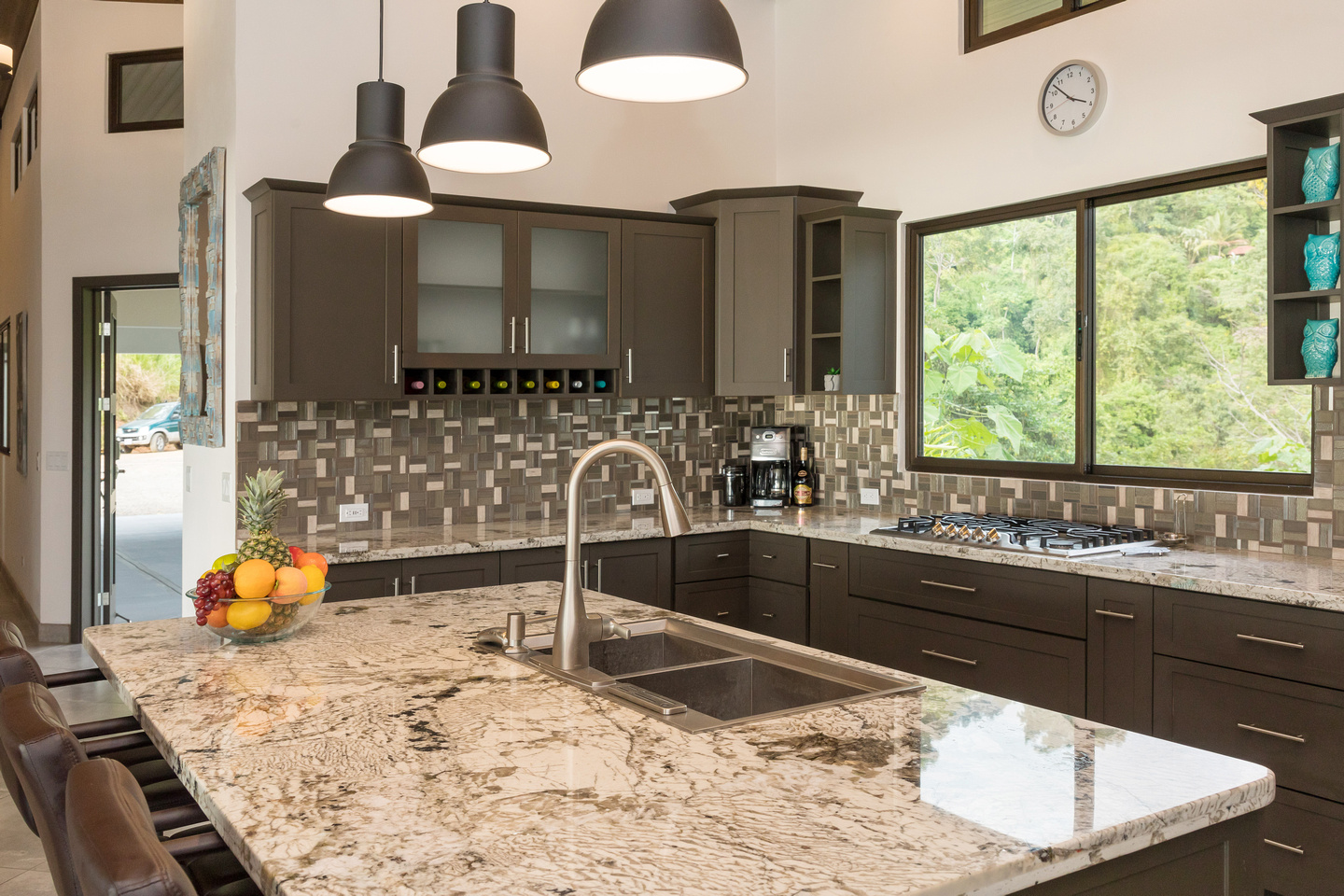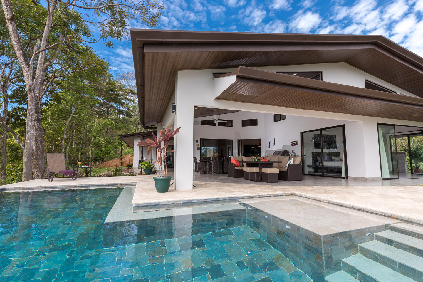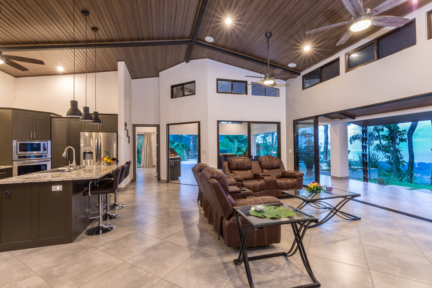 As you enter the home into the open floor plan living room and kitchen you are drawn to the outdoor living room with expansive ocean views over the marble tiled infinity edge pool. This area is where you will spend most of your time and become your main entertainment area. The outdoor living room is equipped with its own BBQ for grilling the fresh catch of the day as you enjoy some beverages as the sun sets over the Pacific Ocean.