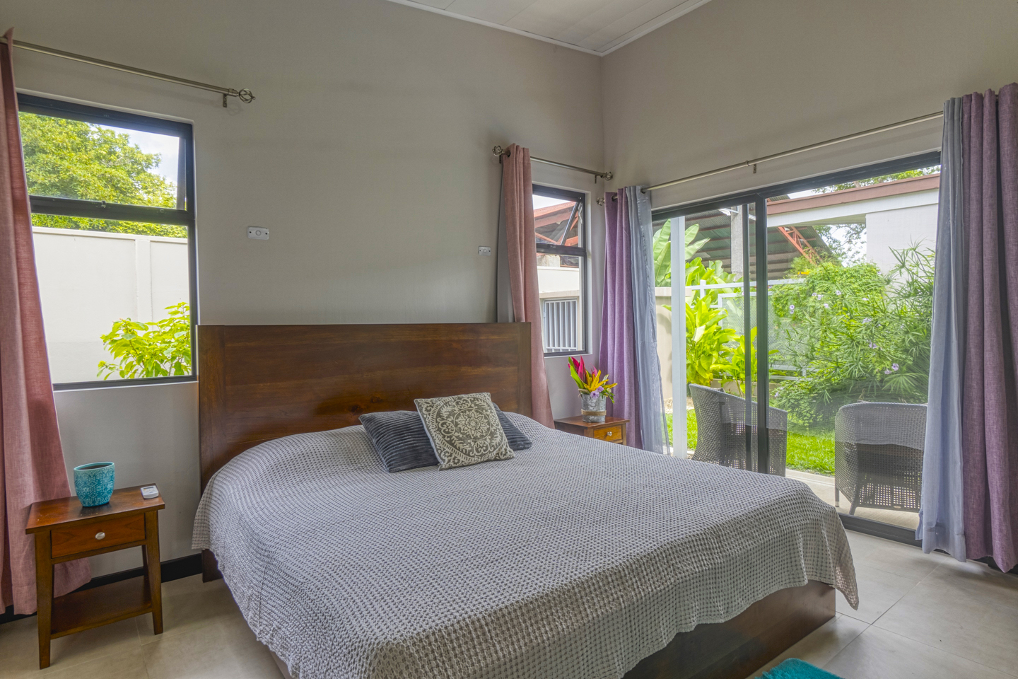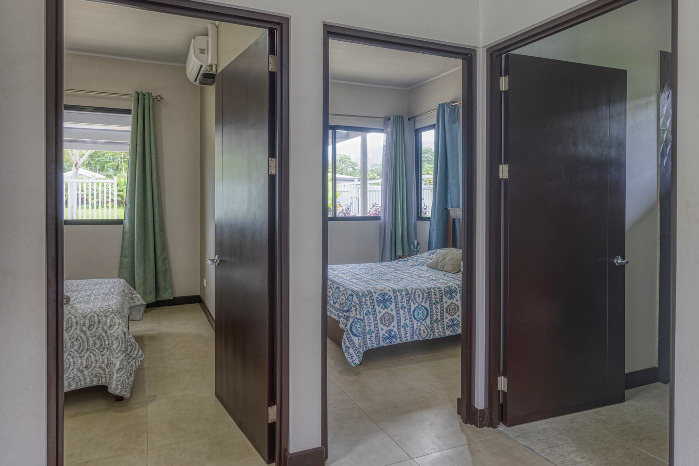 The house features a master bedroom with a king-size bed and its own full bathroom and closet; there are also 2 more bedrooms, each one with a queen-size bed and a shared bathroom. There are AC units in all the rooms!