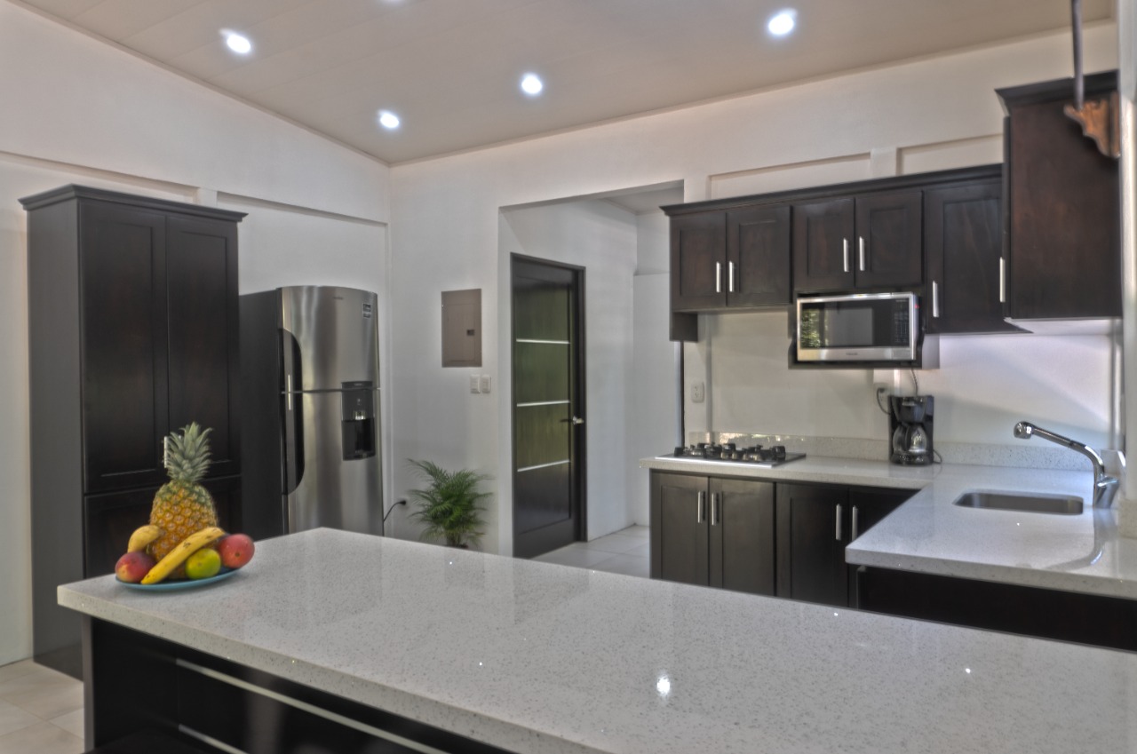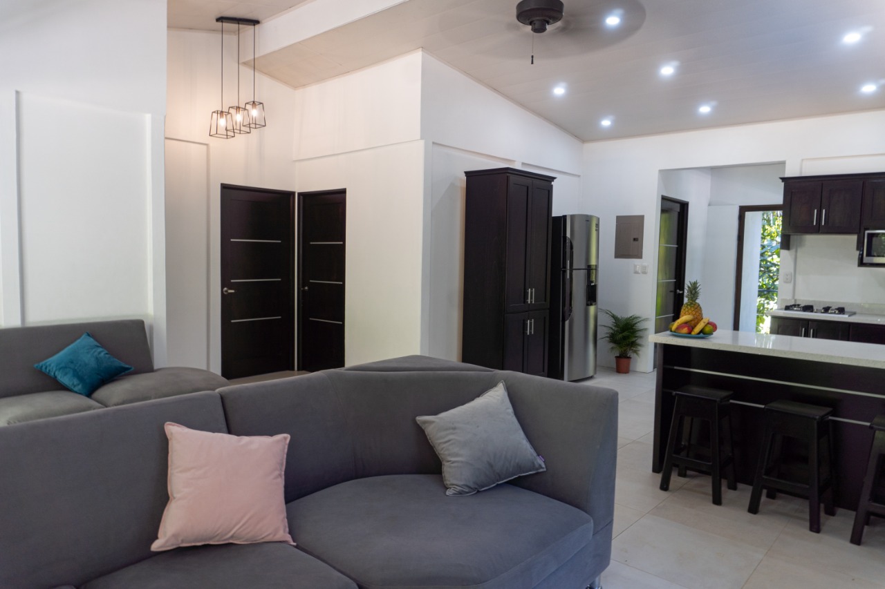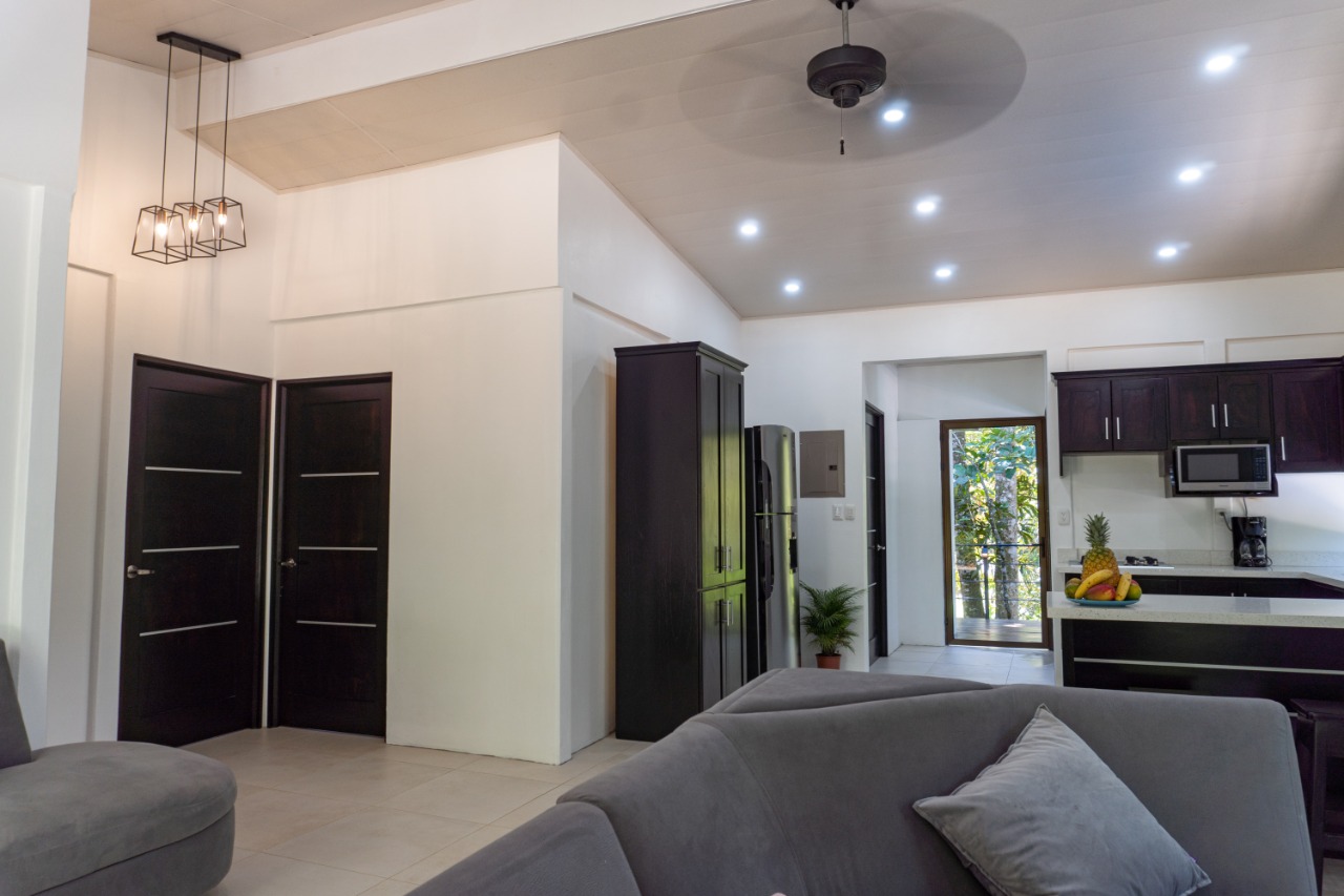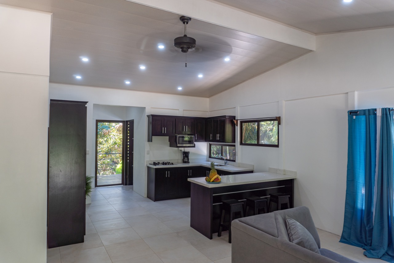 Entering through the front door you will appreciate the high ceilings of the great room with an abundance of natural light. The open concept of the kitchen and living areas allows great airflow to release the heat of the day and bring in the cool evening breeze. With a split floor plan, to your right are two lovely bedrooms with shared baths, and down the hall is the well-appointed master suite with ensuite bath and glass doors out to a private balcony sitting in the jungle trees.