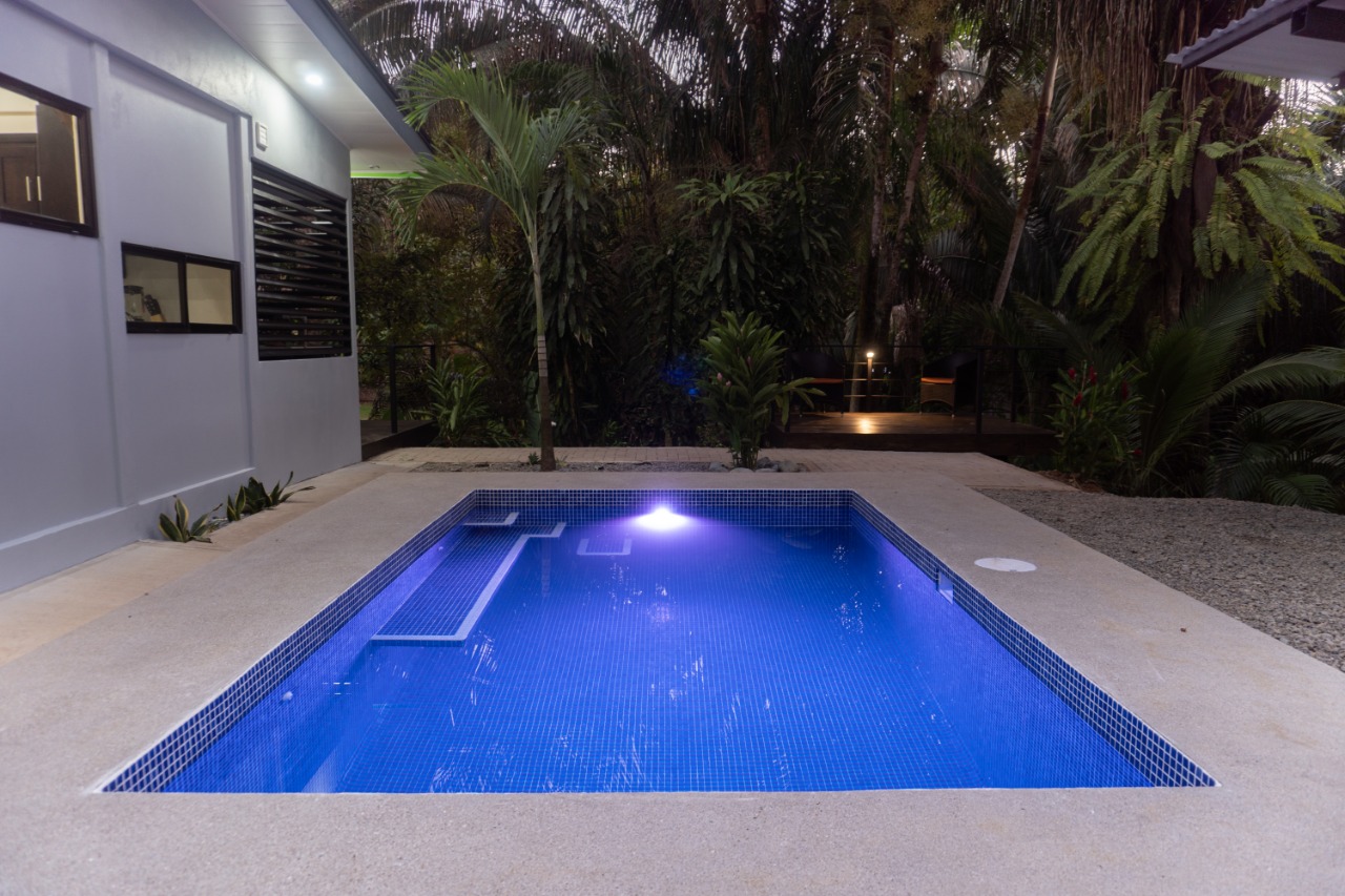 In the southern zone of Costa Rica’s Pacific coast is the village of Playa Hermosa de Osa. Centrally located between the surf town of Dominical and the growing town of Uvita, Playa Hermosa still maintains the charm and character of small-town living, just minutes to the beach. The gate opens into a lovely landscaped courtyard with parking, a pool, and access to the various entertainment spaces - Poolside, a raised deck to enjoy the birds, and a front porch to enjoy with a friend.