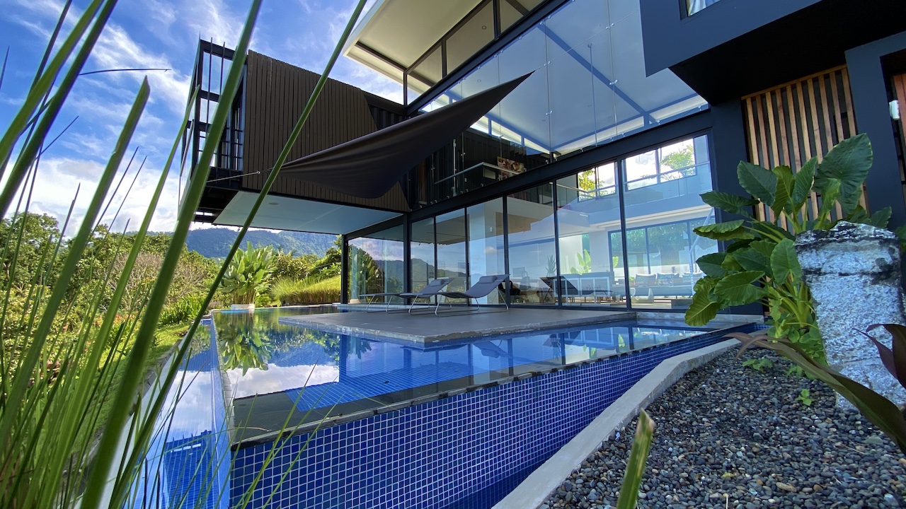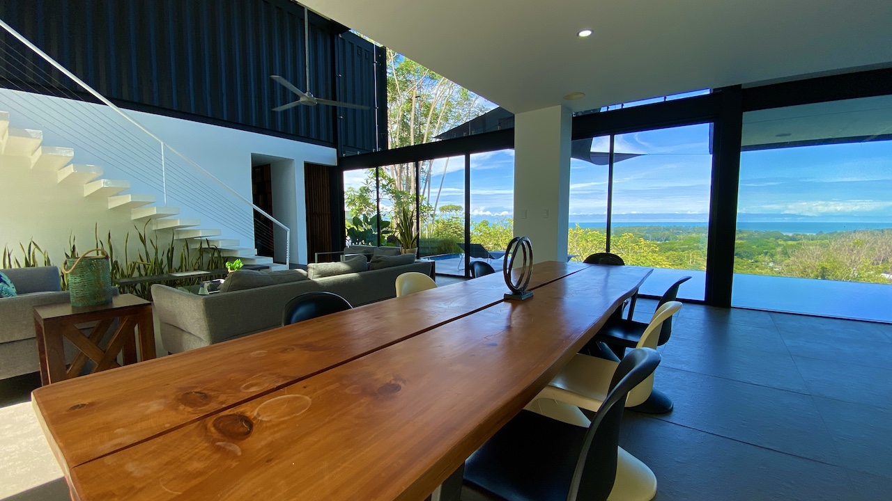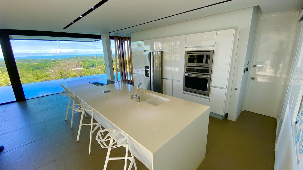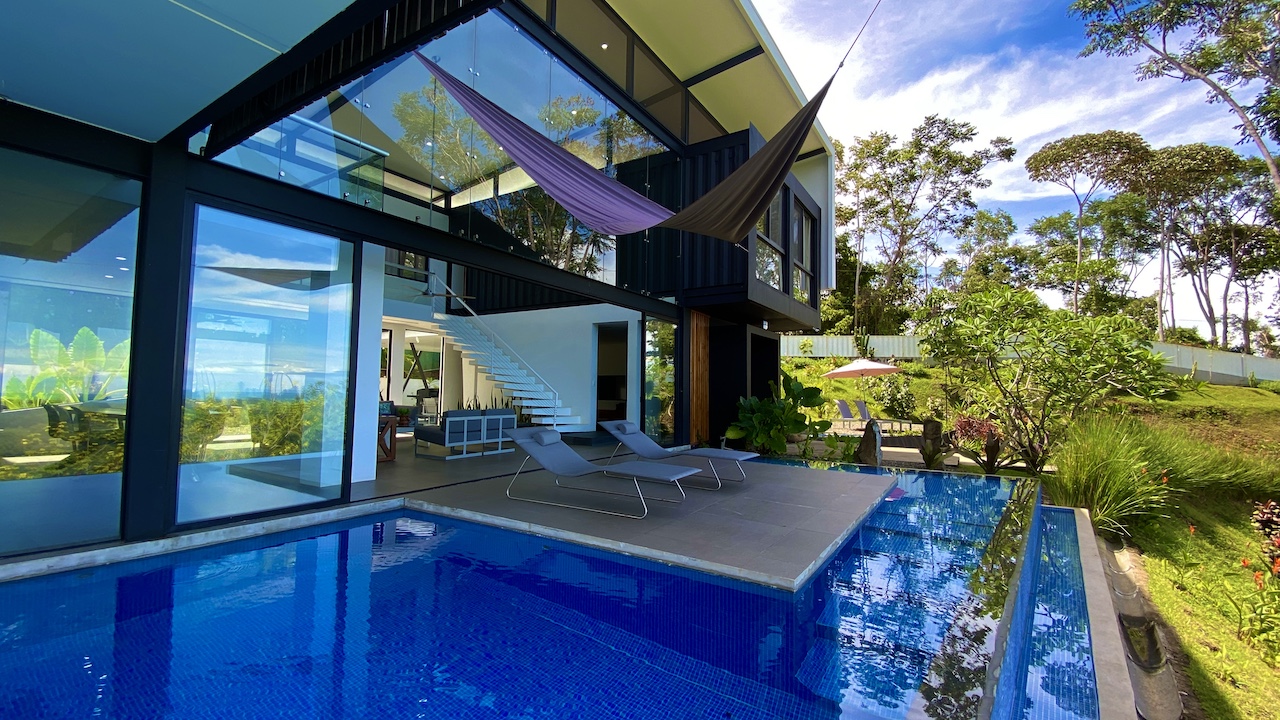 The home is spacious, with a large infinity swimming pool and all-encompassing ocean views. Major renovations on the house wrapped up in 2020 so everything from the furniture to the cutlery feels clean and new. The house features three bedrooms.