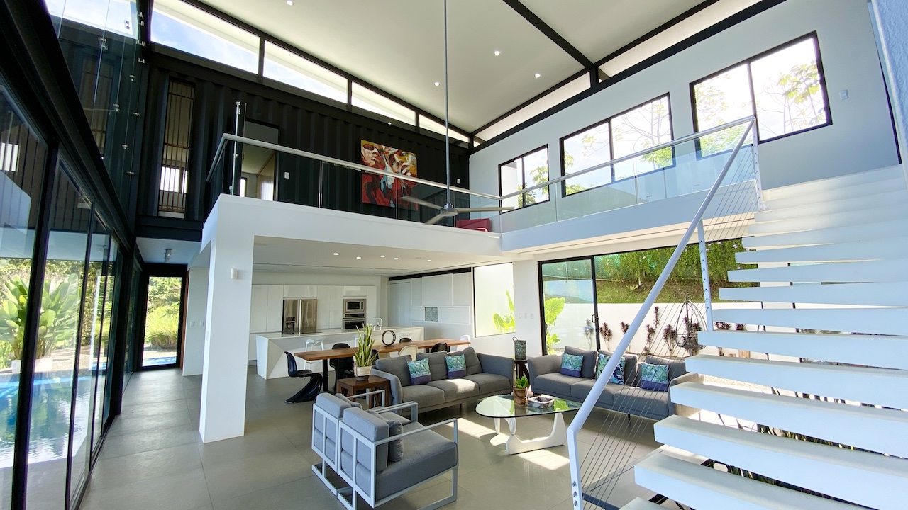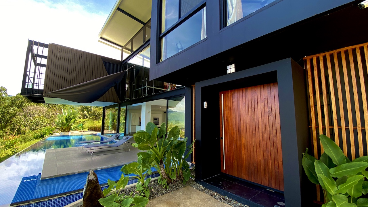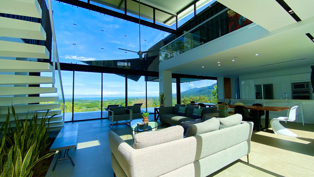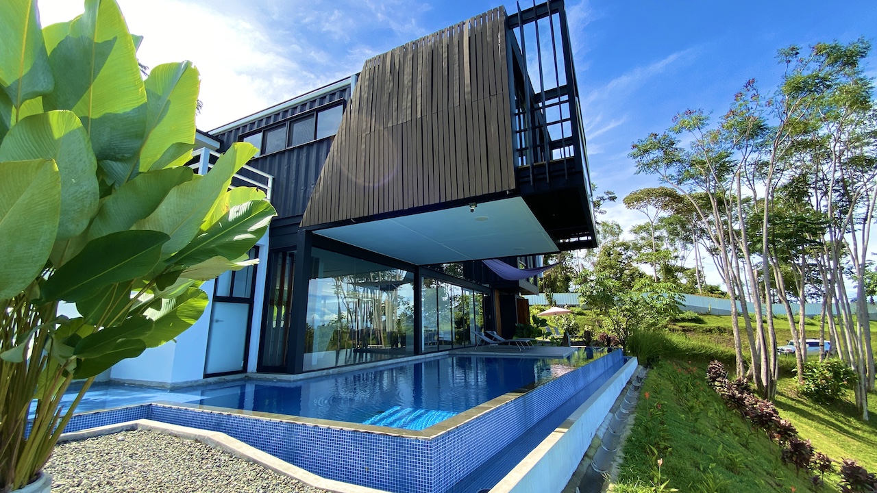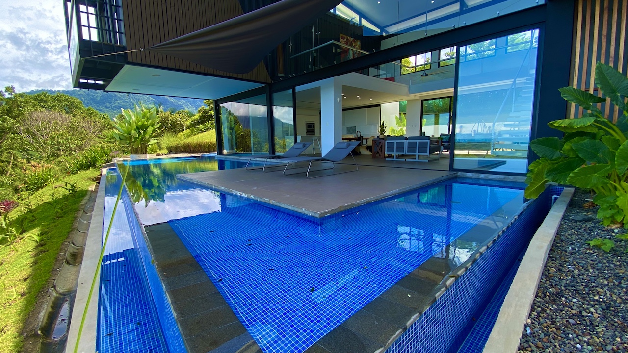 The home is spacious, with a large infinity swimming pool and all-encompassing ocean views. Major renovations on the house wrapped up in 2020 so everything from the furniture to the cutlery feels clean and new. The house features three bedrooms.