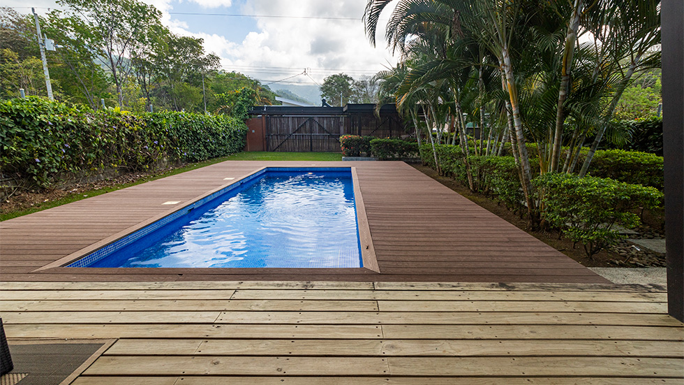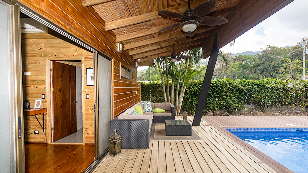 The home is built floor to ceiling with local hardwoods, giving it a sleek and modern, yet warm and natural feel. Beautiful tongue and groove ceilings, and large exposed rafters show off the craftsmanship throughout this special home. The inside has three bedrooms and two and a half bathrooms with a large living room, dining, and kitchen area. Outside is a poolside lounge and a large newly renovated wooden deck where you can sunbathe and take in the mountain views. The house is situated perfectly, allowing the sunshine to warm the pool, while you and your guests enjoy the shade of the lounge area and gaze up at the breathtaking view of the nearby mountains. There is a covered carport and additional uncovered space so you can park up to four vehicles within the automatic gates of this beautiful property.