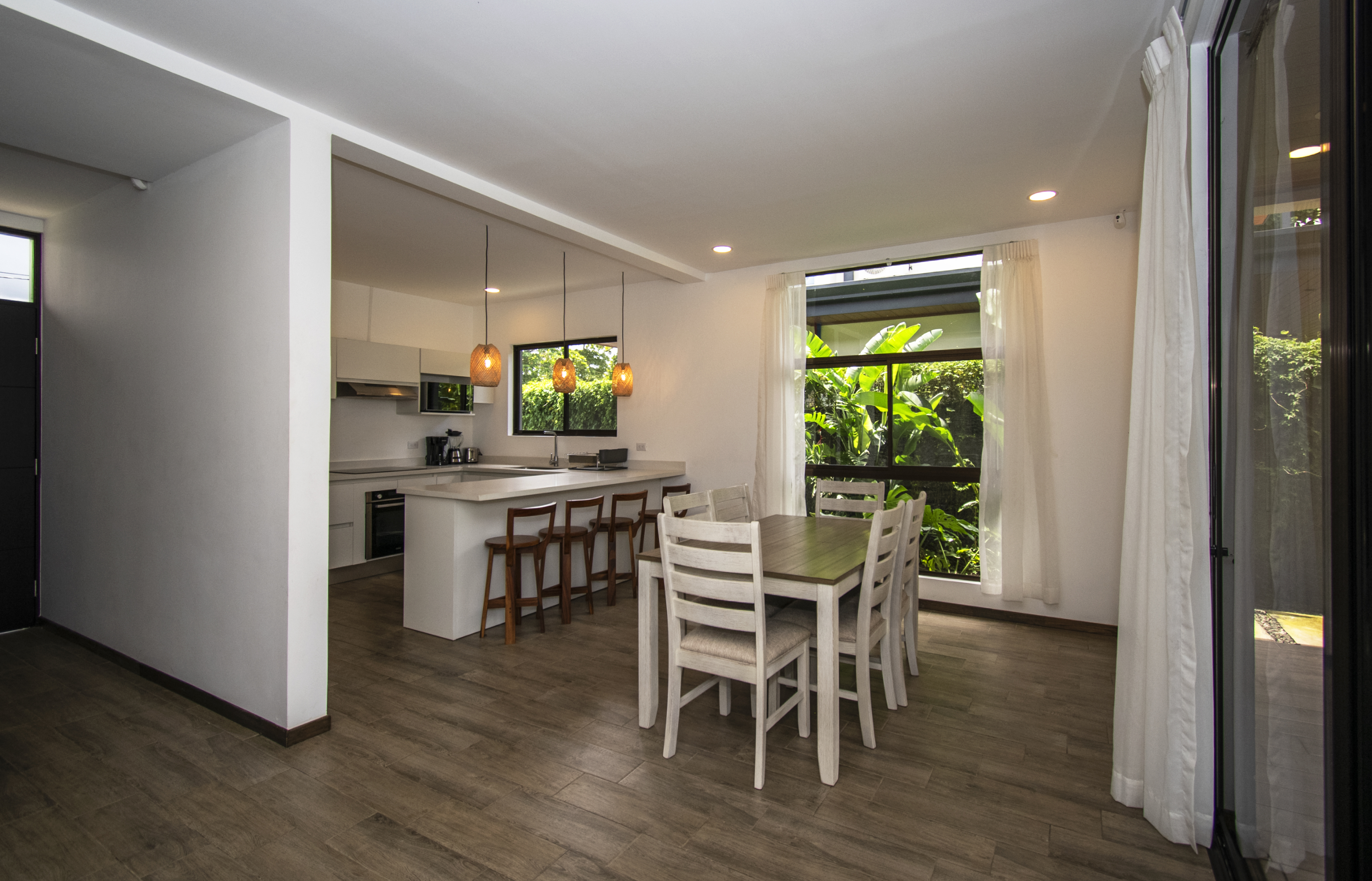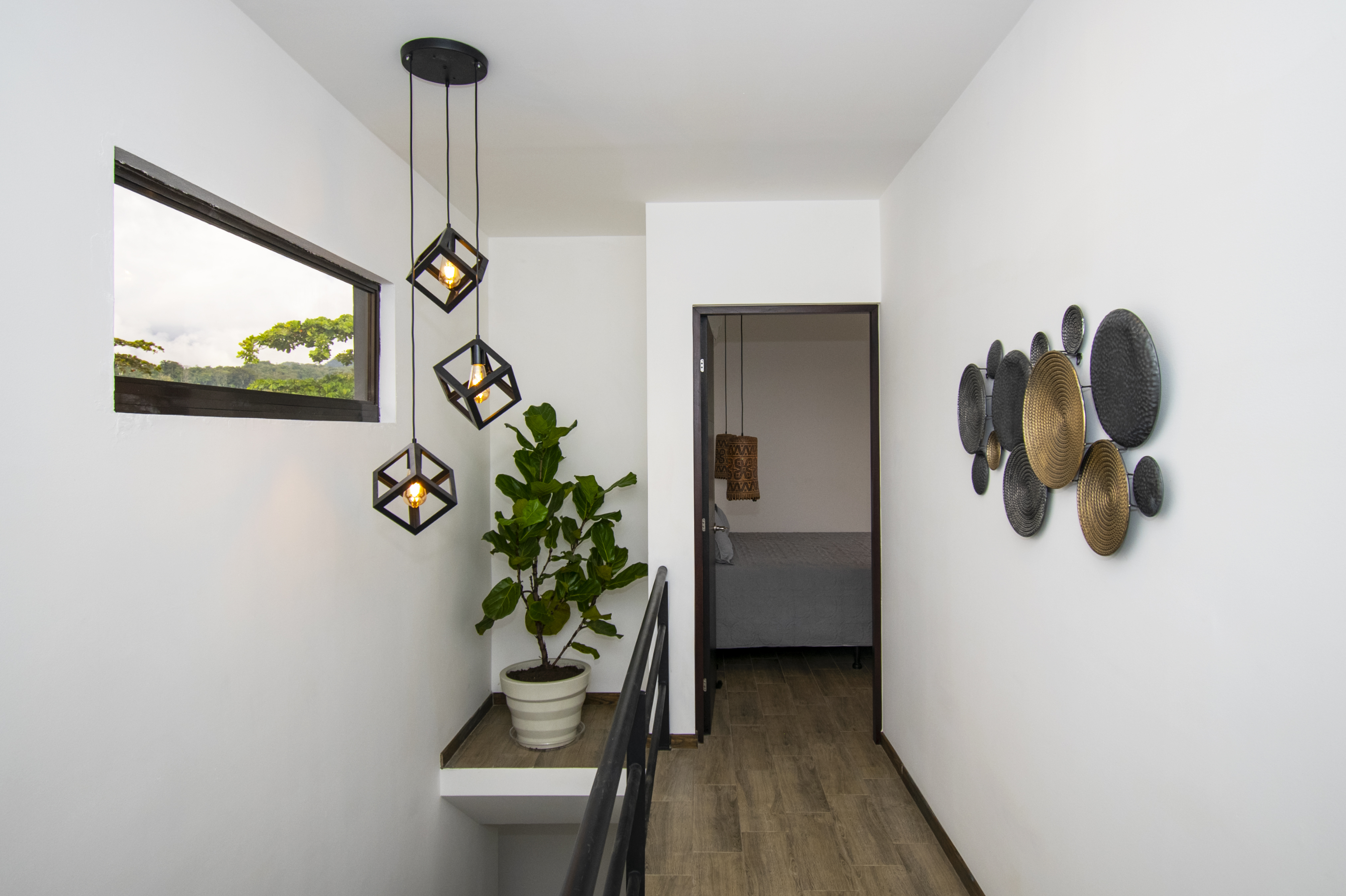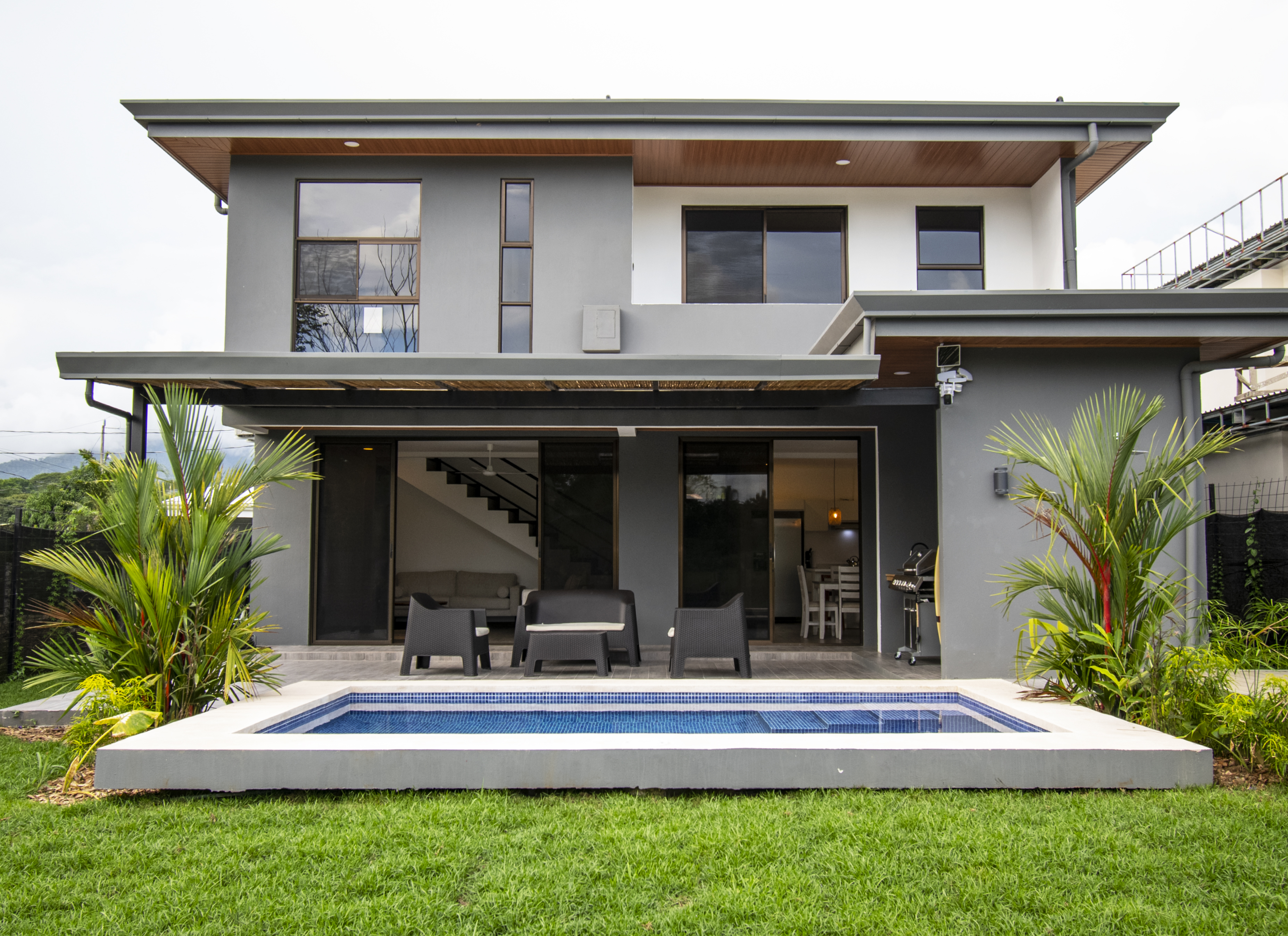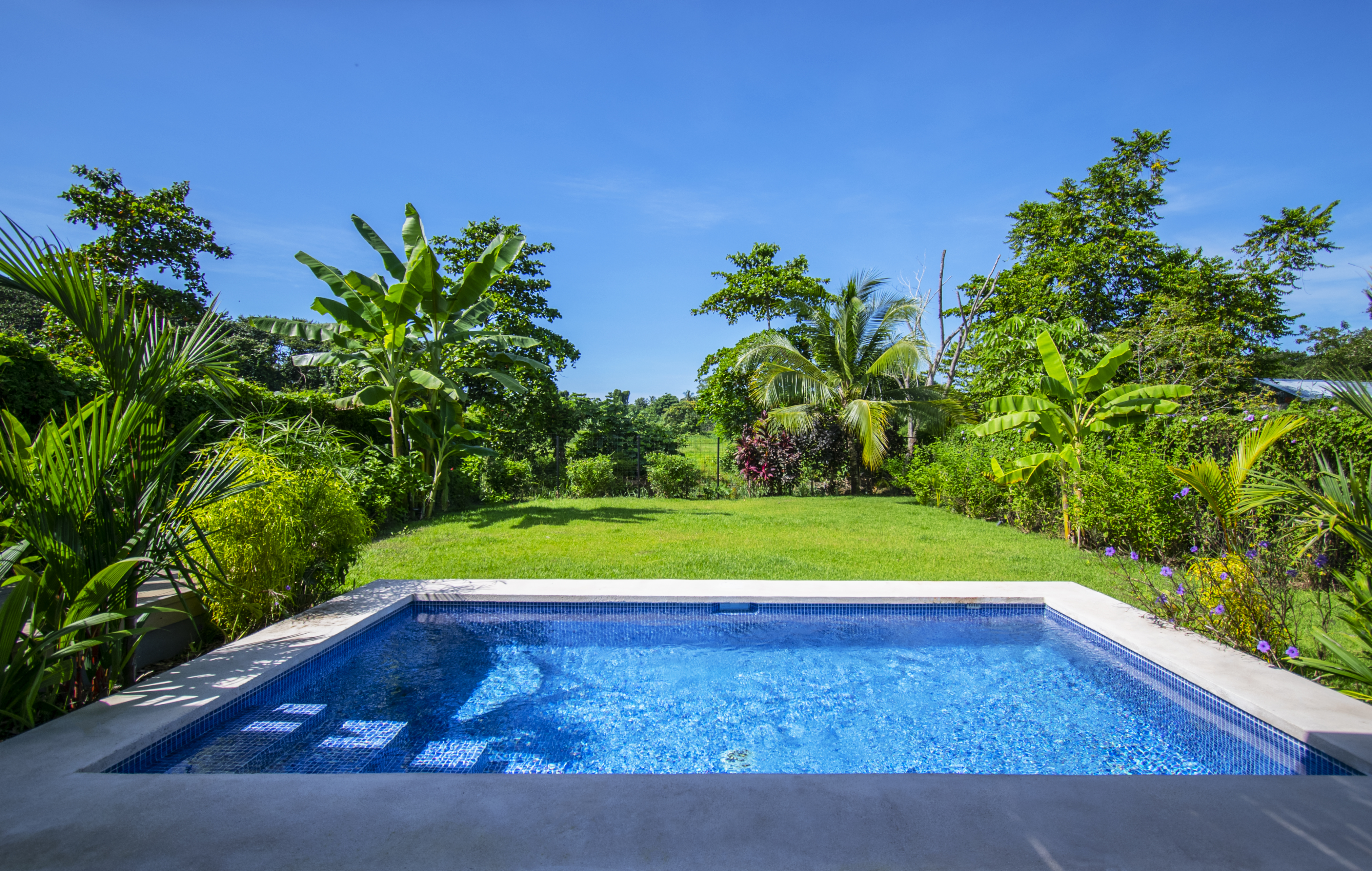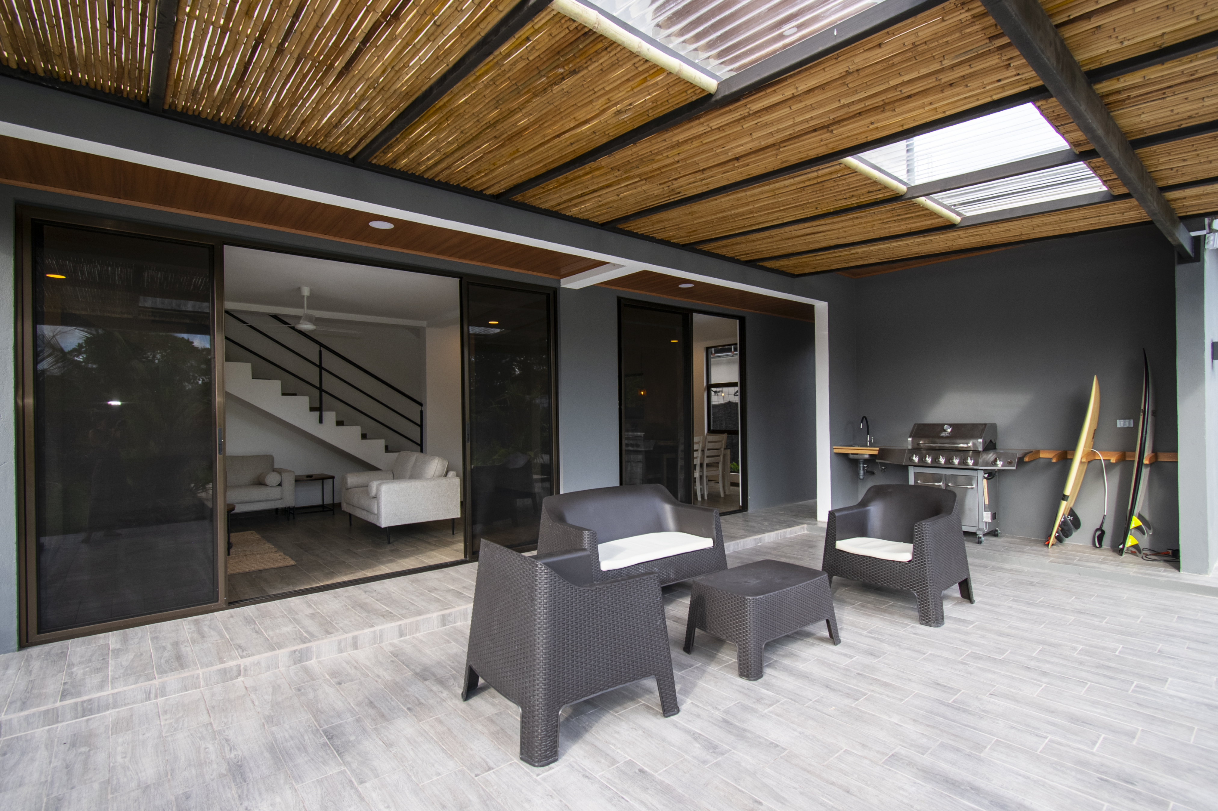 This brand new modern style 3 bedroom home was just built and is located in a great community walking distance to the Whales Tale National Marine Park (Parque Nacional Marino Ballena) which has the famous whales tale and is one of the most spectacular beaches in the world. You can also walk to several restaurants and stores near the entrance to the park. The location makes it a great place to live and also a great place for a vacation rental business. The property also backs onto a large green open space that butts directly up to the beach. The scarlet macaws are seen flying around daily!!!