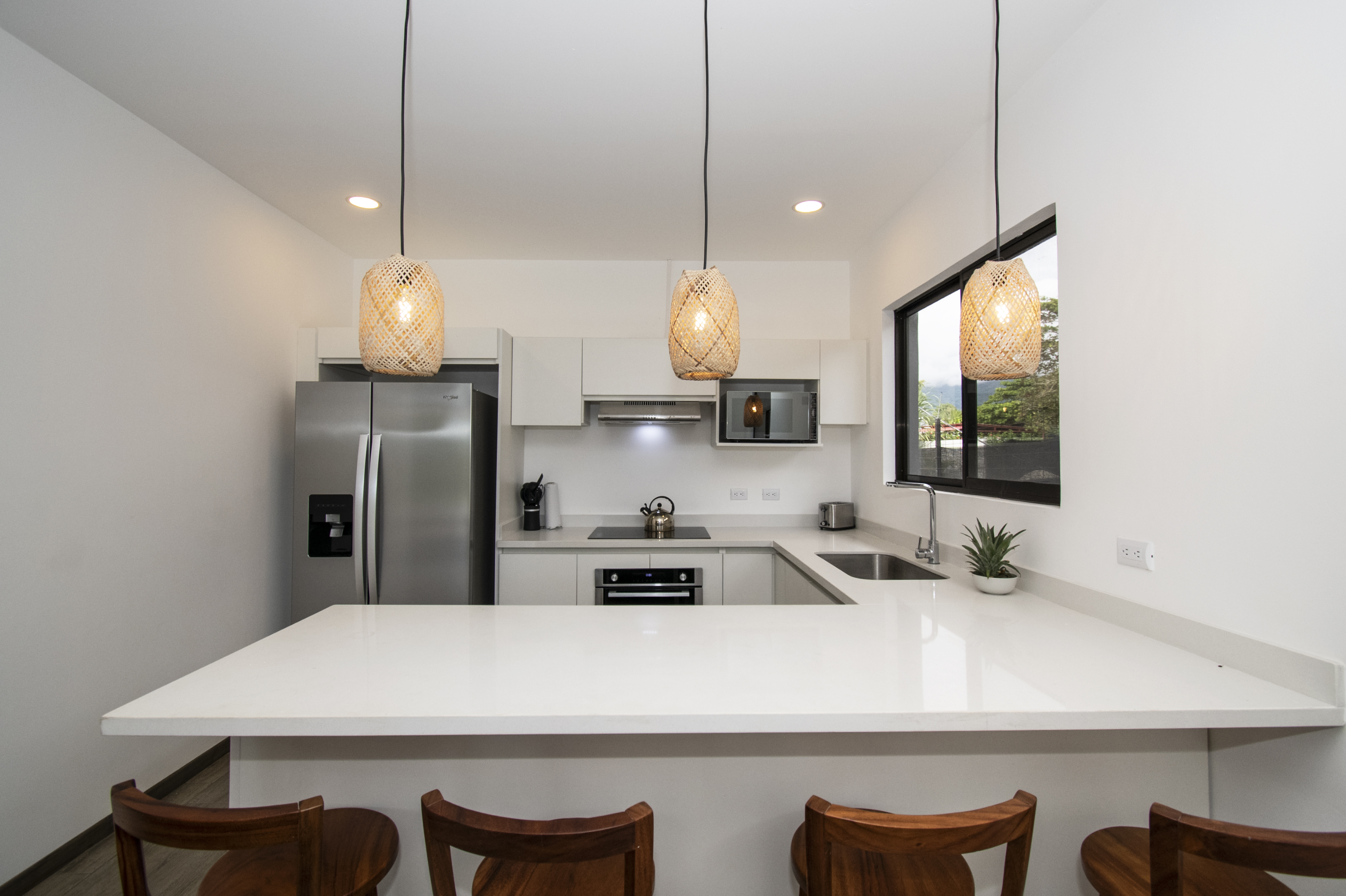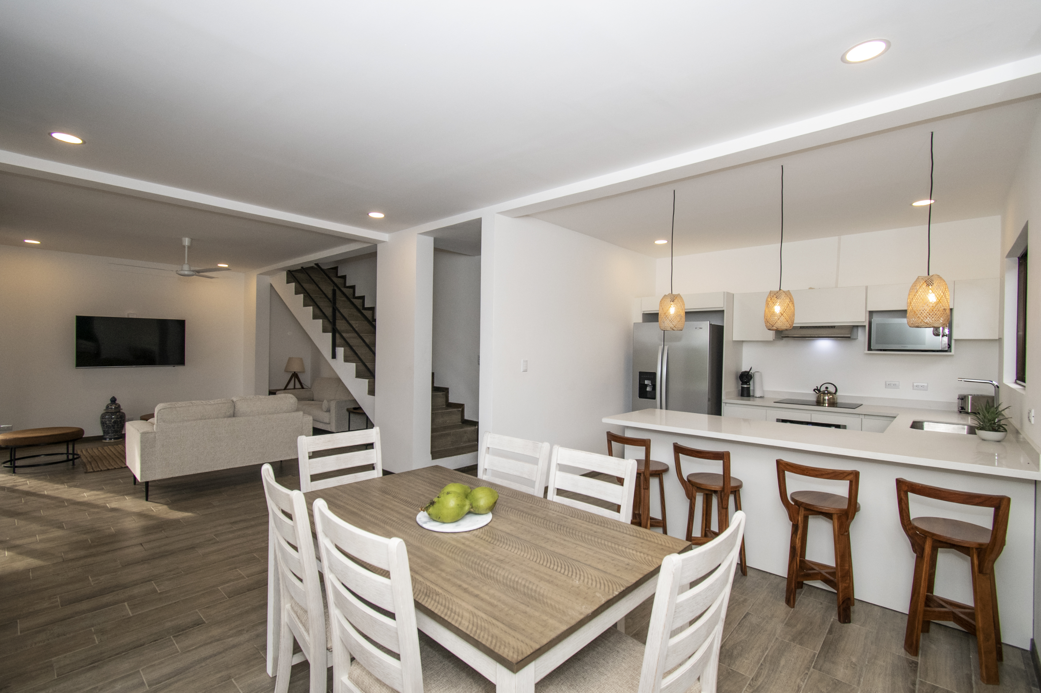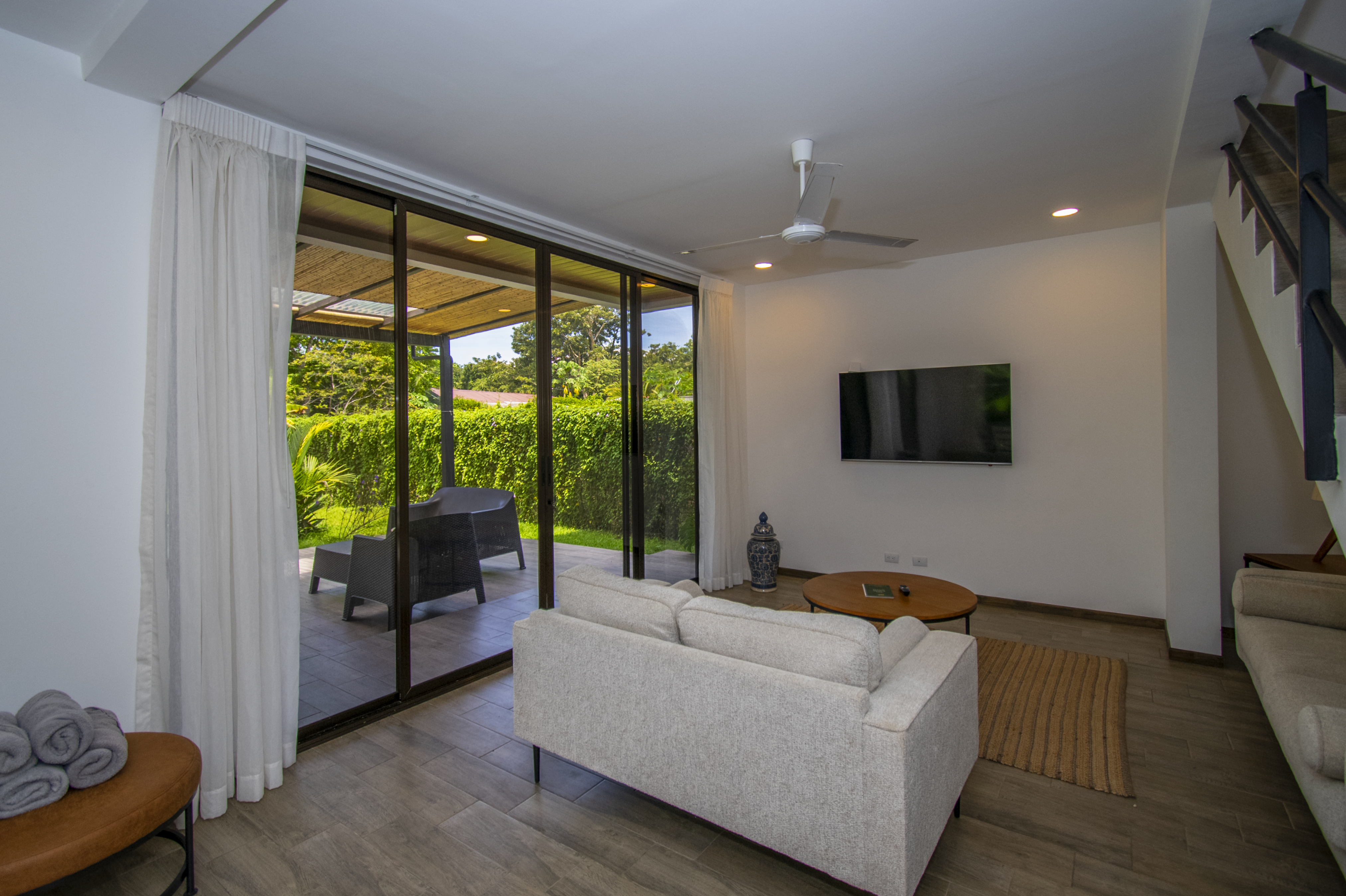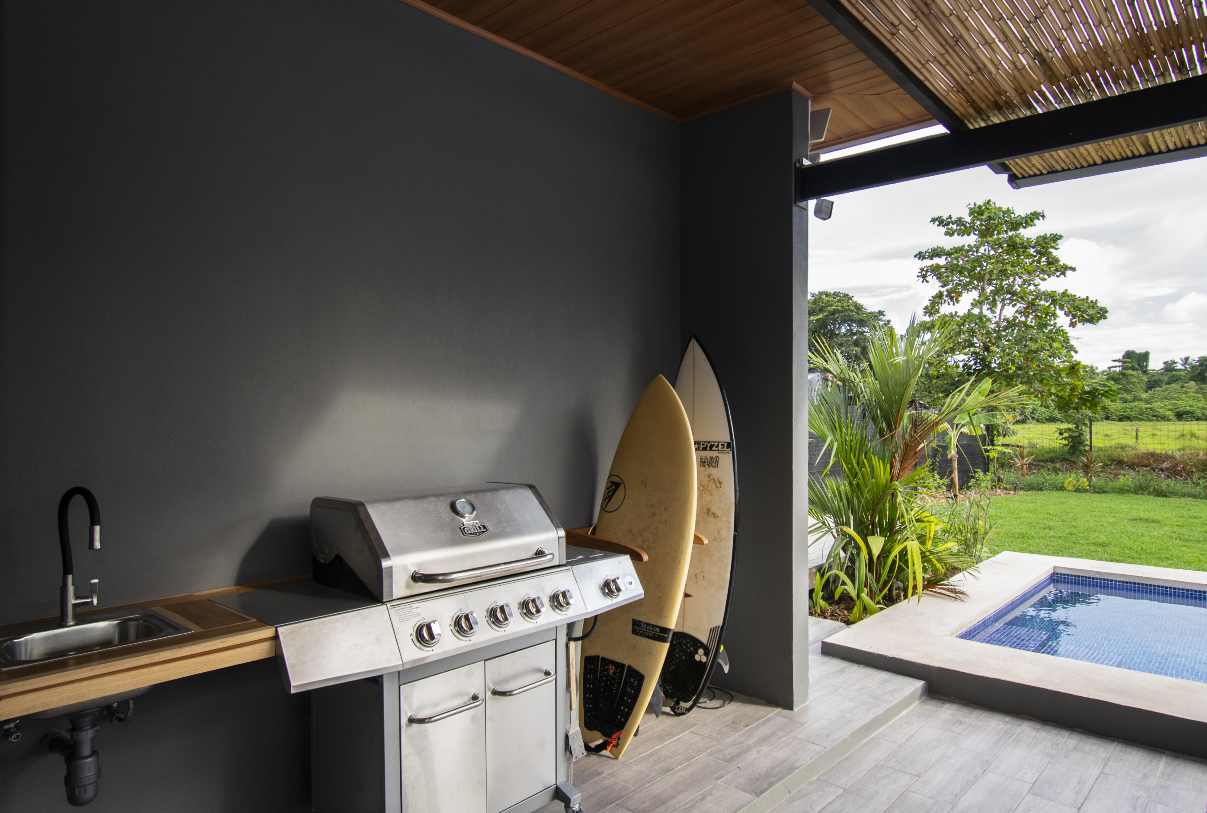This brand new modern style 3 bedroom home was just built and is located in a great community walking distance to the Whales Tale National Marine Park (Parque Nacional Marino Ballena) which has the famous whales tale and is one of the most spectacular beaches in the world. You can also walk to several restaurants and stores near the entrance to the park. The location makes it a great place to live and also a great place for a vacation rental business. The property also backs onto a large green open space that butts directly up to the beach. The scarlet macaws are seen flying around daily!!!