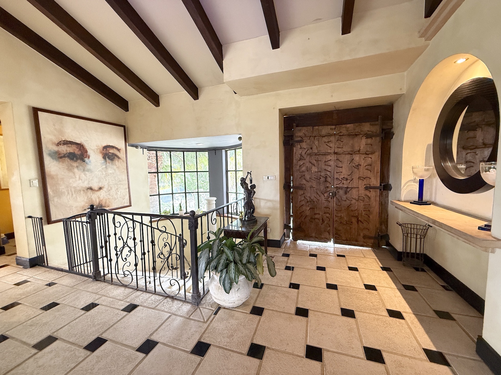 Con arcos, techos abovedados, detalles artesanales en madera y ventanales con vista, la arquitectura combina el encanto mediterráneo con la comodidad moderna. La sala principal ofrece vistas inigualables, y la cocina está equipada con sobres de granito y gabinetes de madera fina.