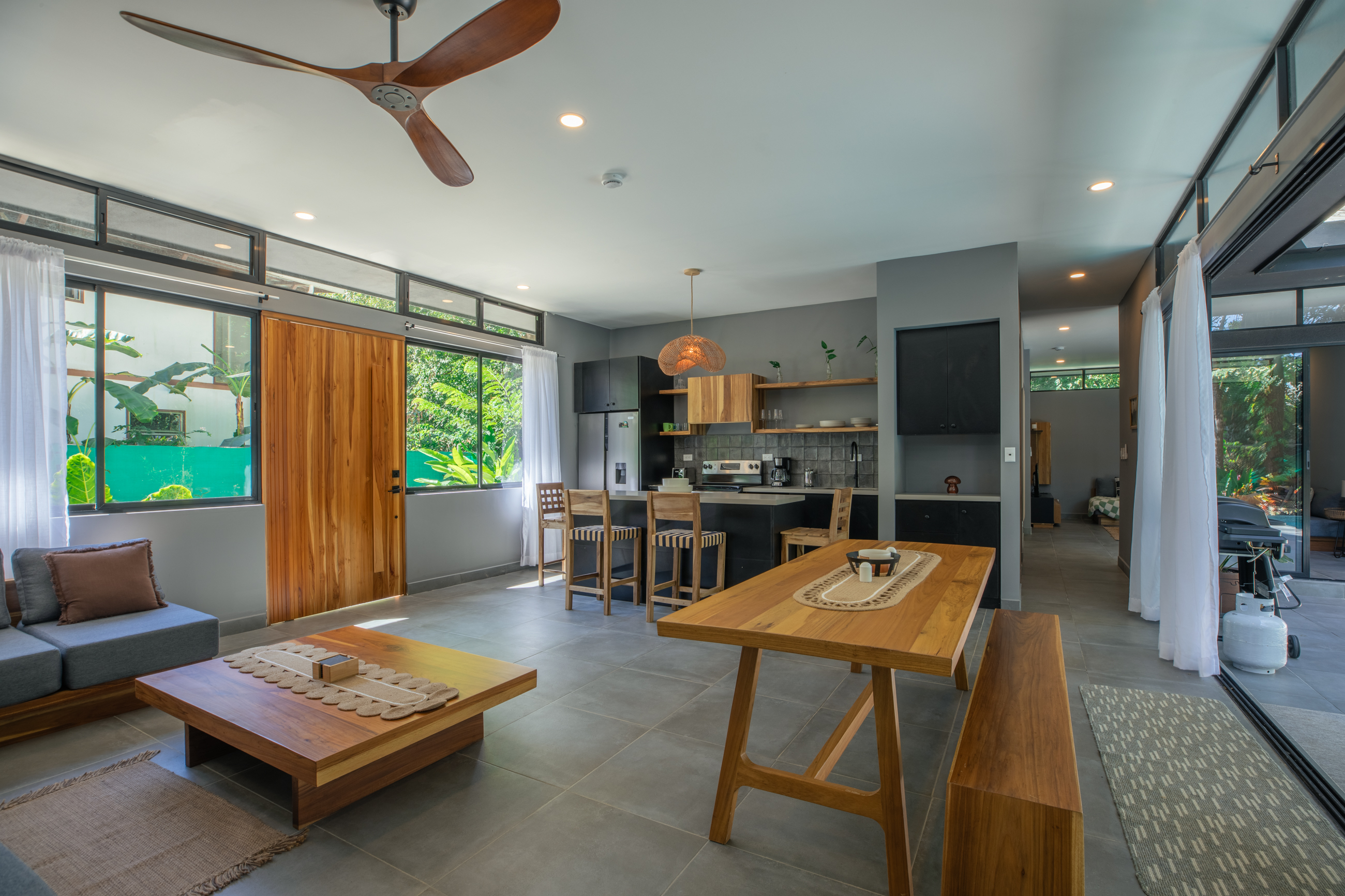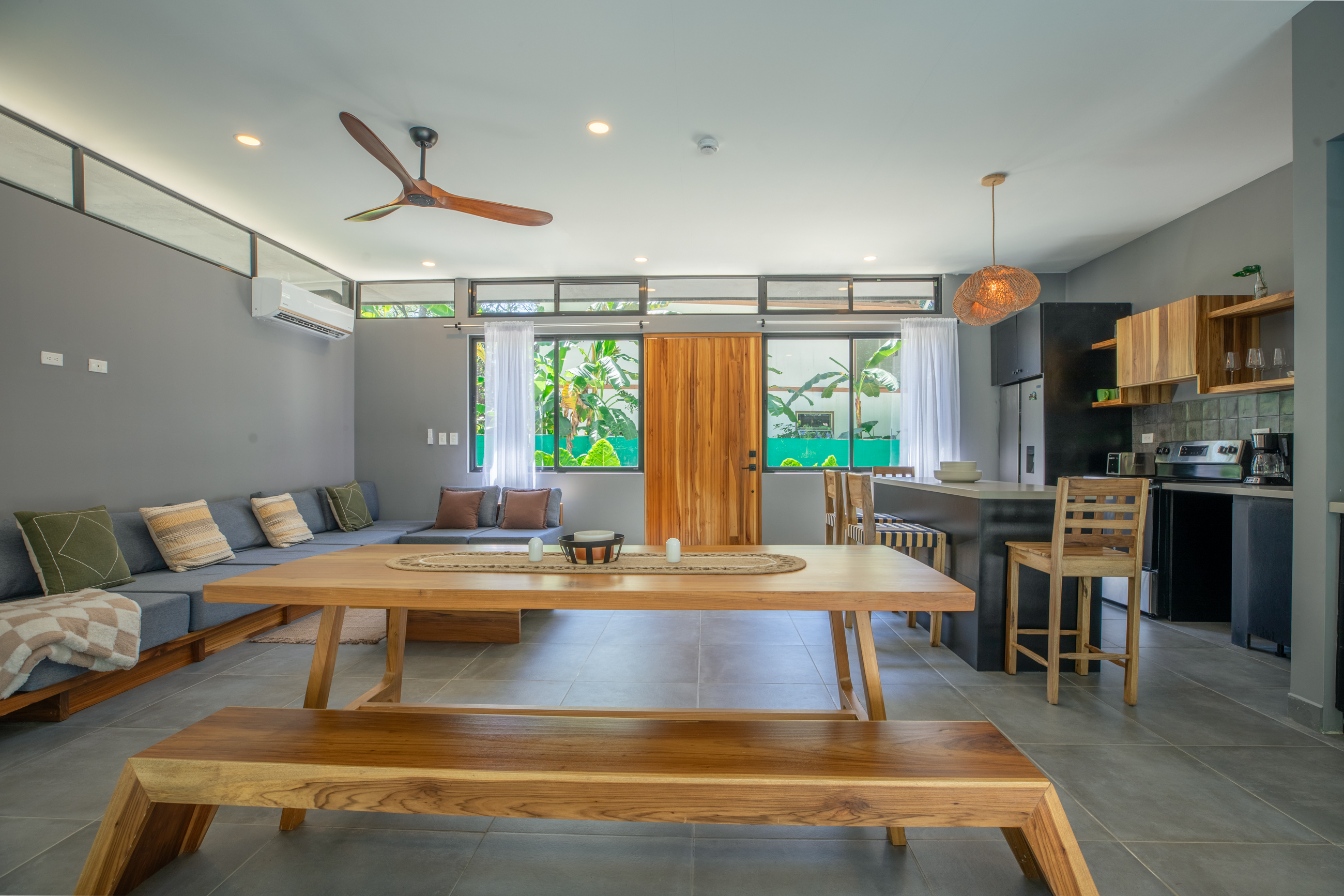 Just hop in the car and in 5 minutes you’re at the wild, beautiful Playa Pelada (perfect for sunset walks) or the famous long waves of Playa Guiones (surfing paradise). Restaurants, yoga studios, supermarkets and the cute town center are all super close too.