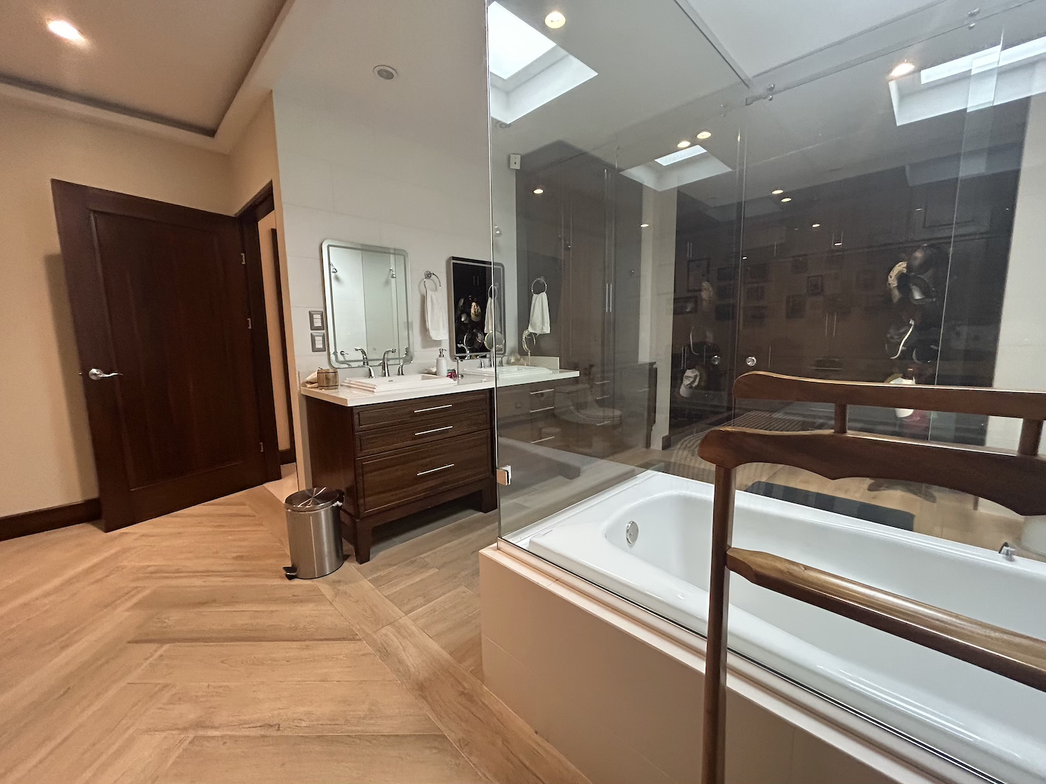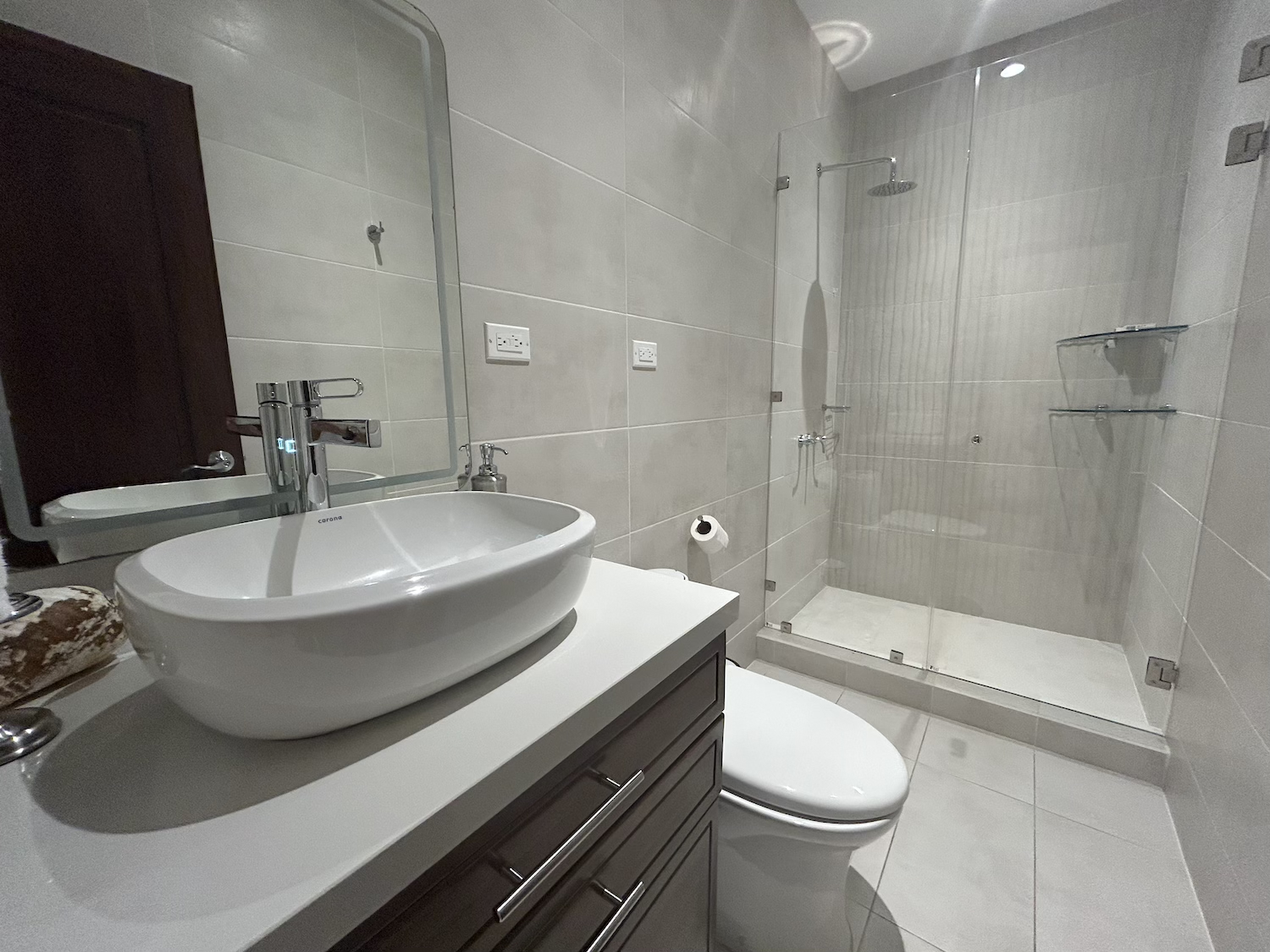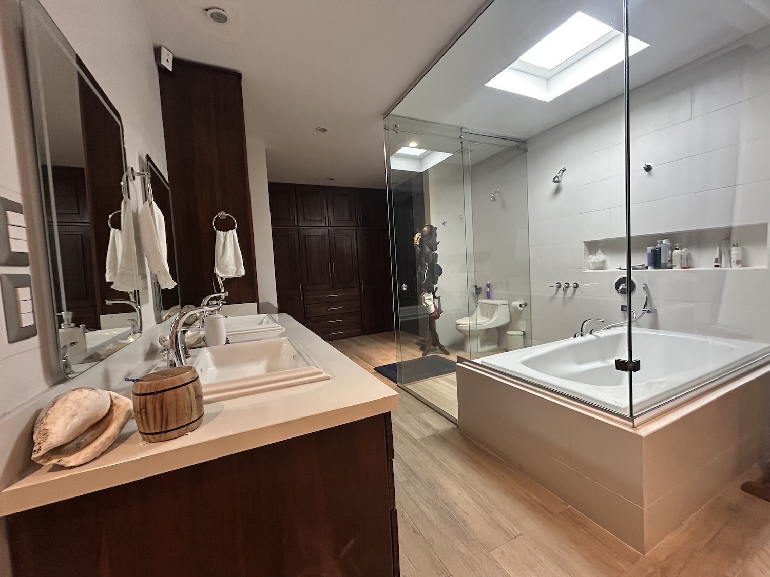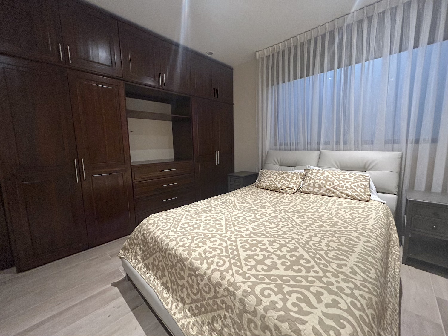 En el área privada, la casa ofrece dos dormitorios secundarios, ambos con clóset y baño completo. El dormitorio principal es amplio y cómodo, e incluye walk-in clóset y un elegante baño con doble lavabo, ducha y jacuzzi.