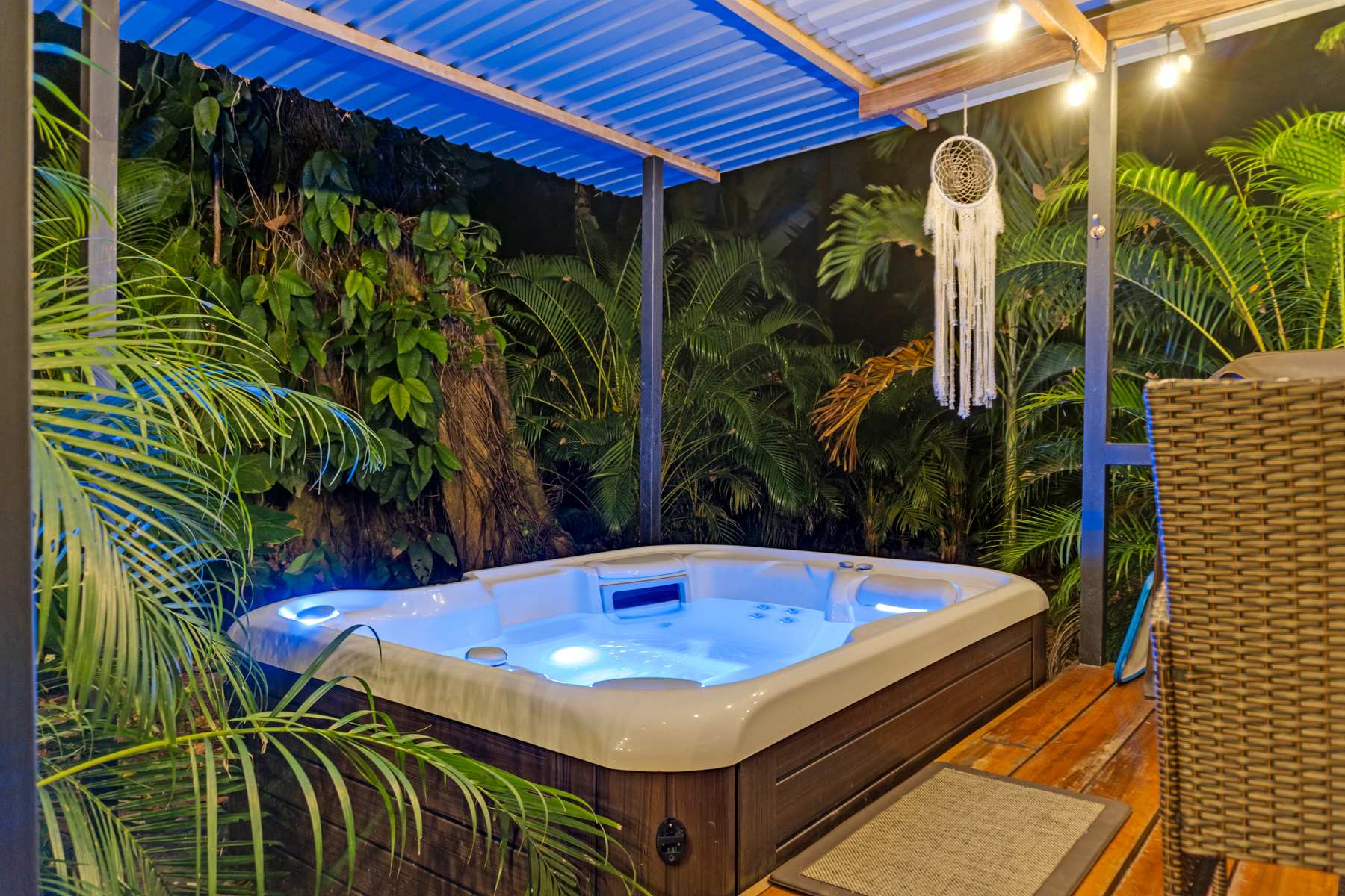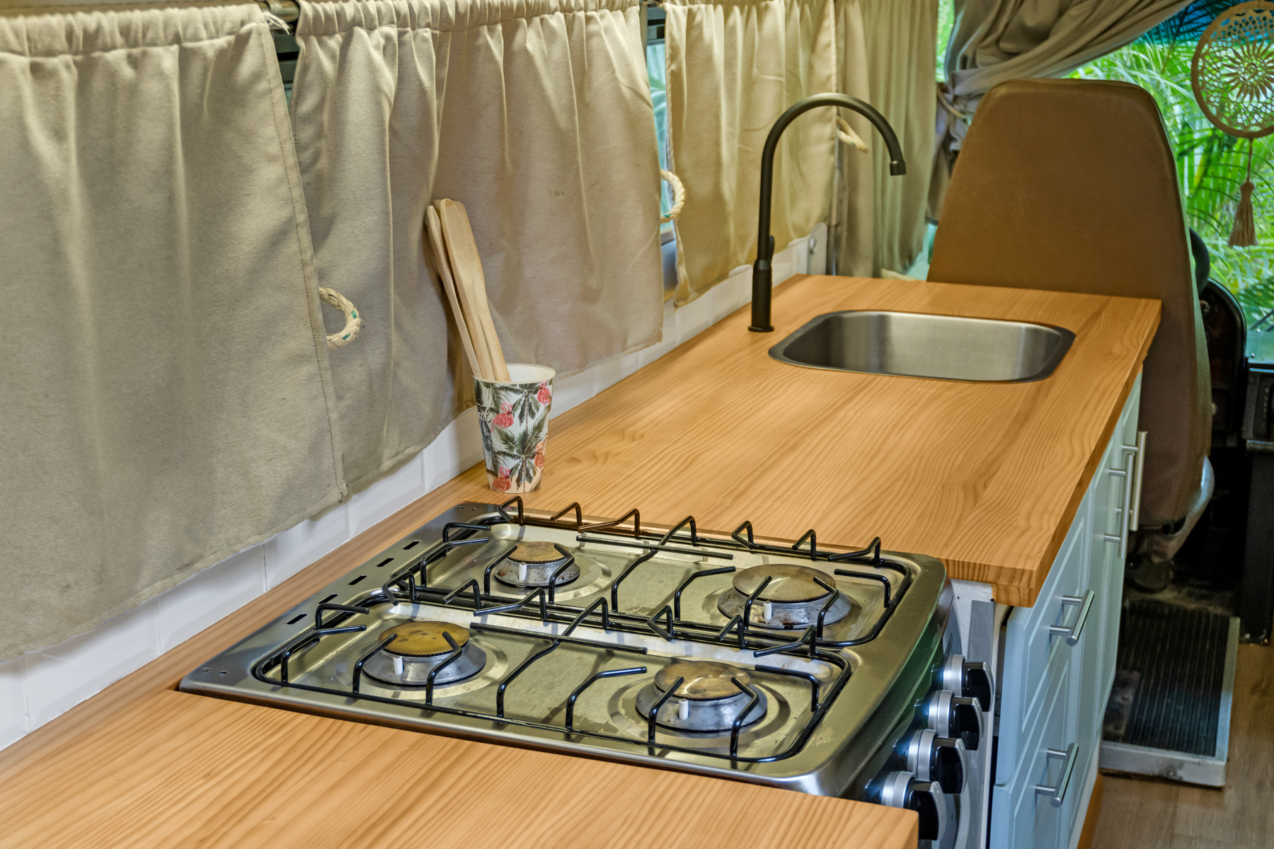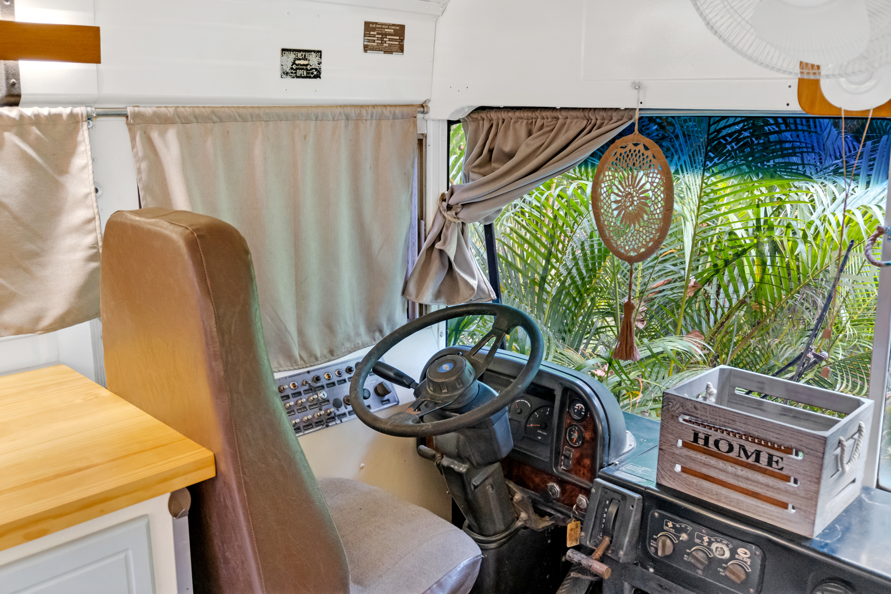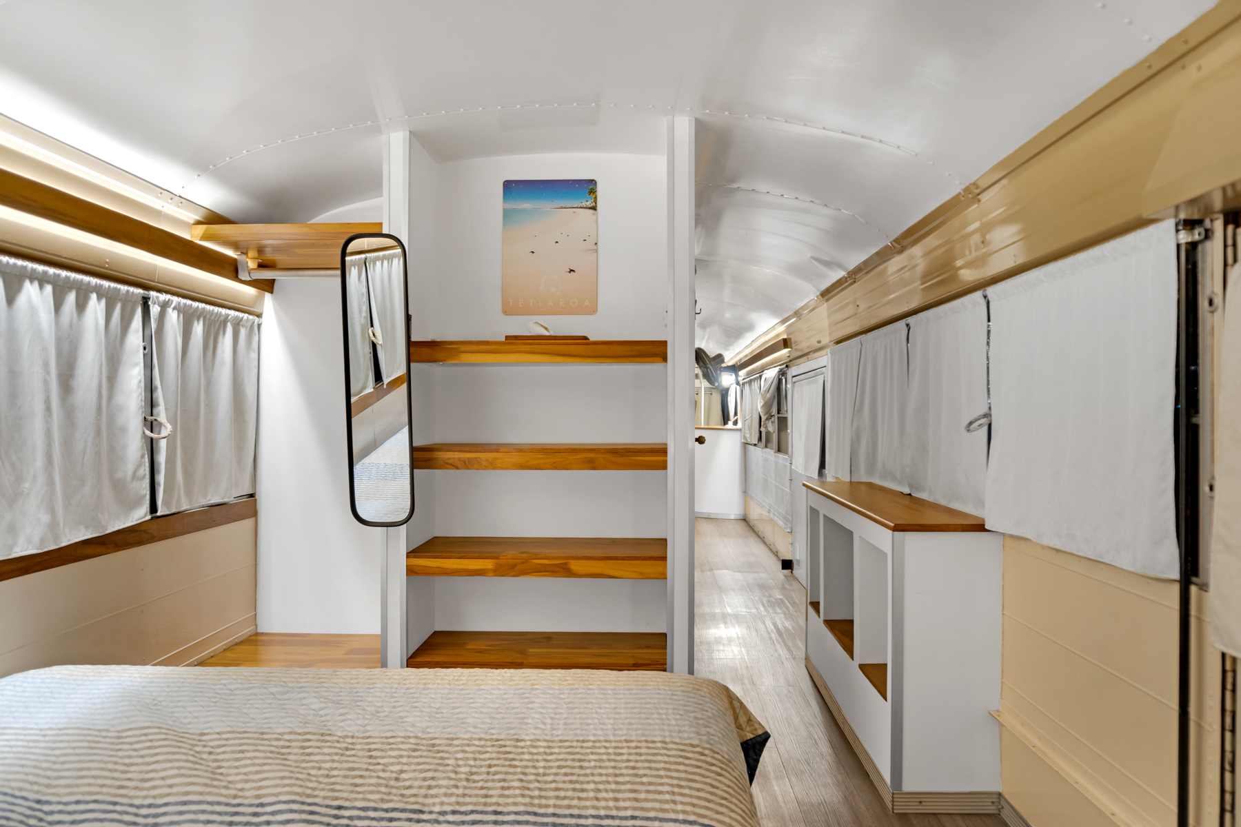 Four creatively transformed buses provide singular and cozy accommodations. Each unit encompasses a bedroom, private bath, complete kitchen, and personal outdoor terrace, creating an ideal setting for guests to savor the tropical ambiance with their morning brew.