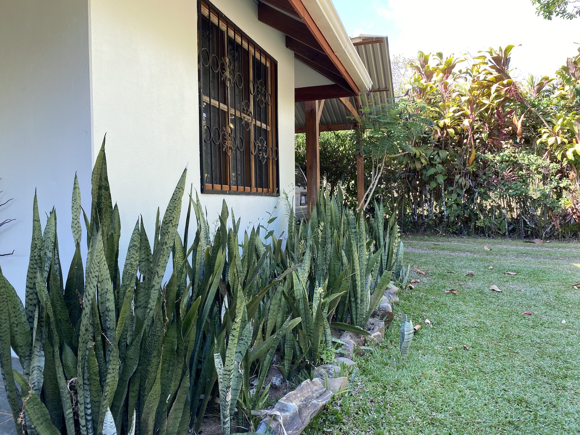 Toucans, hummingbirds, and butterflies are daily visitors to this garden paradise in the growing town of Ojochal. With almost a full acre of land in town this gated and fenced property offers privacy with the opportunity to enjoy life in Costa Rica with some income.
