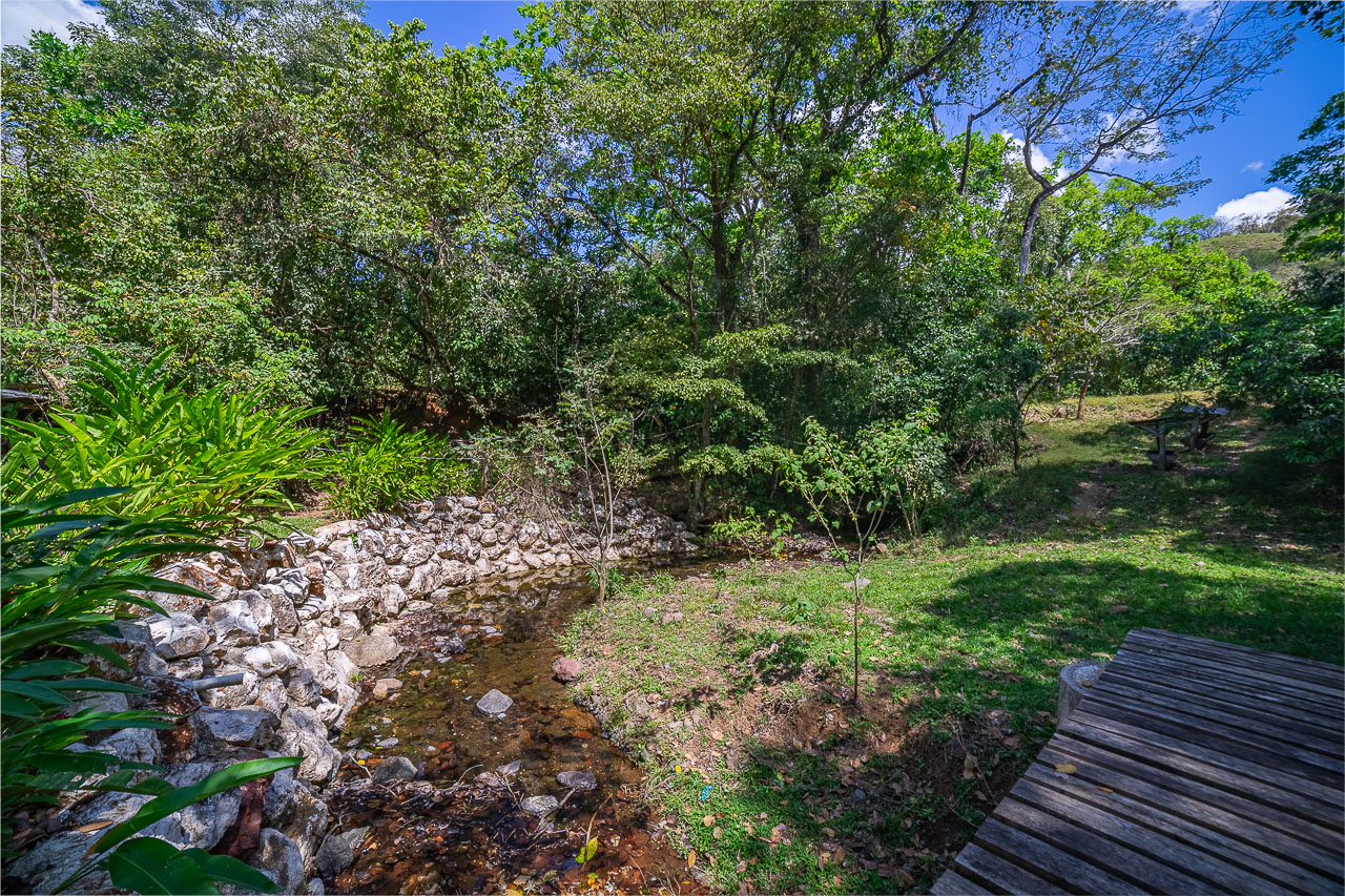 FINCA EL RETORNO spans over 9 hectares (23+ acres) in the upper watershed of the Rio Nosara. The property features an organic vegetable garden of almost an acre, complete with drip irrigation and a creek-fed water pump and tank for use in the dry season. Seven hectares are presently in excellent pasture, on which horses and cattle can thrive. Other options for the land include planting a variety of fruit trees and coffee, or allowing the natural forest to regenerate on part or most of the property, providing a significant contribution to the conservation of the watershed and biodiversity. The property borders a private nature reserve, and in its upper portion has spectacular views of the nearby Montealto Nature Reserve, established by the community decades ago to guarantee the health of the river, and which boasts excellent hiking and birding. It’s also a short walk from the waterfall and swimming hole on the Rio Nosara that gives the community of Pilangosta its name.