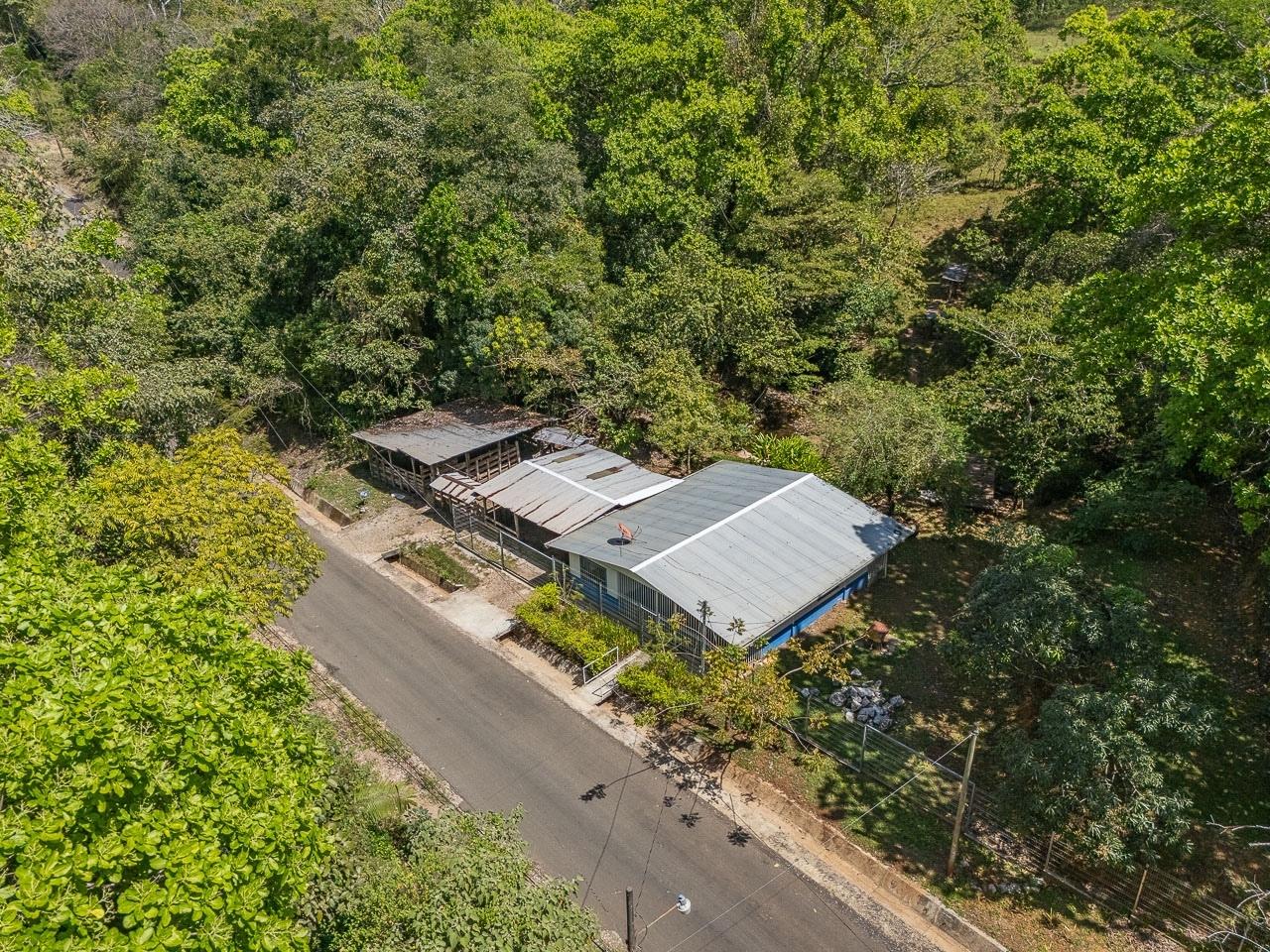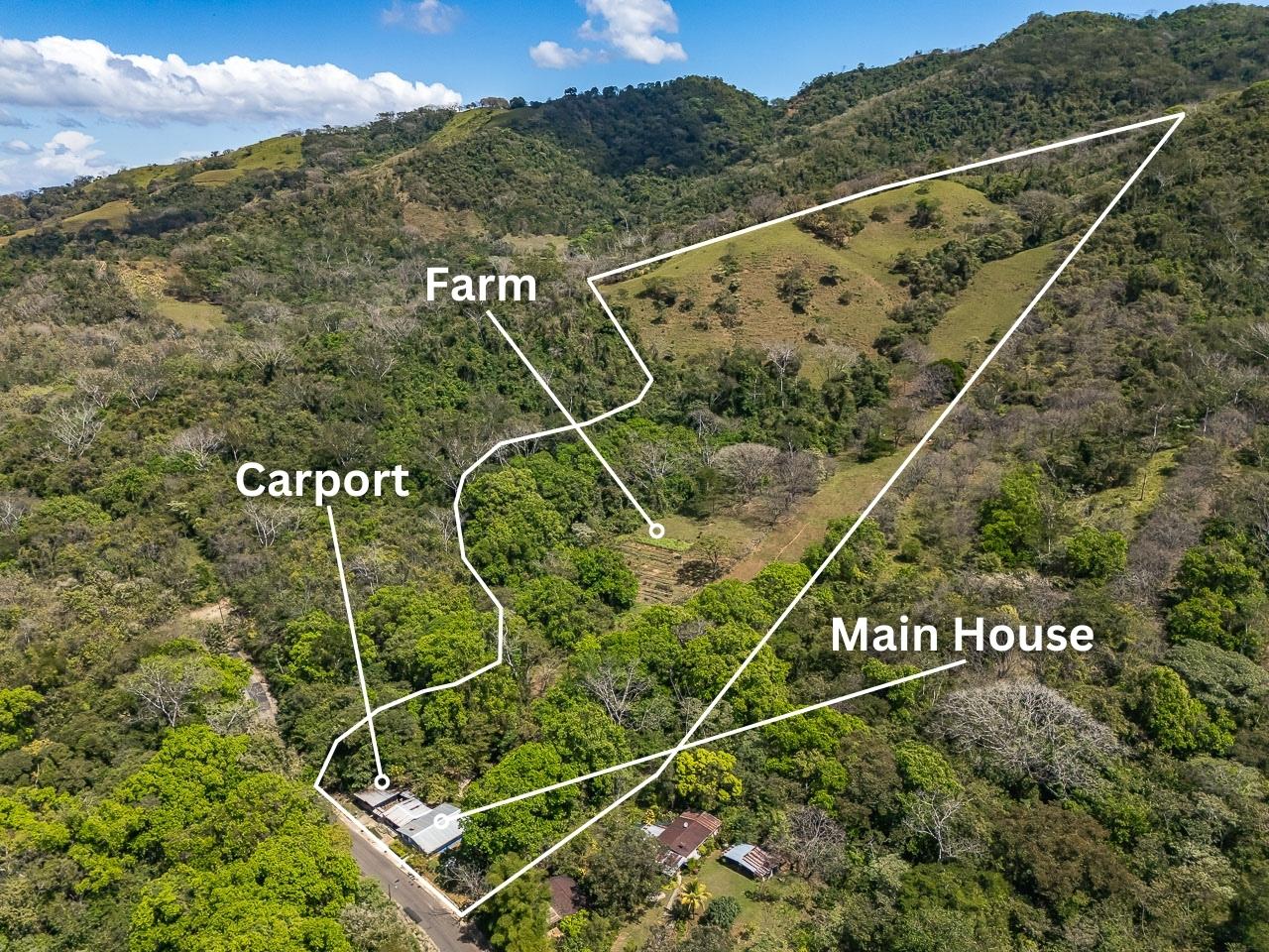 The property has a recently remodeled 4-bedroom farmhouse, as well as excellent sites for building one or two additional houses or cabins. The property borders a paved road that allows quick, 10-minute access by car to the heart of the town of Hojancha. Another public road borders the upper portion of the farm. The property is connected to the public electricity grid and to potable water from the local community water board. Water from a spring and a creek that flows through the land year-round is also available.