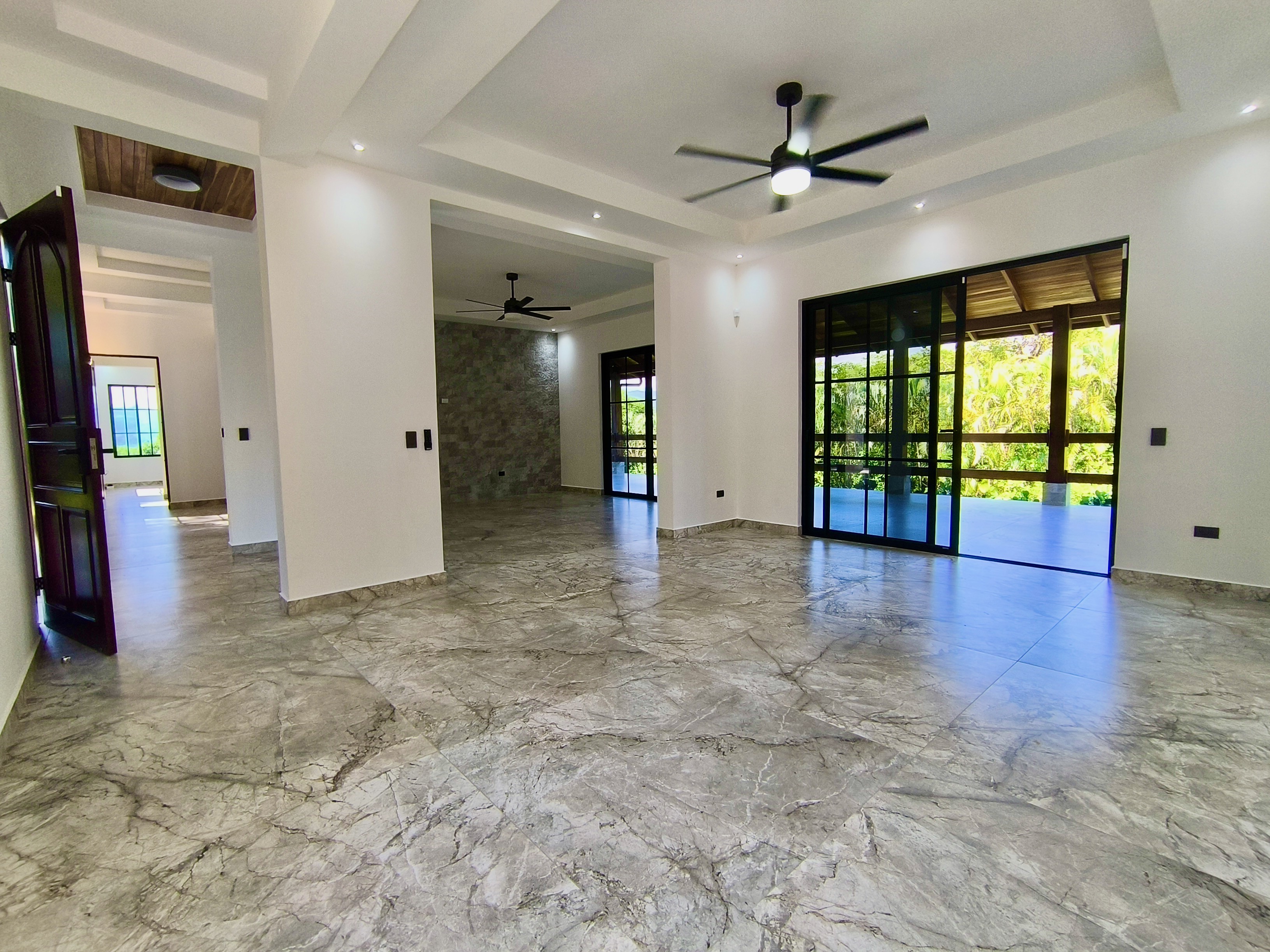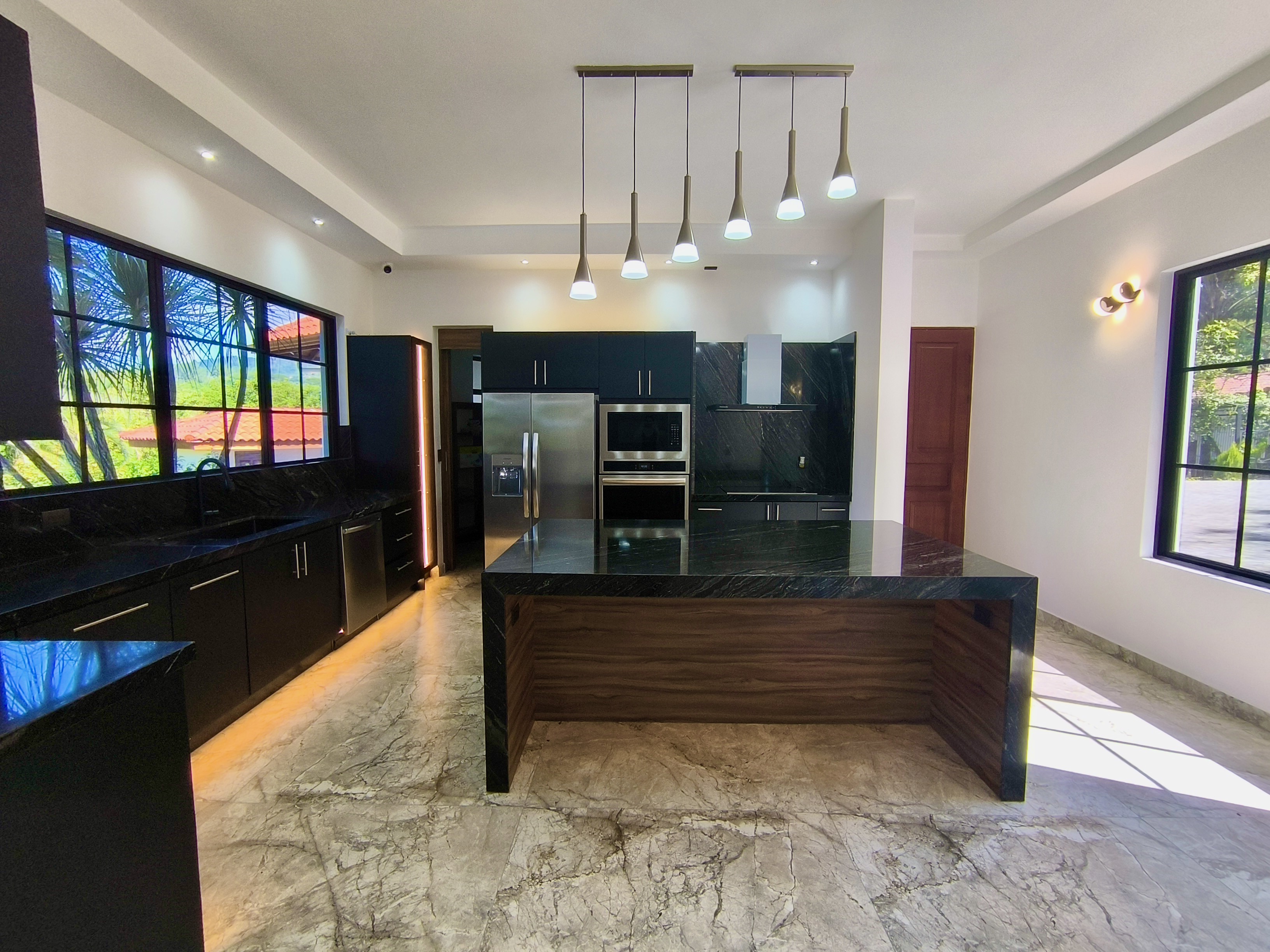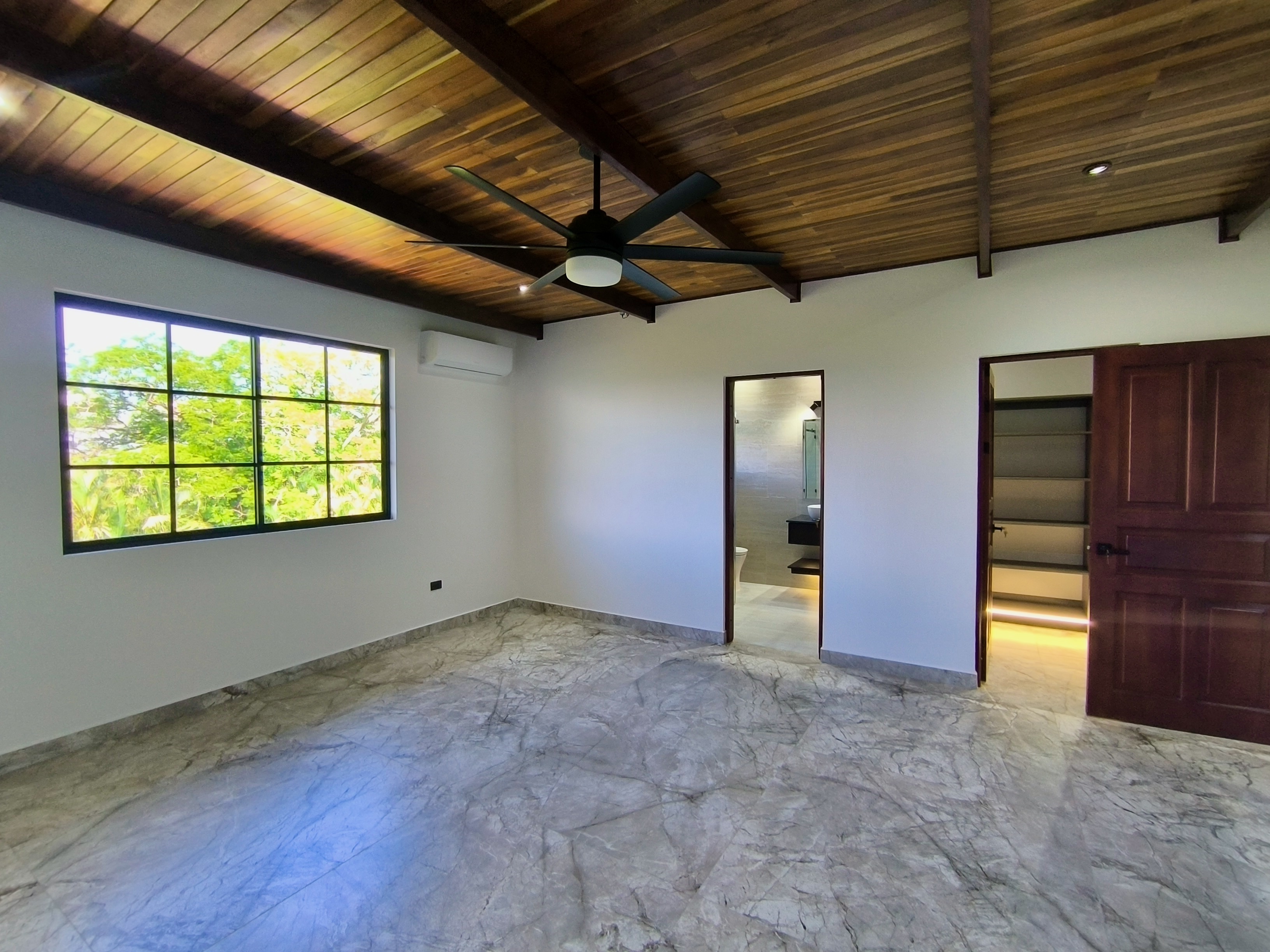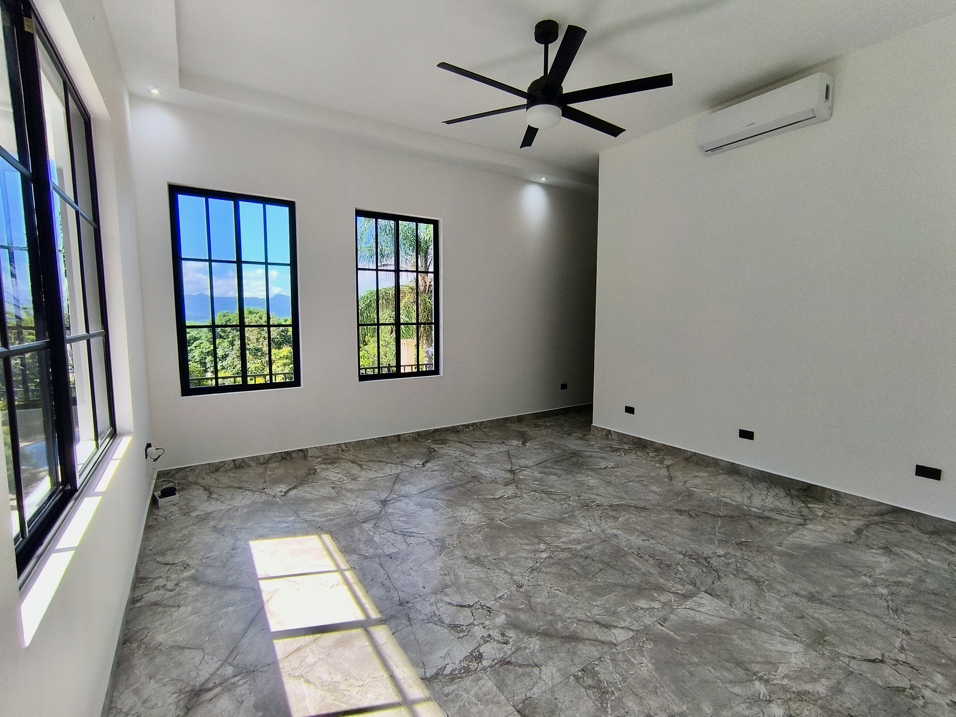Experience the perfect blend of luxury, comfort, and nature in this impressive two-story home, set on a fully usable 7,000 m² (1.8 acres) lot. Surrounded by beautifully landscaped gardens, fruit trees, and iconic Guanacaste trees, the property offers tranquility while being just 10 minutes from Atenas and 5 minutes from Route 27, with easy access to Central Valley cities, the international airport, and Pacific coast beaches. Built in 2009 and fully renovated in 2025 with premium materials, the main floor features an open-plan living area, gourmet kitchen with pantry, laundry room, two-car garage, and a large bedroom with private en-suite and walk-in closet. Upstairs, three bedrooms each have en-suite bathrooms and walk-in closets with stunning mountain views. Smart home features, 14 security cameras, air conditioning, ceiling fans, and a naturally cool tiled roof enhance comfort. Outdoors, enjoy a Coralina-stone pool, terraces, and a guest/staff quarters.
