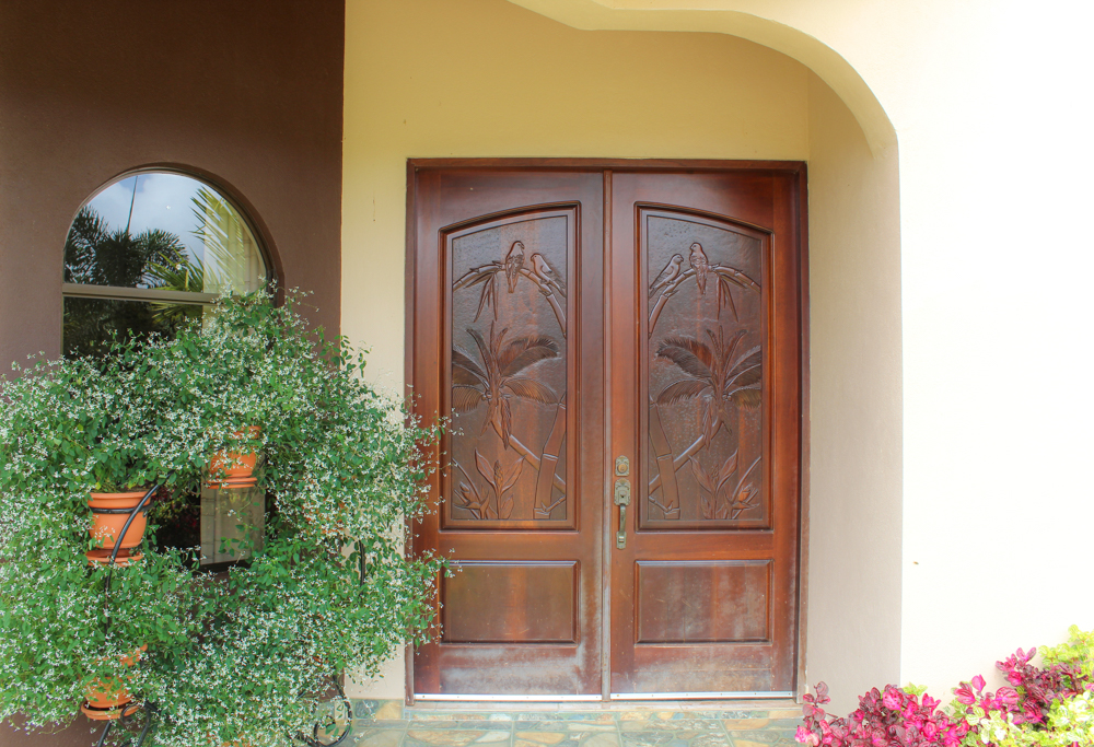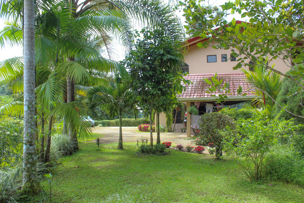 Pass through the ornate electric gate, following the palm-lined driveway which lead to the house situated on a 6.33 acre parcel of land. Much of the land is a natural jungle paradise, while approximately 2 acres is beautifully and maturely landscaped with beautiful flowers, bushes and pathways. A wide variety of producing fruit trees can be found throughout the property. A carport provides covered parking for one vehicle, with space for several additional vehicles and still plenty of room to turn around. A 12’X12’ bodega provides additional storage.