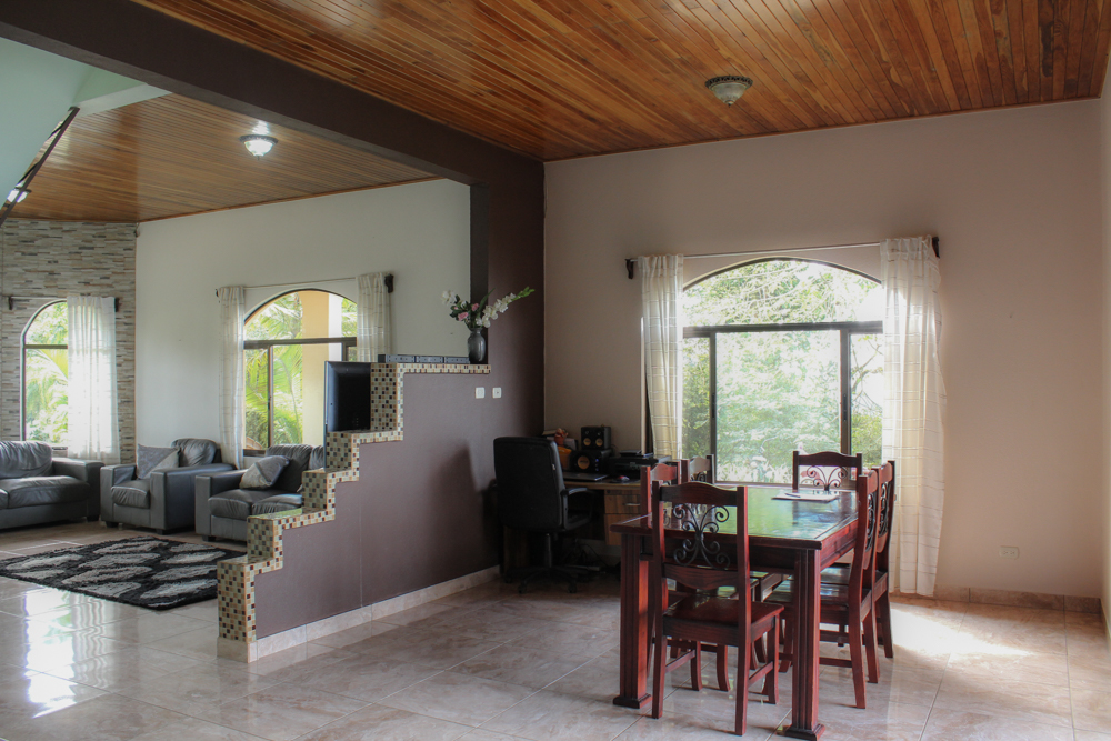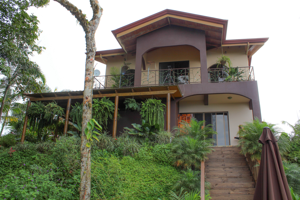 This property is very private with no neighbors in sight, just incredible panoramic views that will literally take your breath away! Located conveniently between Ojochal and Palmar, 15 minutes off the highway on a well-maintained gravel road. The elevation of approximately 2,300ft provides fresh ocean and mountain breezes and you are surrounded by a canopy of trees that provide shade. Here you will receive daily visits from monkey, macaws, toucans and hummingbirds. Enjoy morning coffee or dining al fresco on the large elevated deck overlooking beautiful views of the valley below, Pacific ocean, Terraba river and Osa Peninsula.