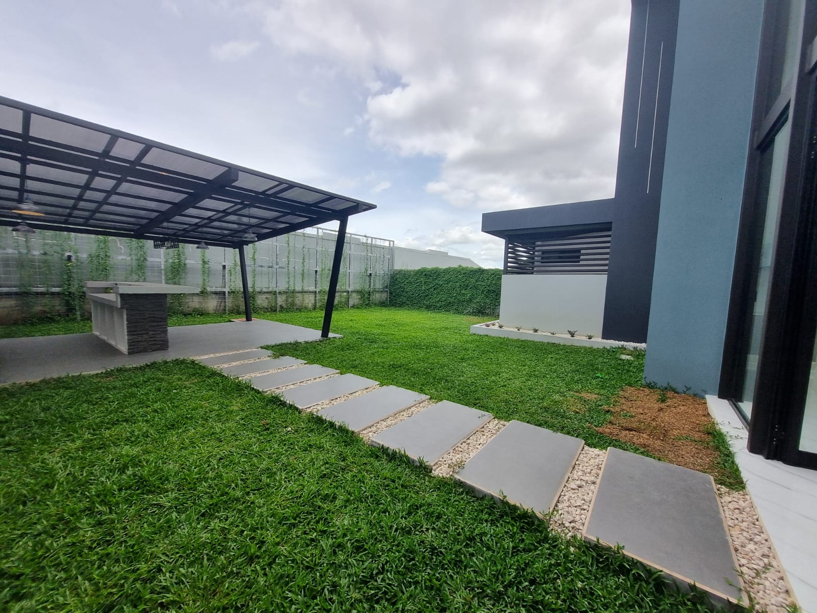 Beautiful garden with access to the BBQ area, which has a bar, provisions for the grill, sink, decorative lighting ideal for meetings and outdoor celebrations.