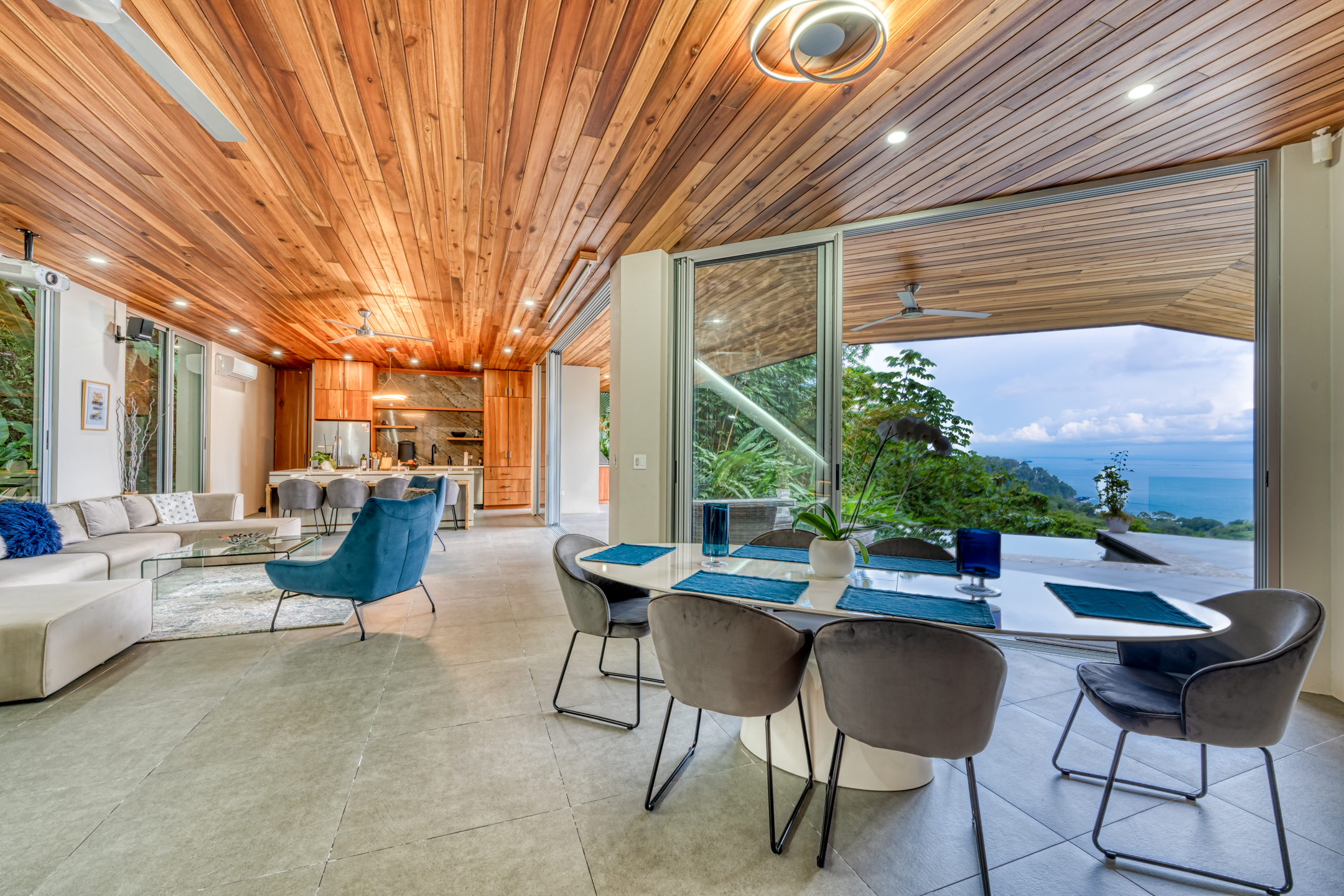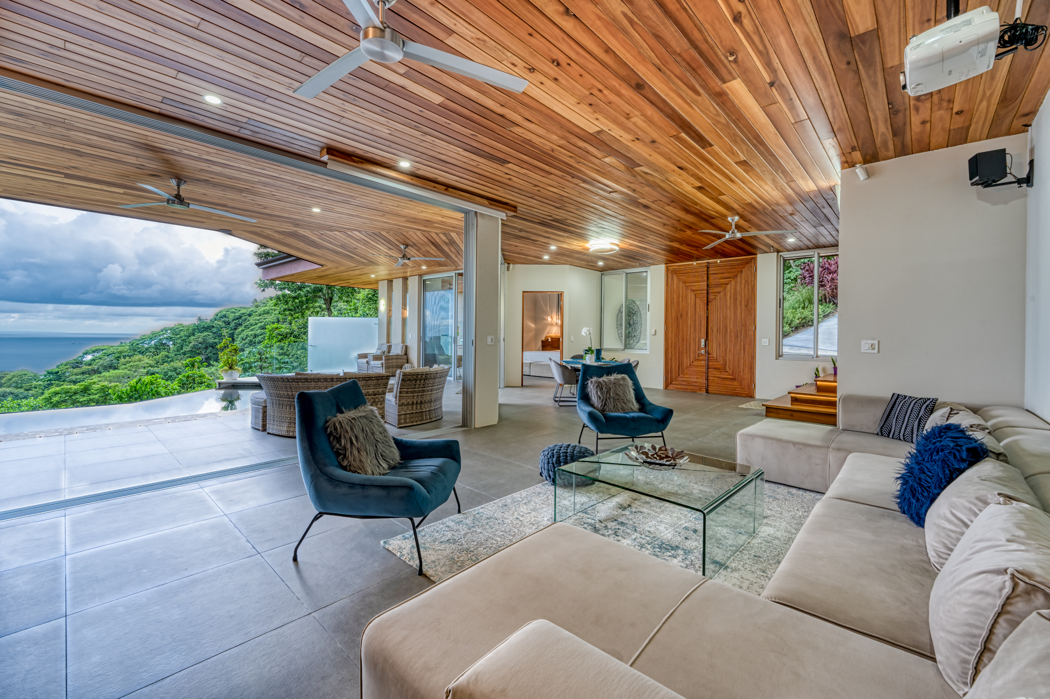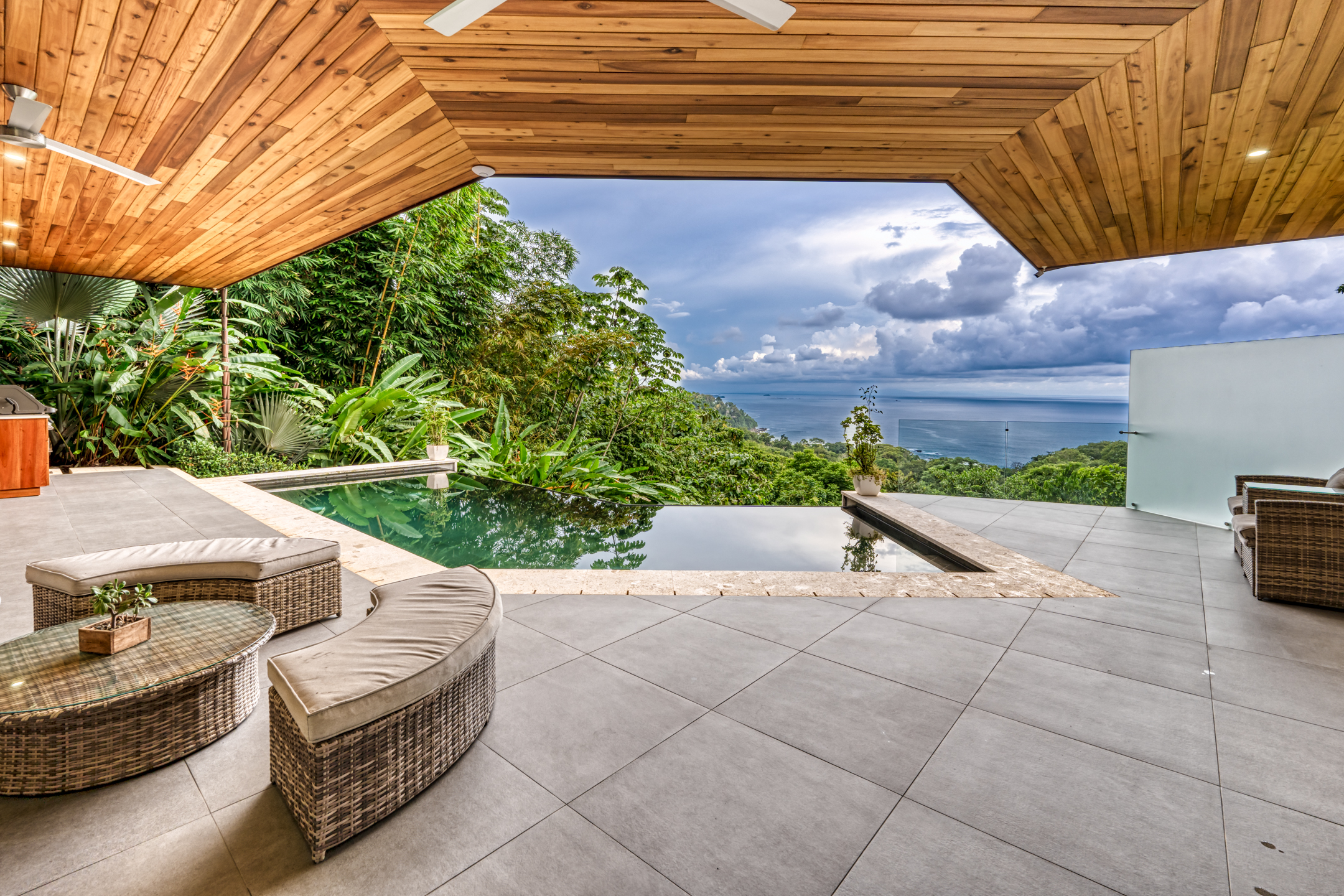 This extraordinary jungle retreat offers the perfect blend of secluded living and convenient access to the local town. Every room in this exquisite residence boasts stunning panoramic views of the Pacific Ocean, ensuring that you're always connected to its mesmerizing allure.